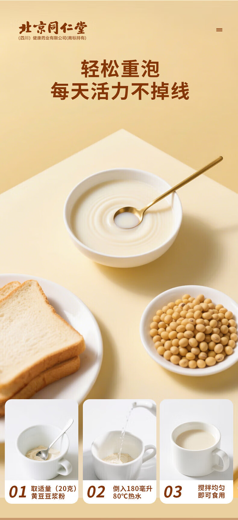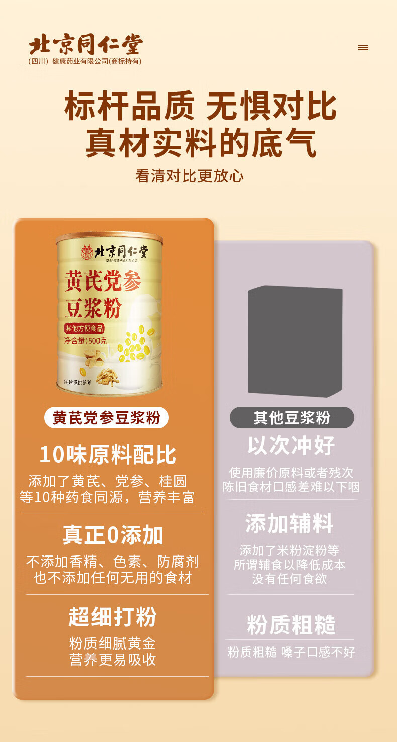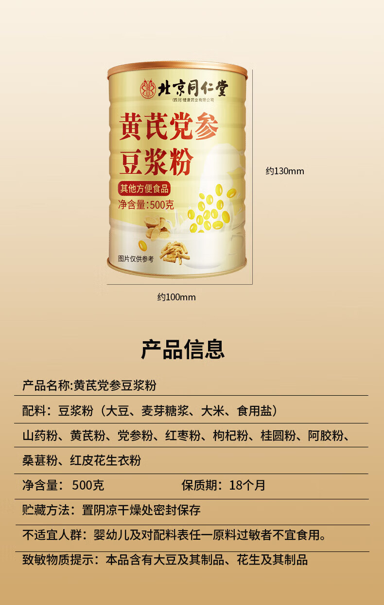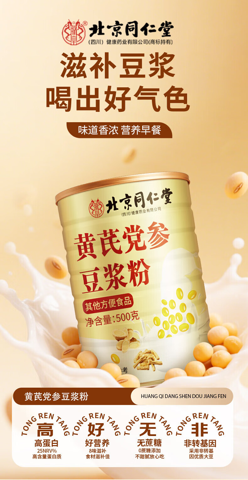 北京同仁堂黄芪党参豆浆粉早餐代餐饱腹感速溶冲饮0蔗糖补气血无添加 200g(内含10袋)/盒 1盒(桶)装