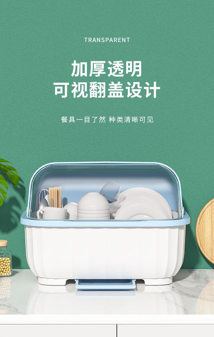 DEATKN德国装碗筷收纳盒厨房家用带盖宿舍碗碟置物架塑料碗柜碗箱碗架可 【升级新款】白杉蓝(半翻盖) 中L号【适合3-5口之家】