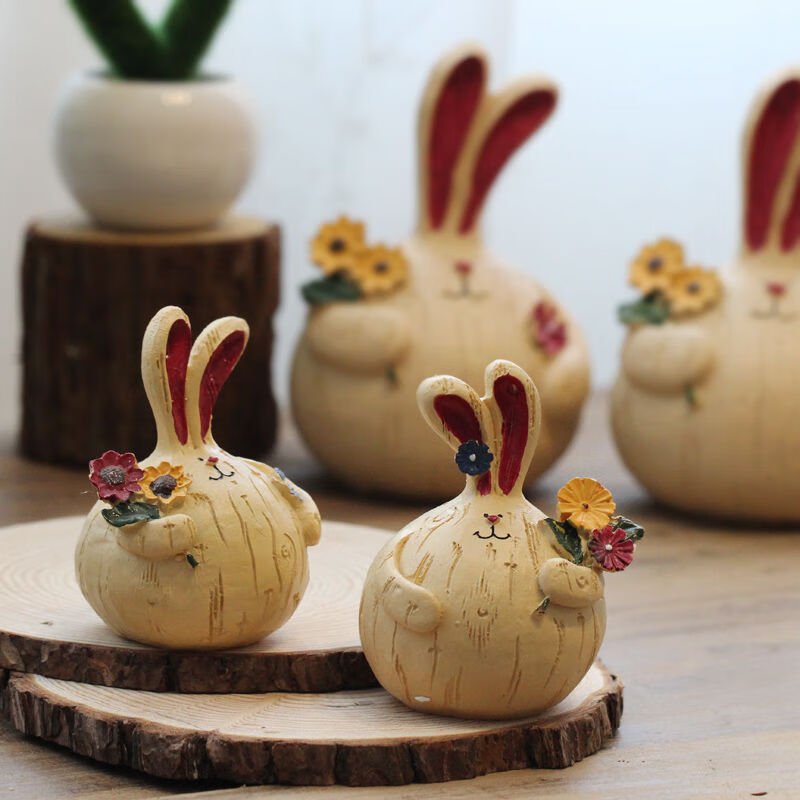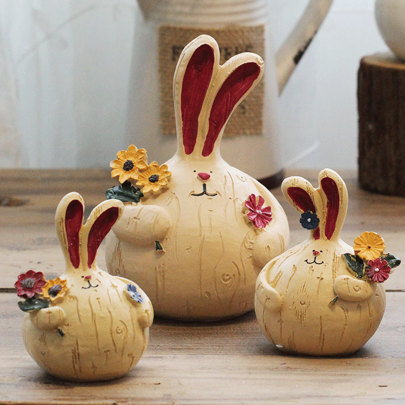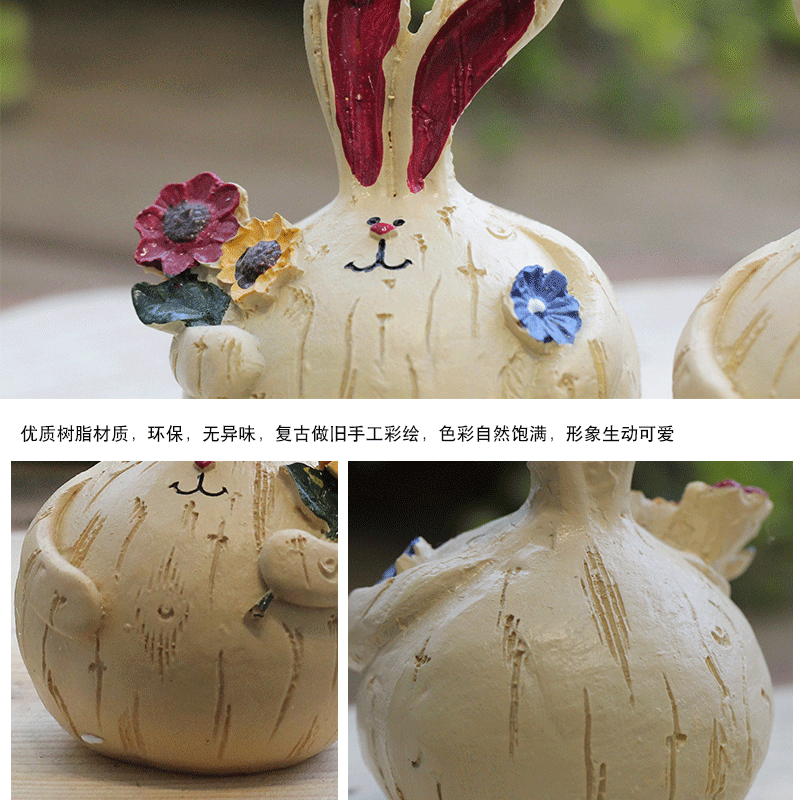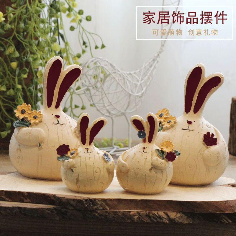 OYKTN创意家居树脂可爱胖兔子装饰品摆件客厅电视柜复古工艺品摆设礼物 小号蒜兔一对 自用普通包装