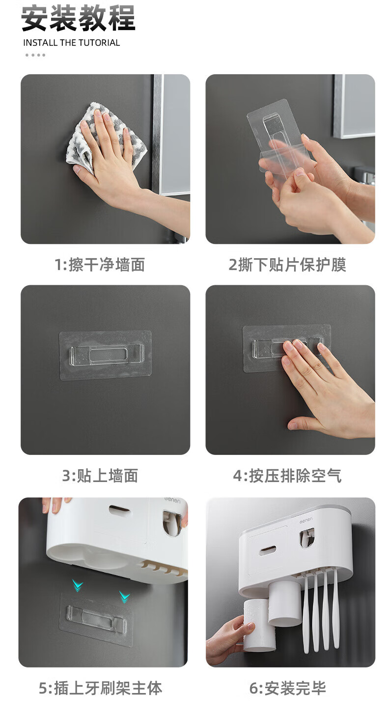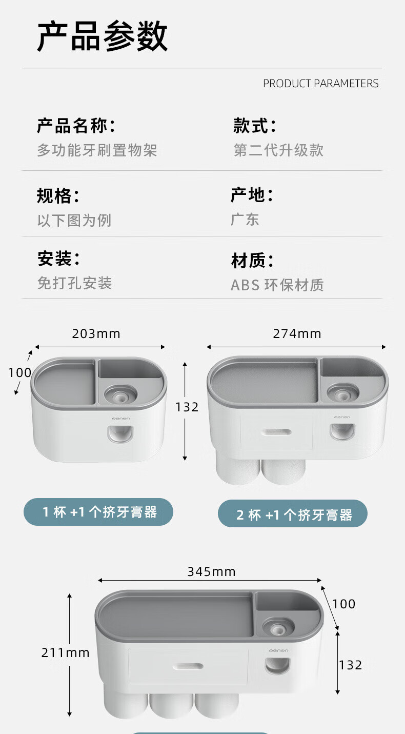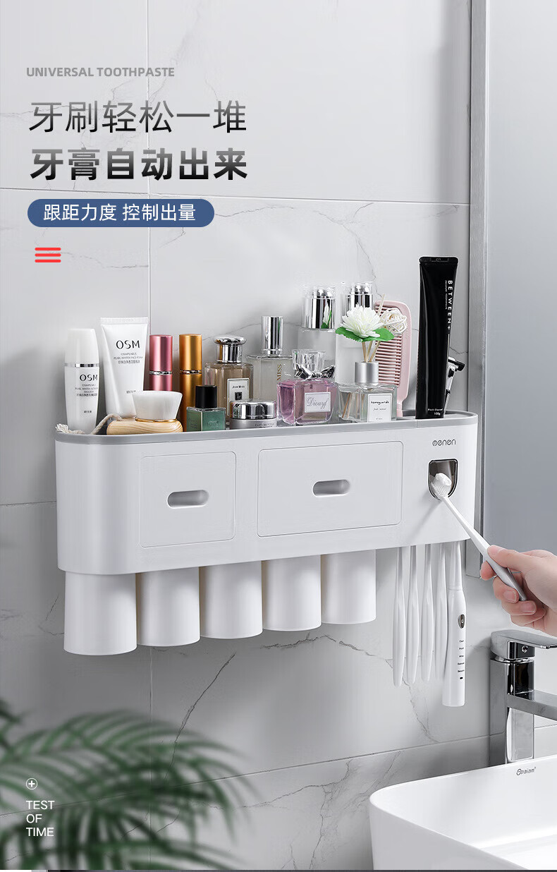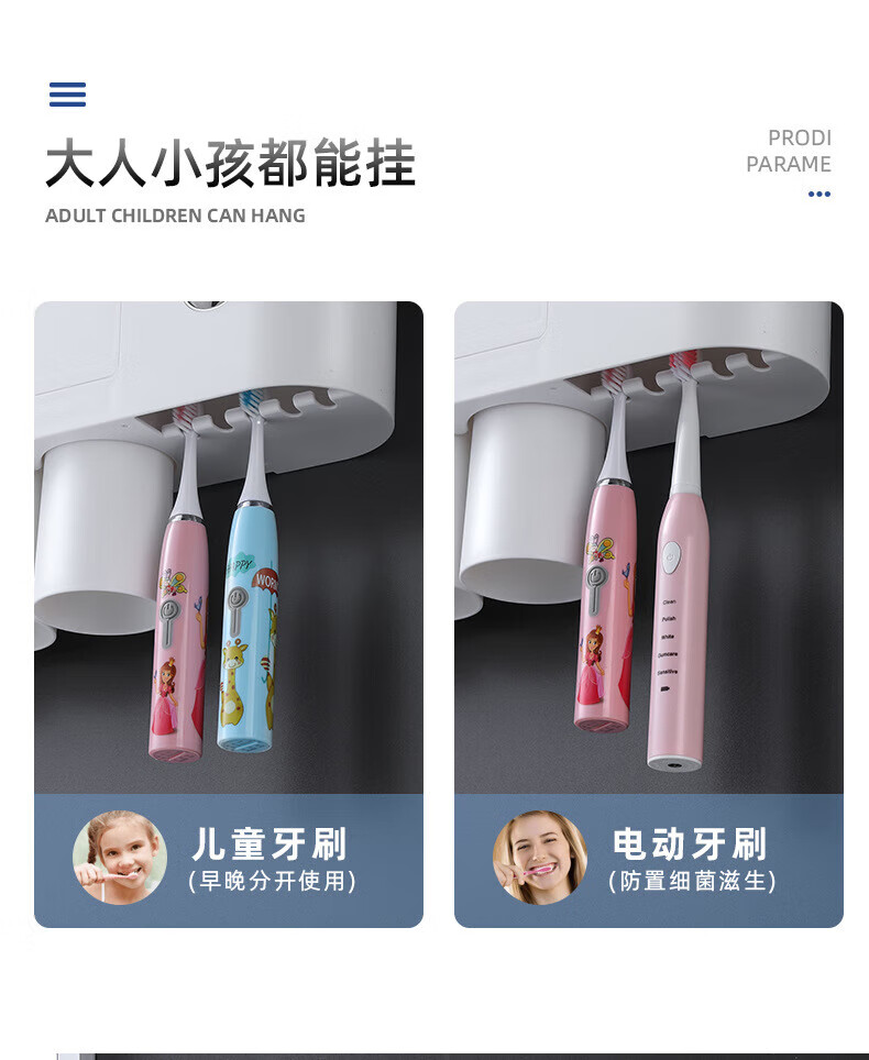 户璃德国牙刷置物架高级感壁挂式洗手间牙刷牙具置物架漱口杯一家四口 1145+855支1.2*23-母婴级