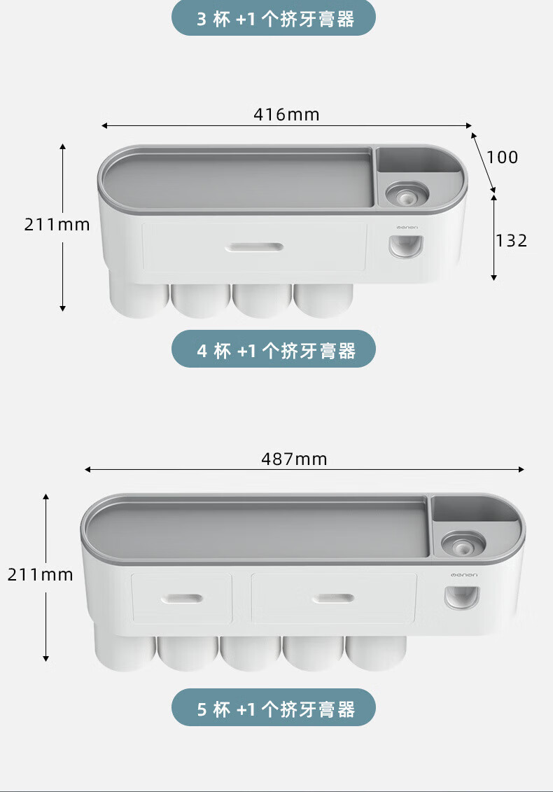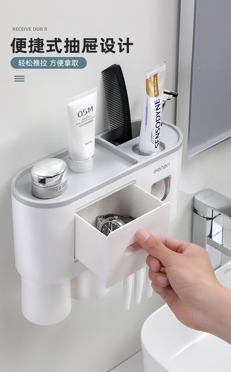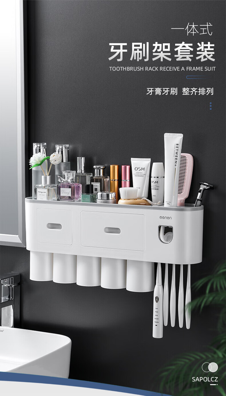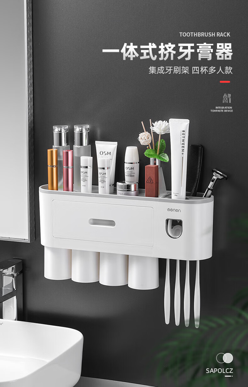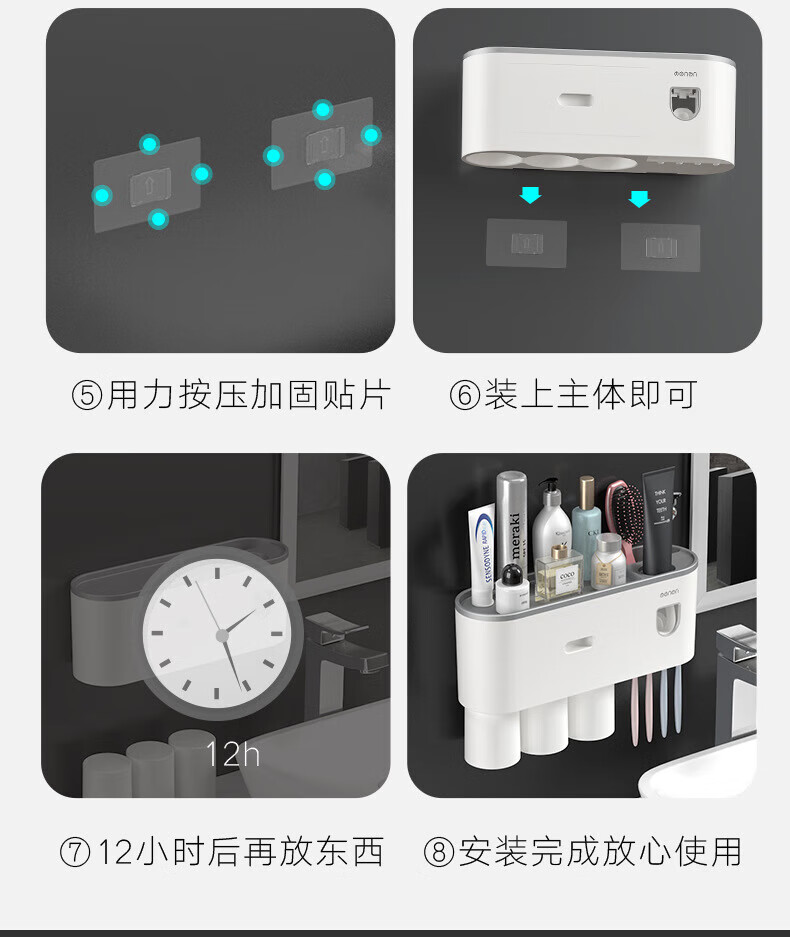 户璃德国牙刷置物架高级感壁挂式洗手间牙刷牙具置物架漱口杯一家四口 1145+855支1.2*23-母婴级