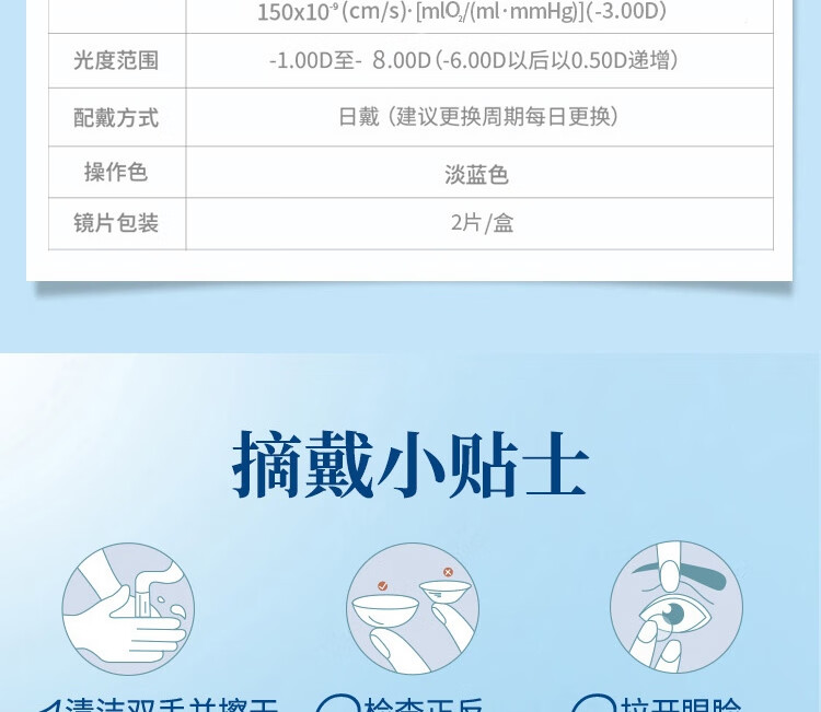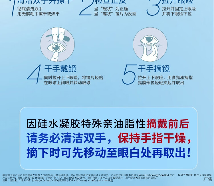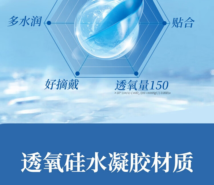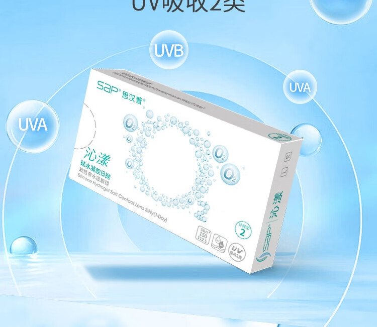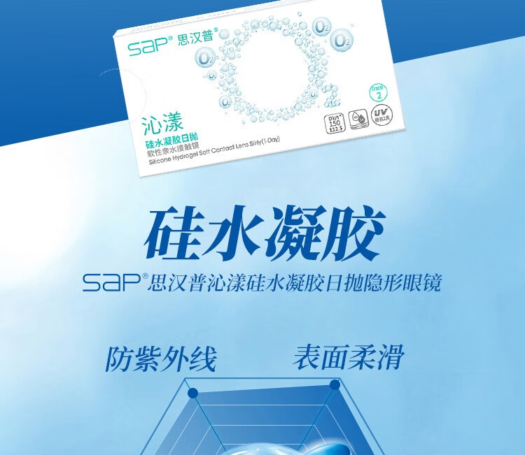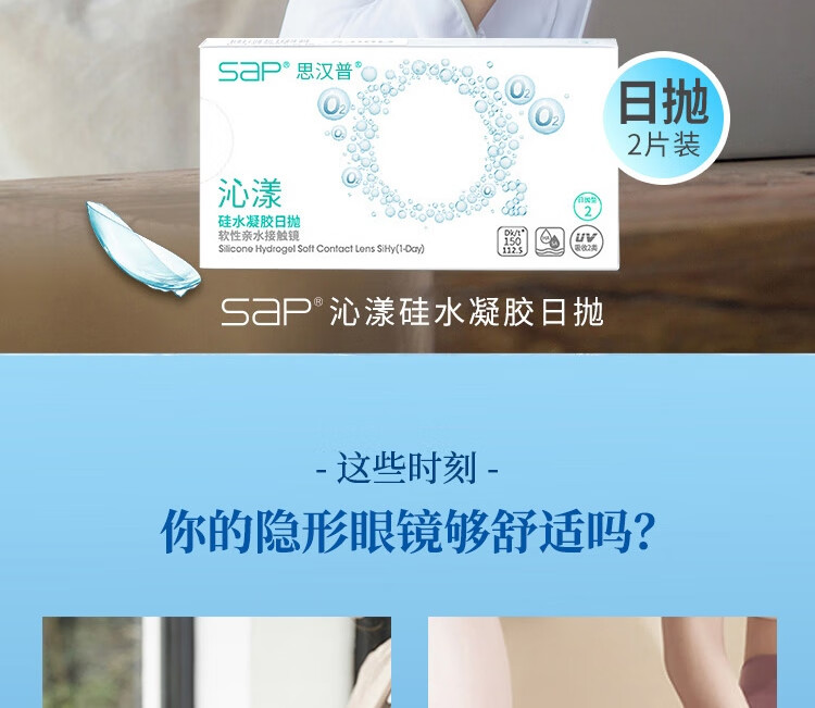 SAP思汉普进口硅水凝胶沁漾高透氧透明隐形眼镜日抛2片装 375度