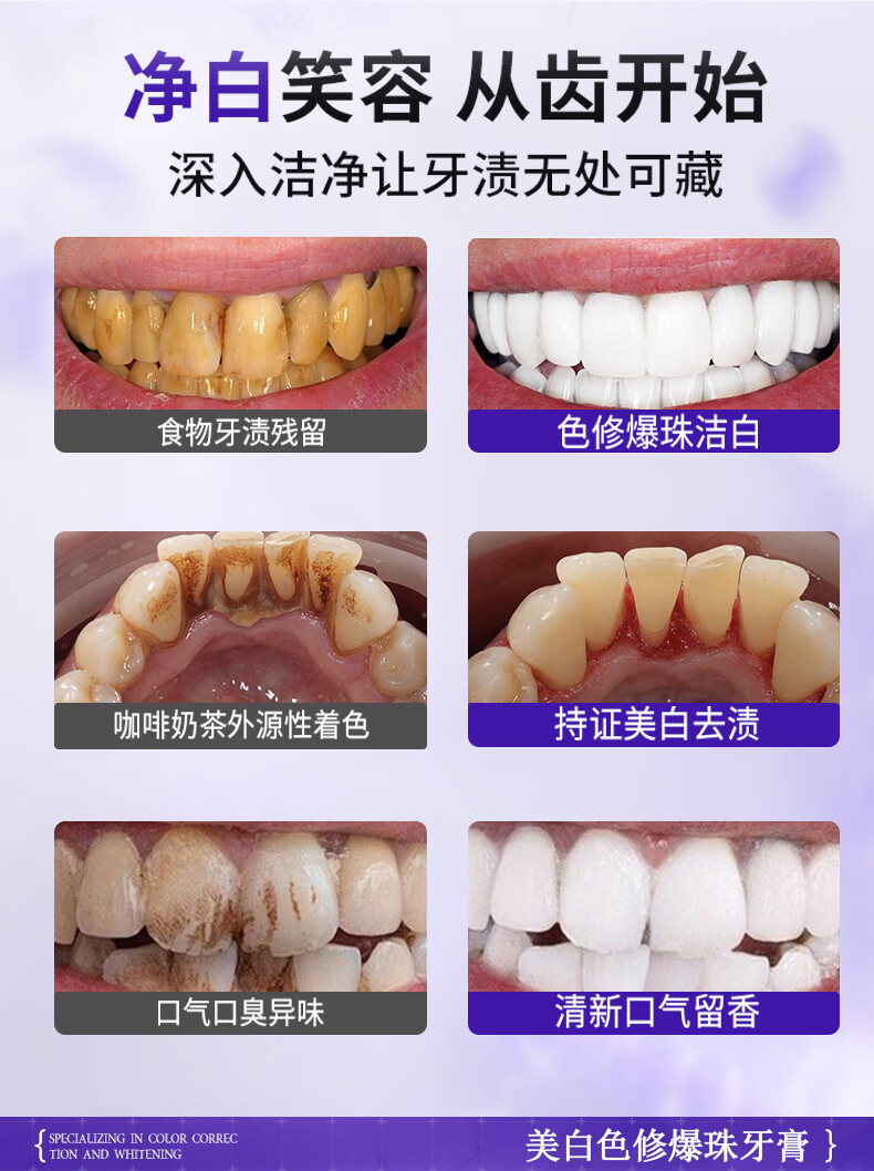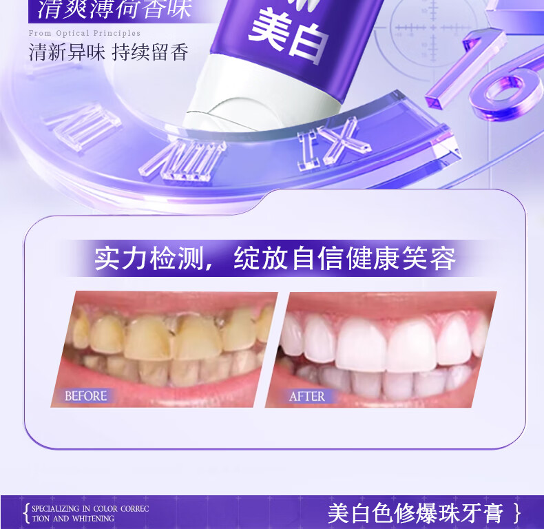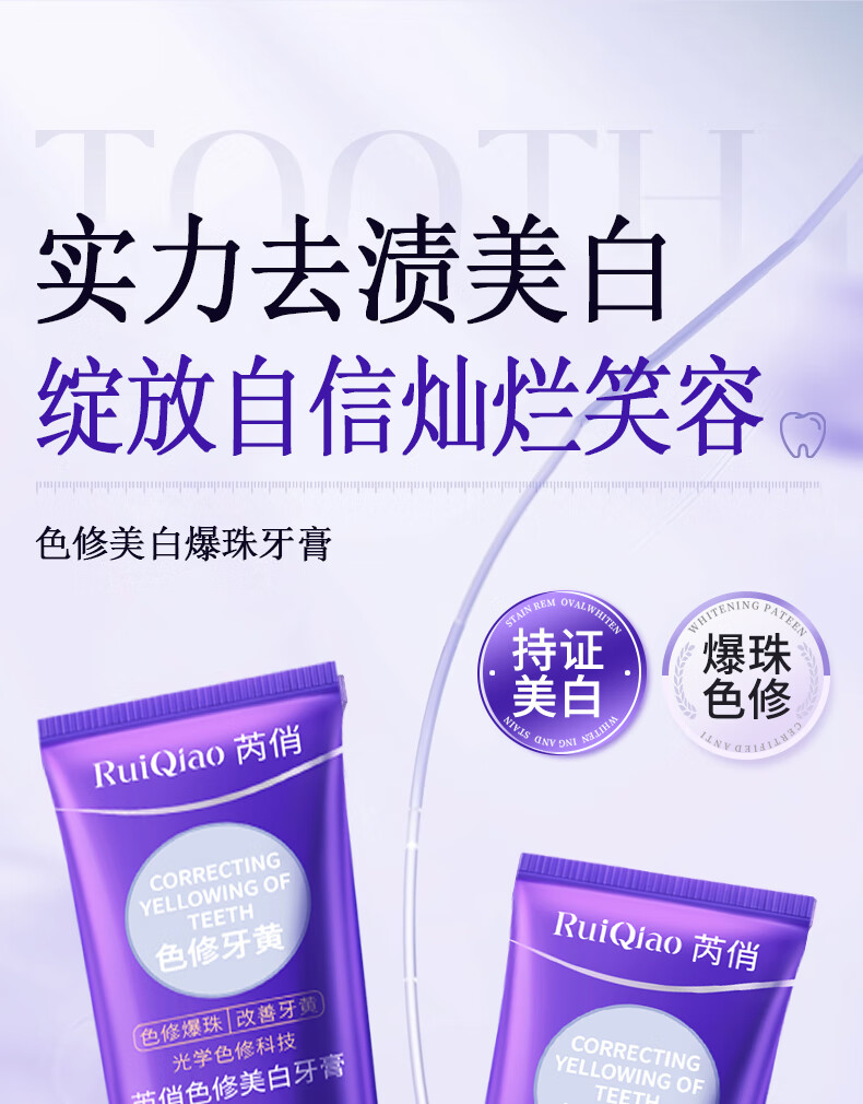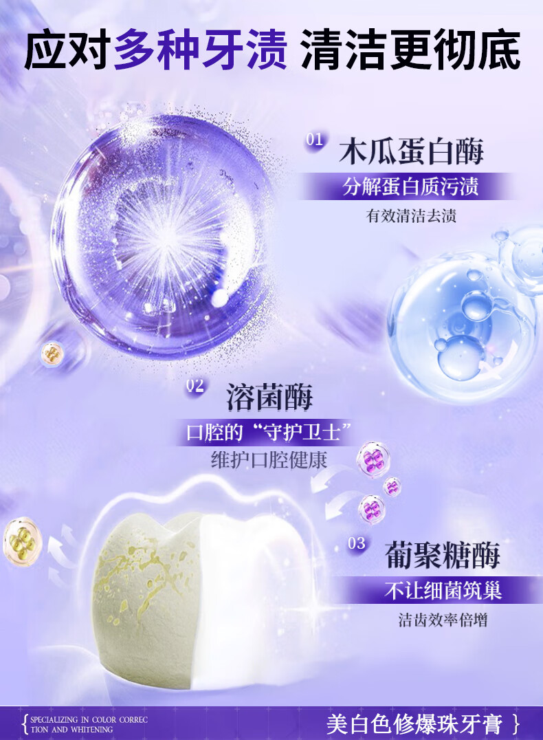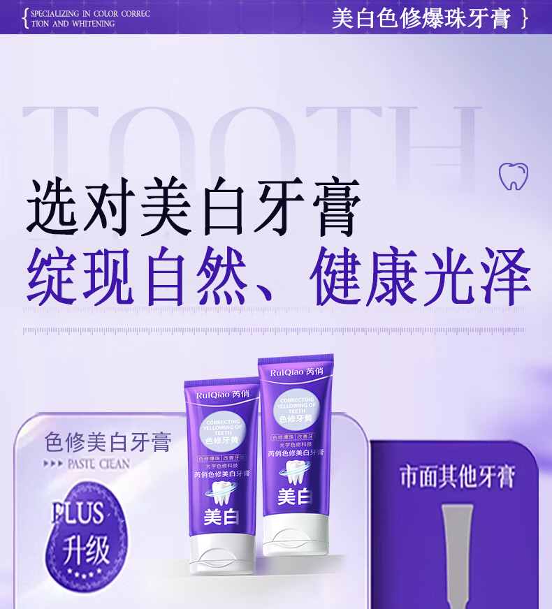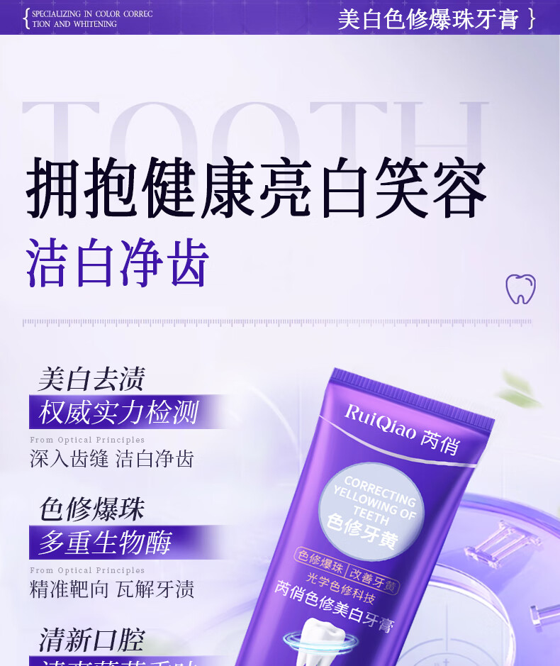 芮俏色修爆珠紫管牙膏美白护龈 【全网热销】色修牙膏 100g*2盒