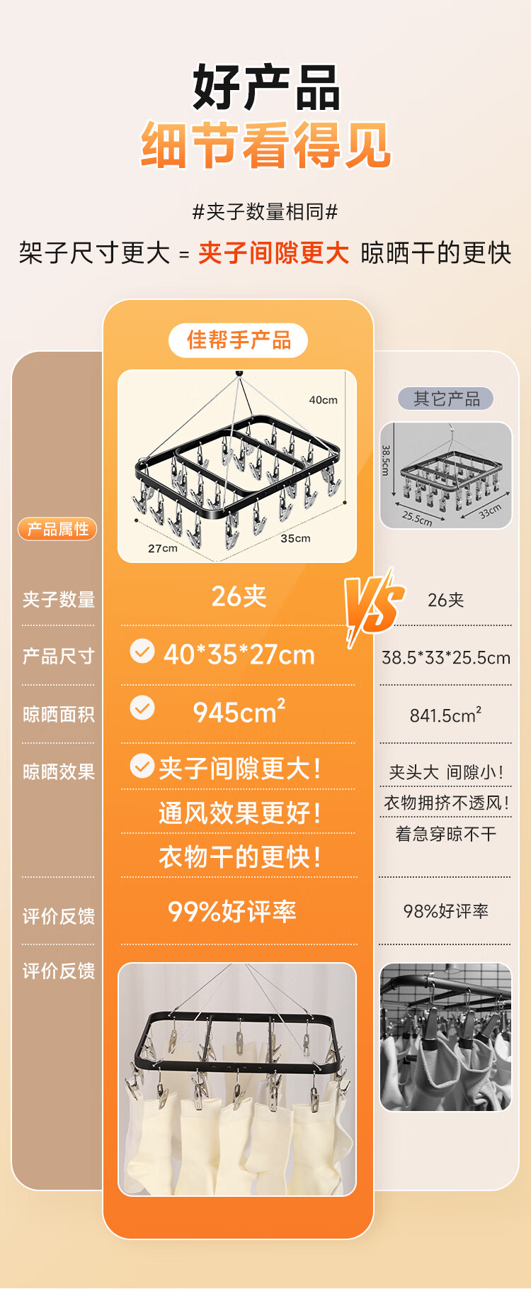 佳帮手晾衣架多夹子晒袜子神器铝合金晾晒架阳台家用多功能晒内衣夹26夹