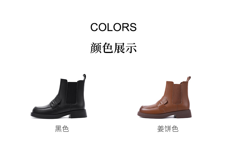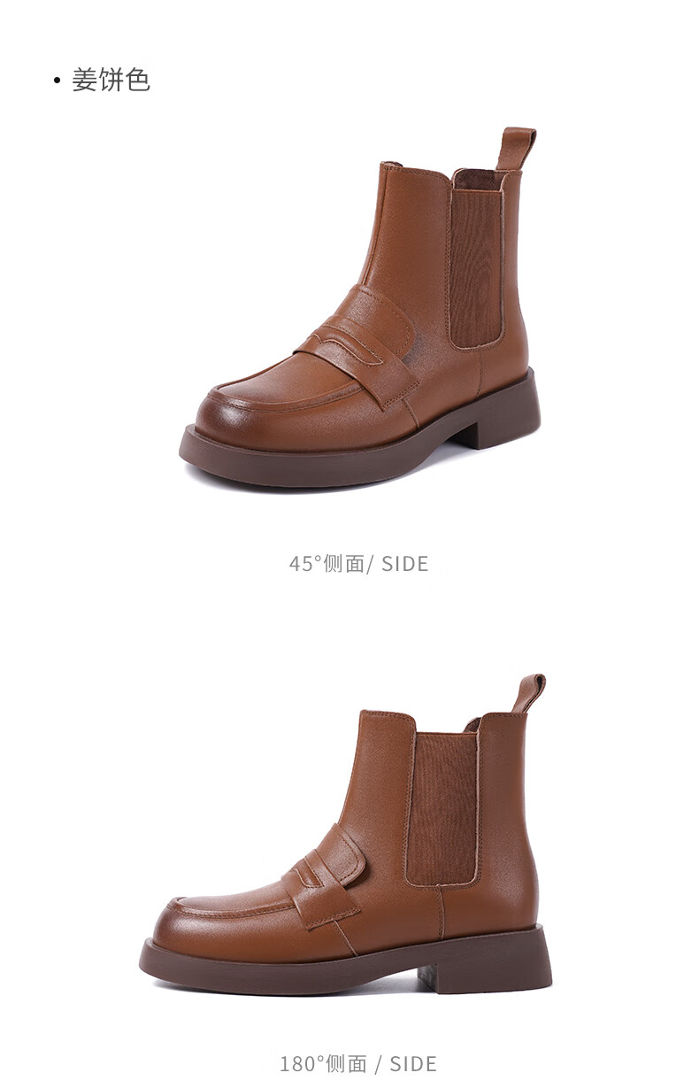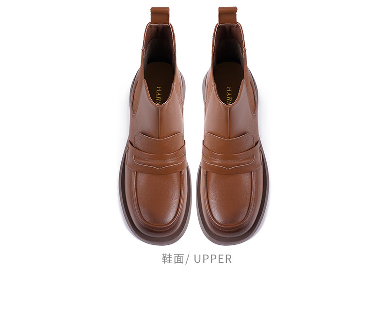 哈森(Harson)女靴冬季英伦风复古厚底粗跟短靴女HA259005 姜饼色 35