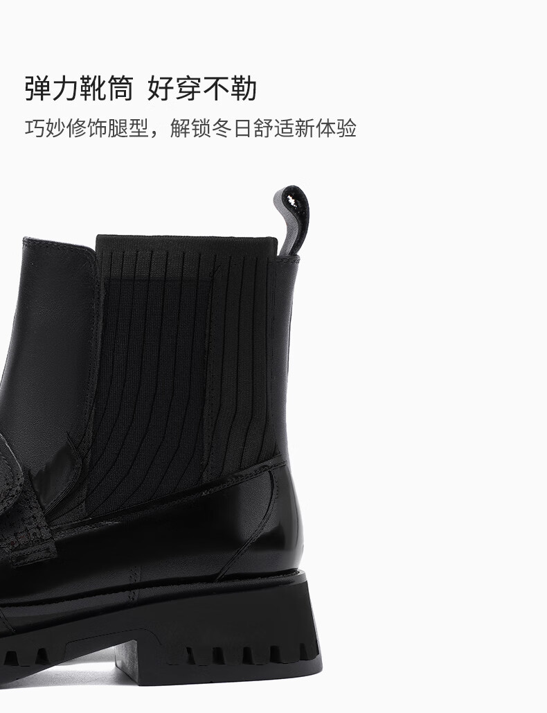 森达乐福鞋女鞋春秋新款商场同款通勤一脚蹬小皮鞋XCA01CA4 经典款-黑色 37