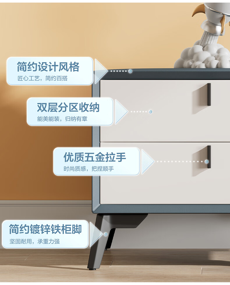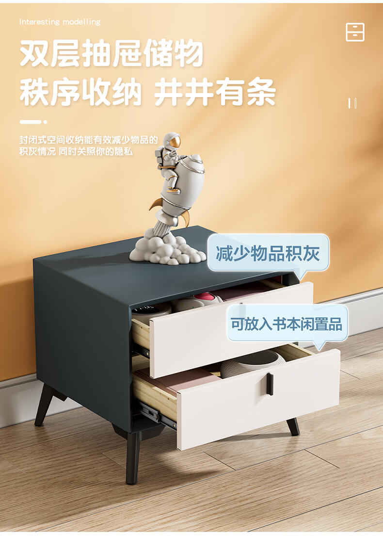 顾家家居(KUKA)简约风床头柜卧室储物柜板木结合收纳柜G-ZY-070粉色床头柜3005 G-ZY-070蓝色床头柜