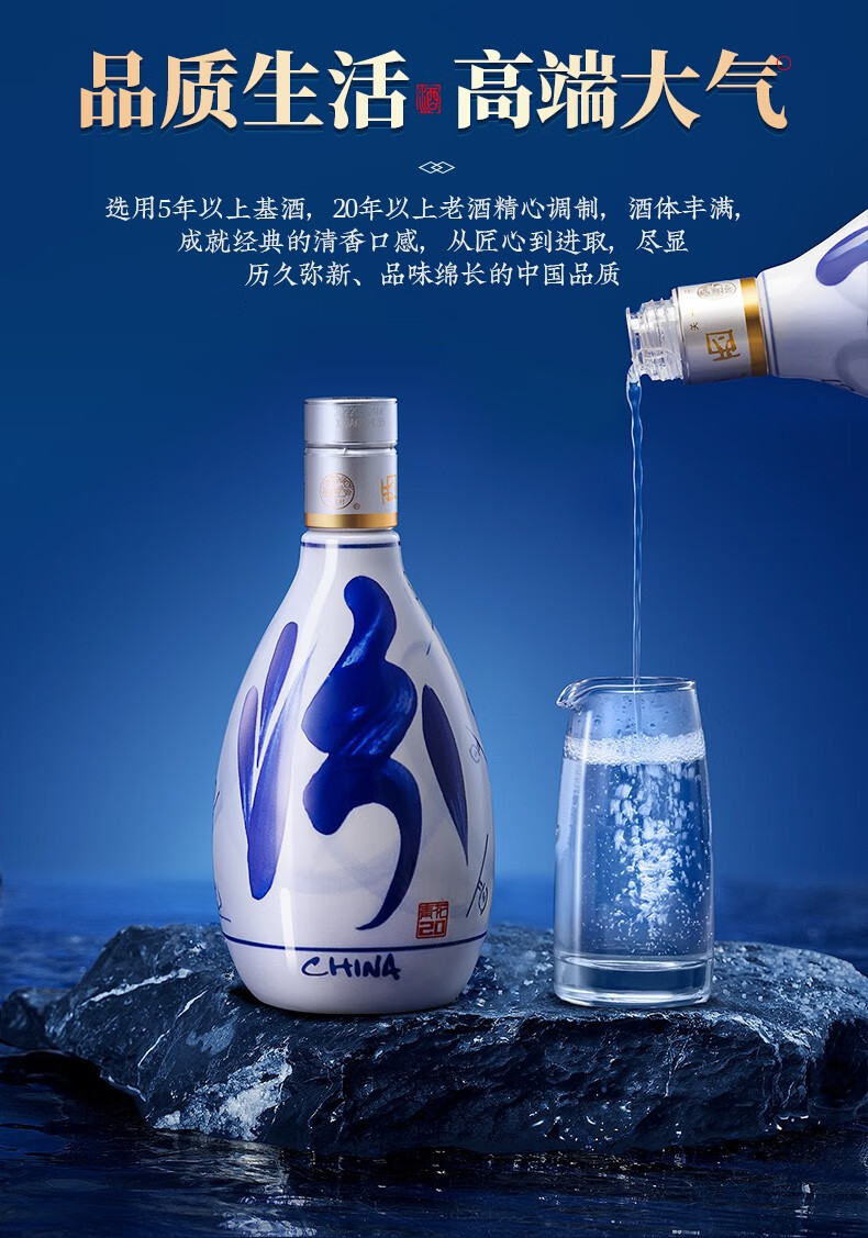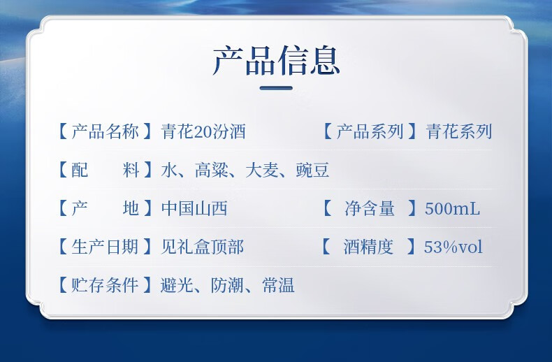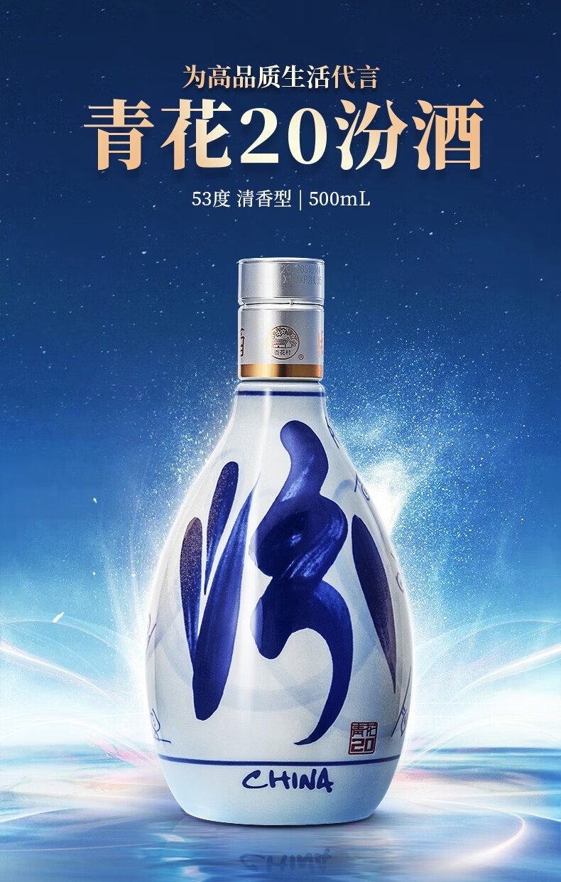 汾酒青花20 【中秋送礼】清香型白酒 商务宴请送礼白酒 双瓶装含礼袋 53度 500mL 2瓶 新老款包装随机发货