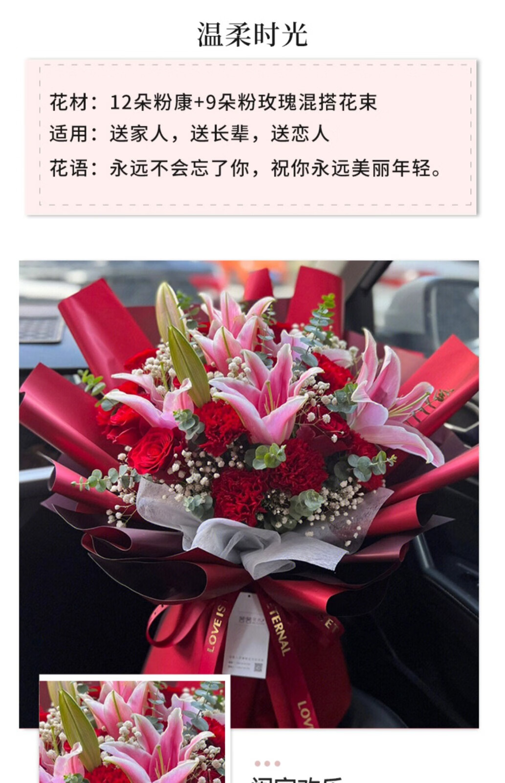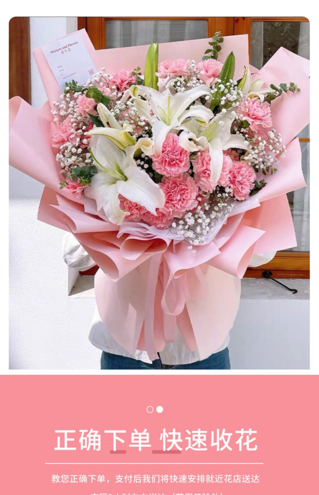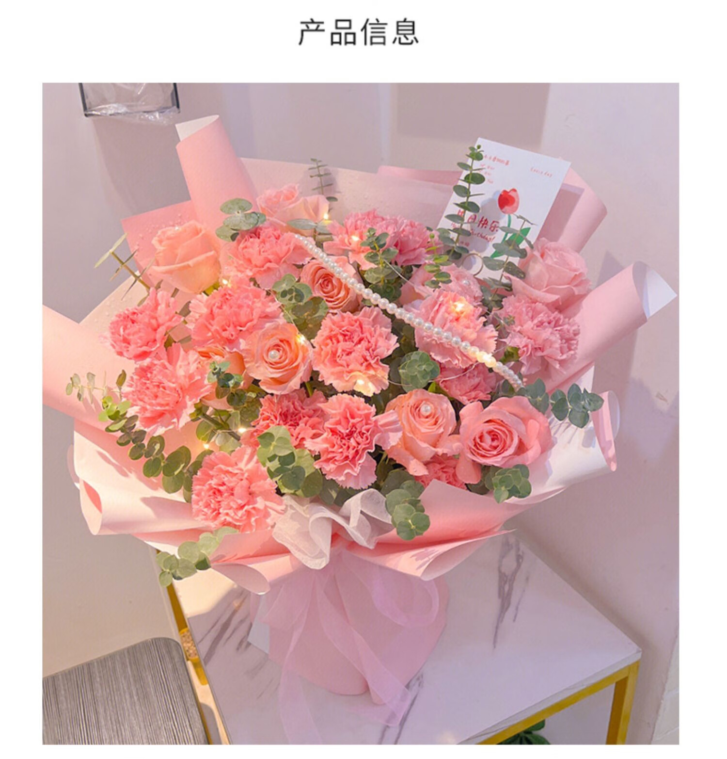植伴康乃馨百合鲜花生日祝福探望病人母亲节鲜花速递送妈妈全国同城店 U款-11朵粉玫瑰康乃馨