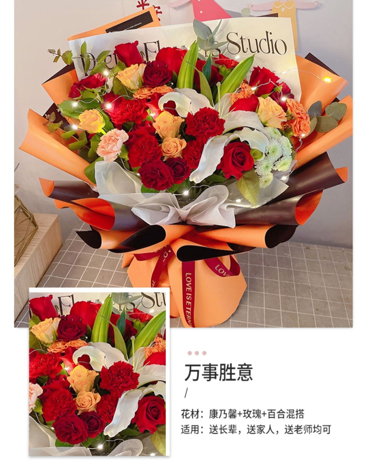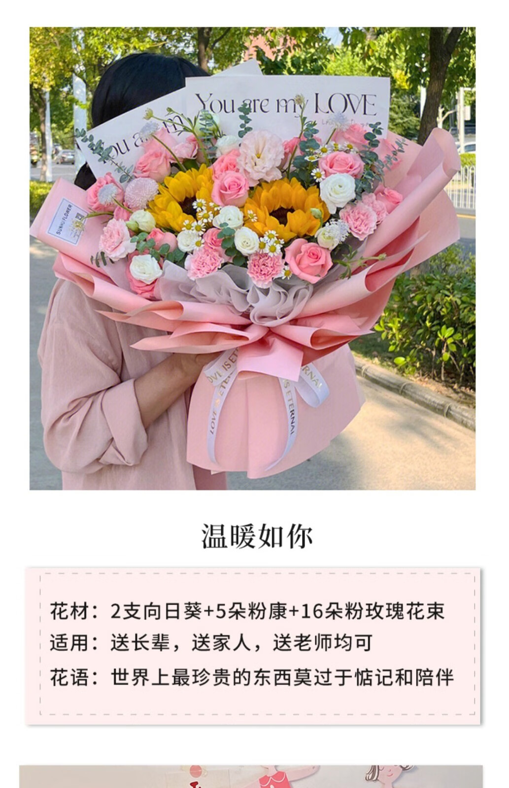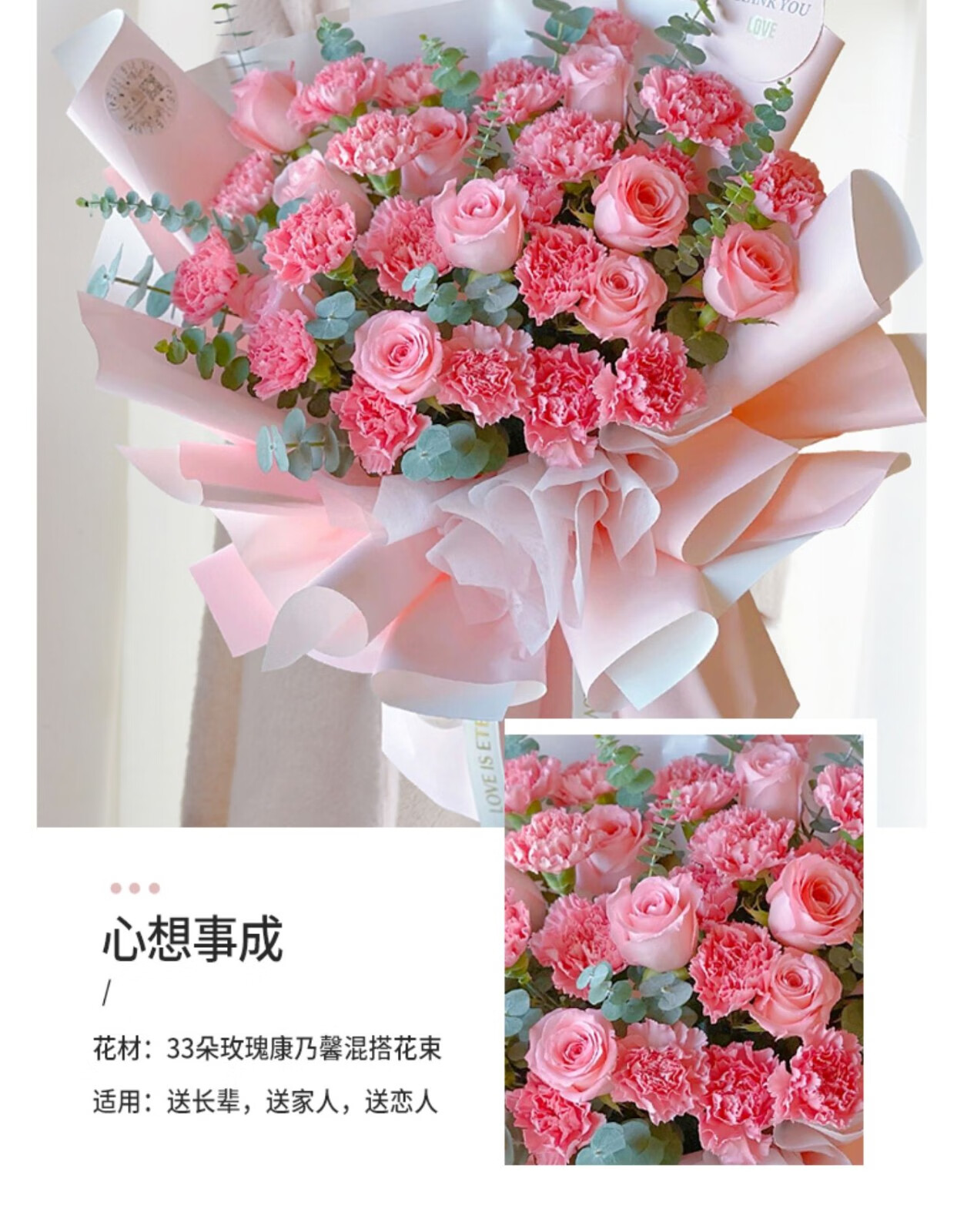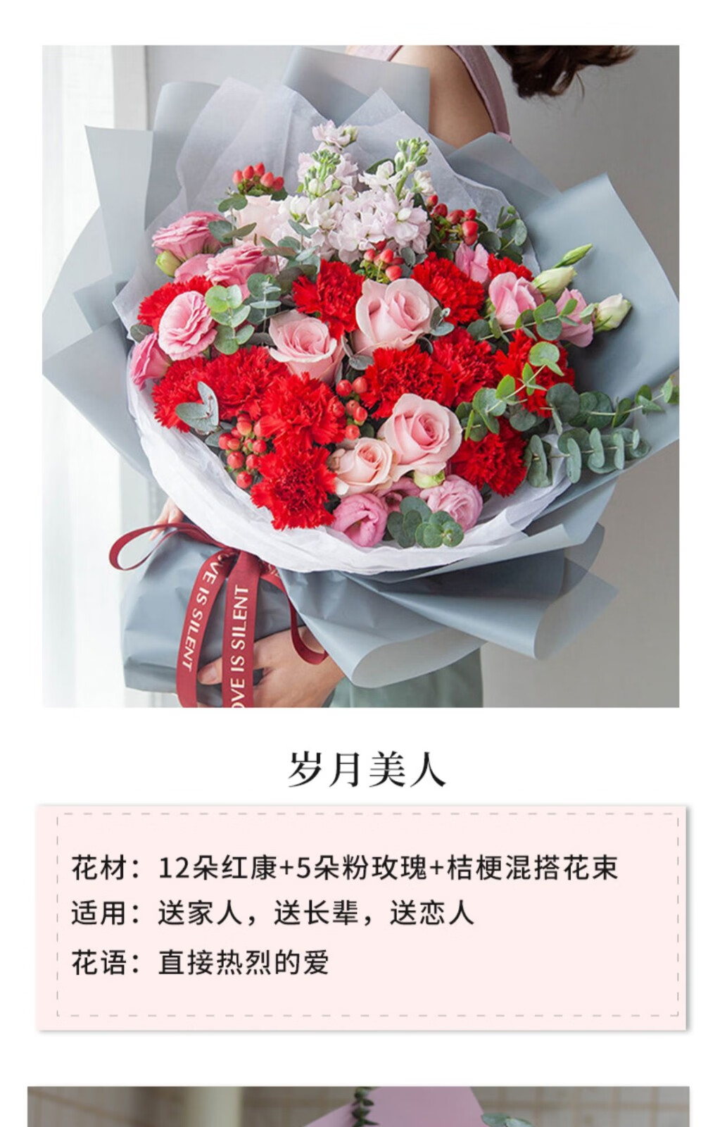 植伴康乃馨百合鲜花生日祝福探望病人母亲节鲜花速递送妈妈全国同城店 U款-11朵粉玫瑰康乃馨