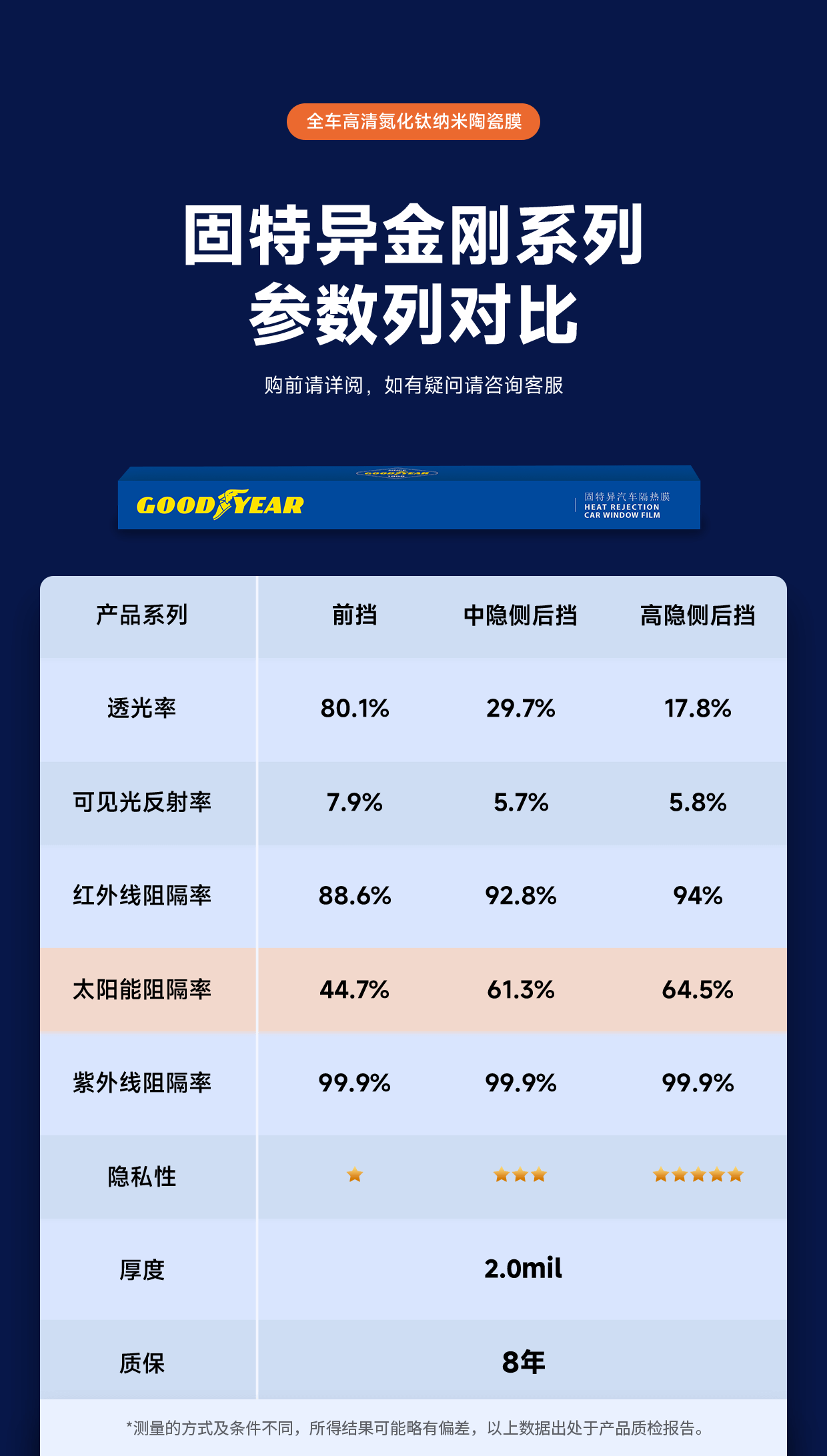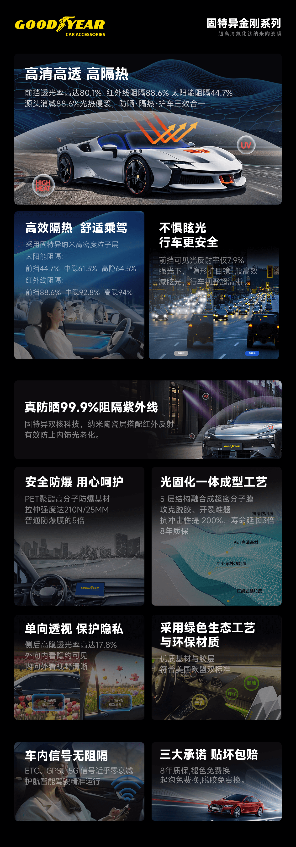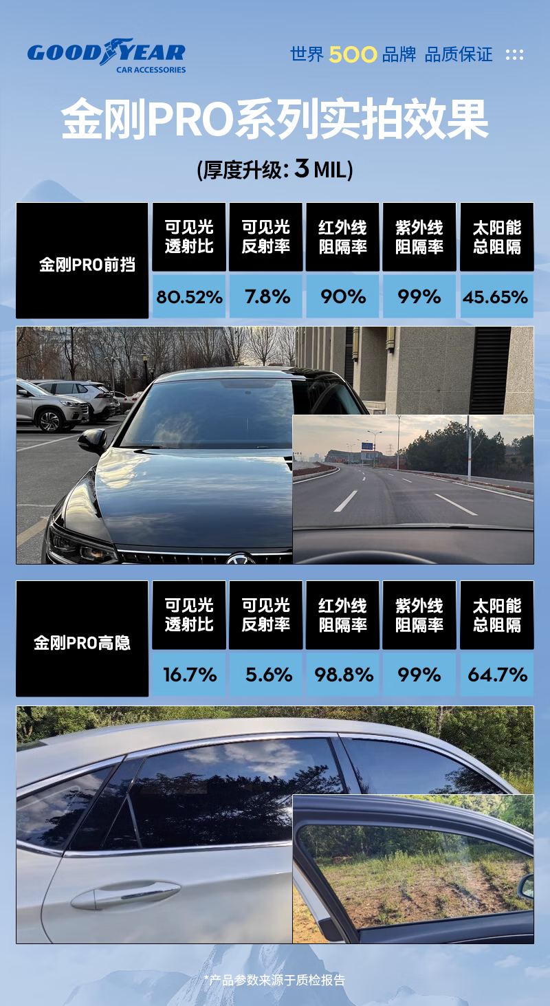 固特异汽车贴膜 汽车隔热膜车窗膜 汽车玻璃膜全车膜太阳膜隔热膜防晒防爆膜车窗玻璃隐私膜包施工 金刚系列中隐私丨普通轿车SUV全车丨纳米陶瓷膜 无旧膜