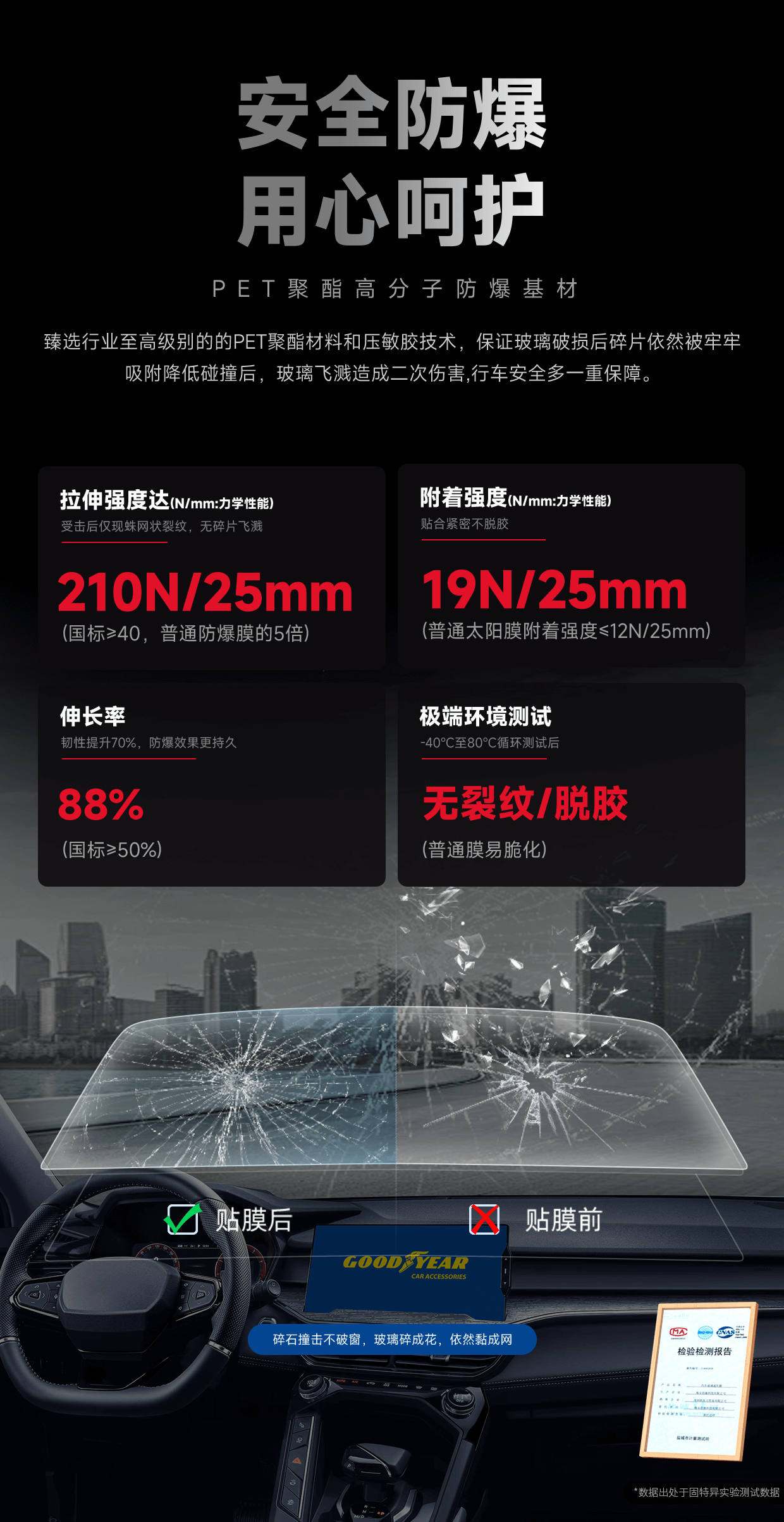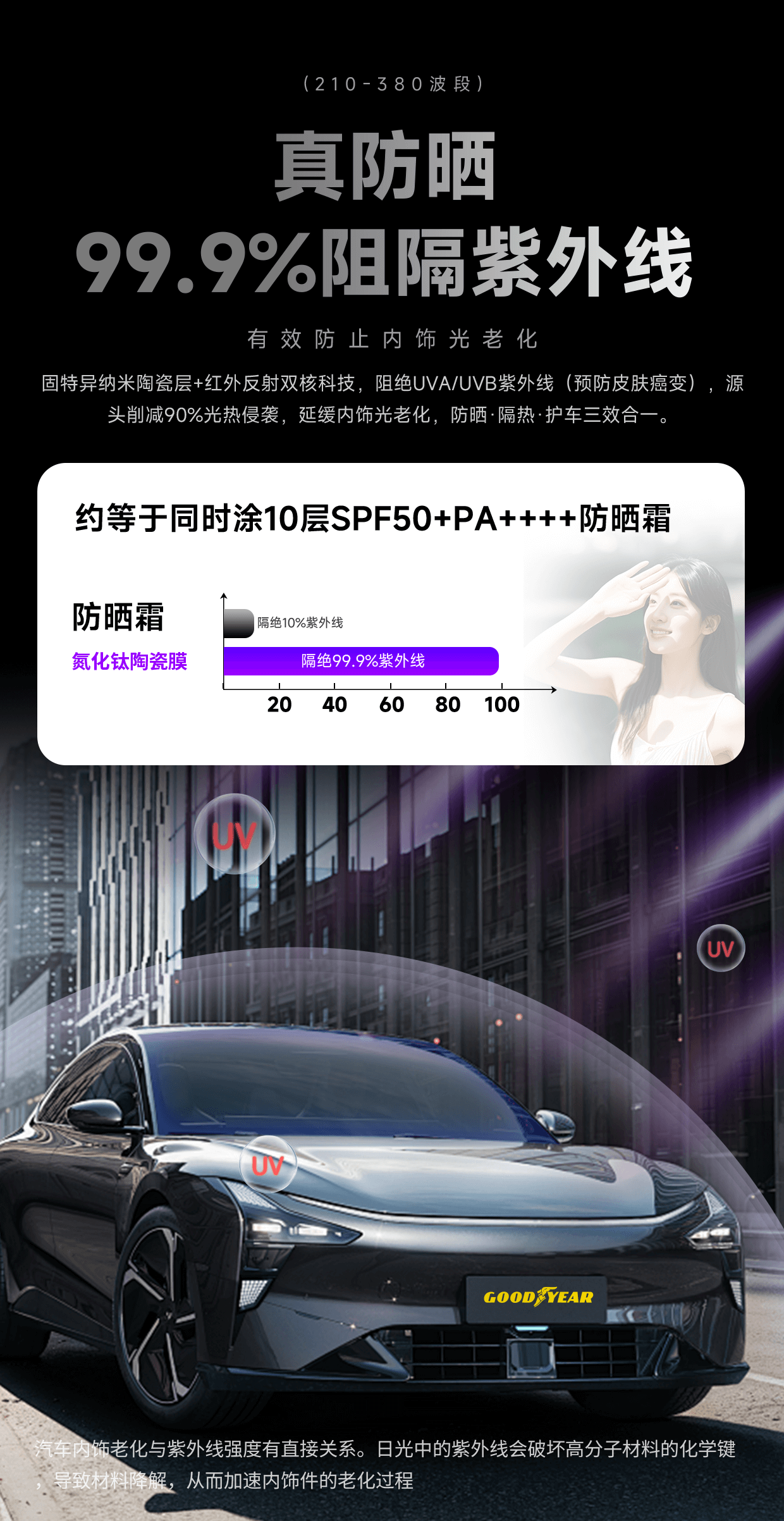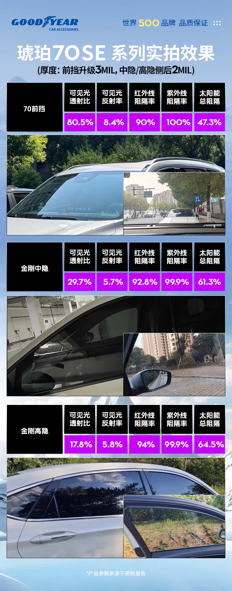 固特异汽车贴膜 汽车隔热膜车窗膜 汽车玻璃膜全车膜太阳膜隔热膜防晒防爆膜车窗玻璃隐私膜包施工 金刚系列中隐私丨普通轿车SUV全车丨纳米陶瓷膜 无旧膜