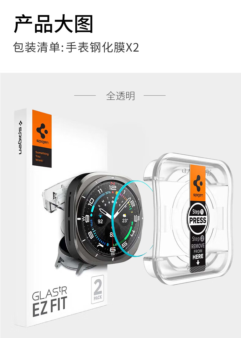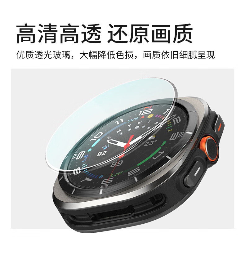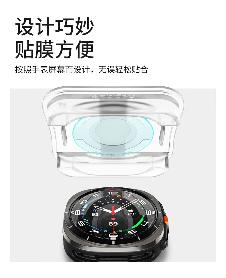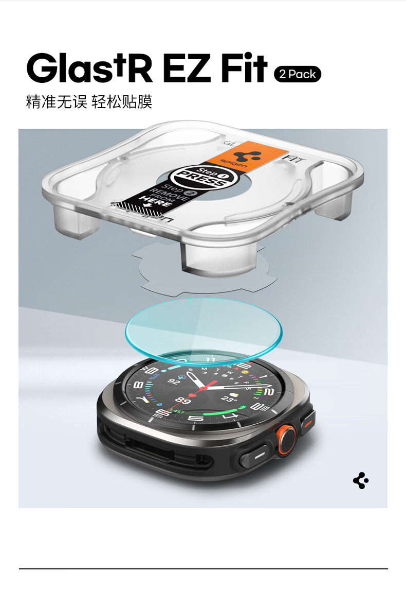 SPIGEN适用三星watch Ultra保护膜手表钢化膜Galaxy Watch全屏高清玻璃贴膜47mm 防摔保护膜 三星【高清透亮款】2片装 自带贴膜神器