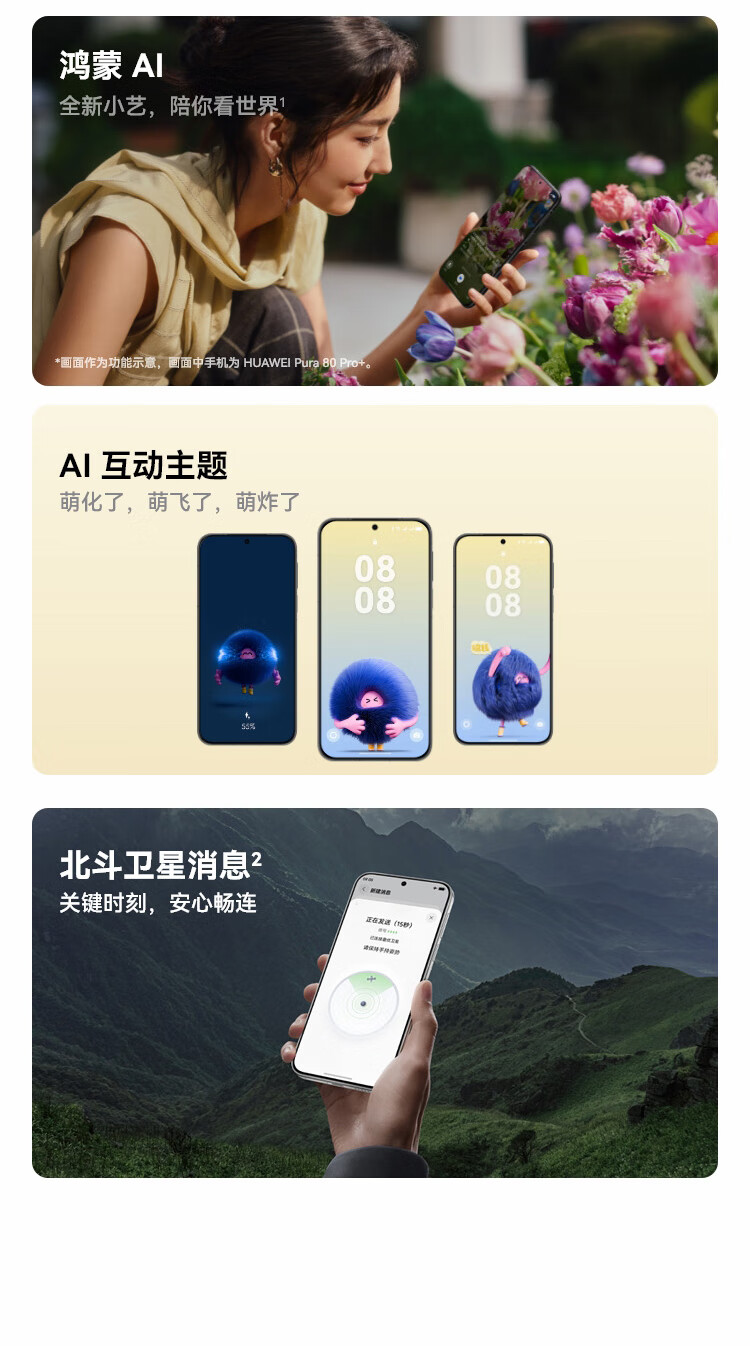 HUAWEI Pura 80 新品旗舰华为手机 p80 丝绒直屏 红枫原色影像 鸿蒙AI 北斗卫星消息 华为鸿蒙智能手机 丝绒白 12GB+512GB 官方标配