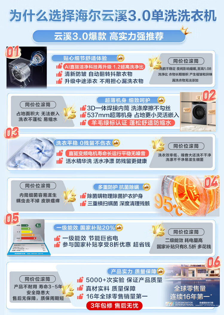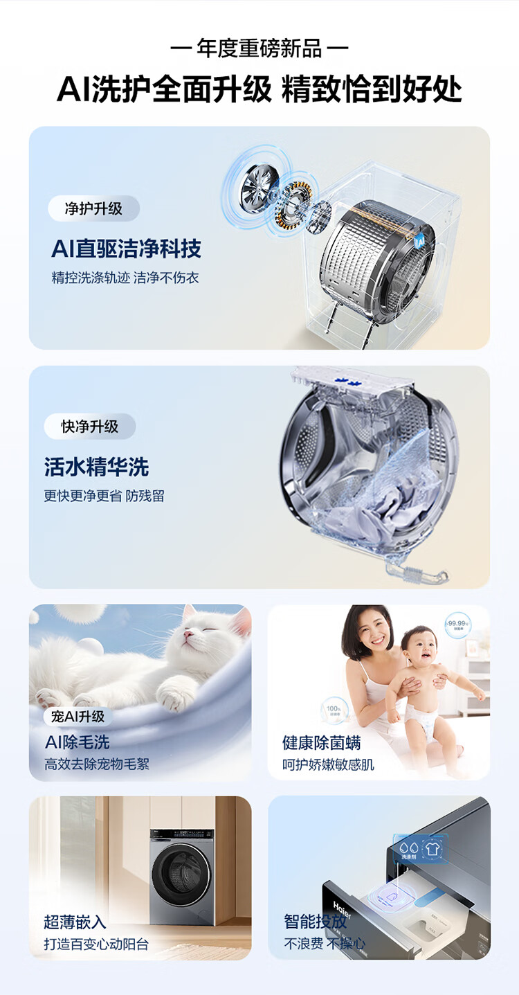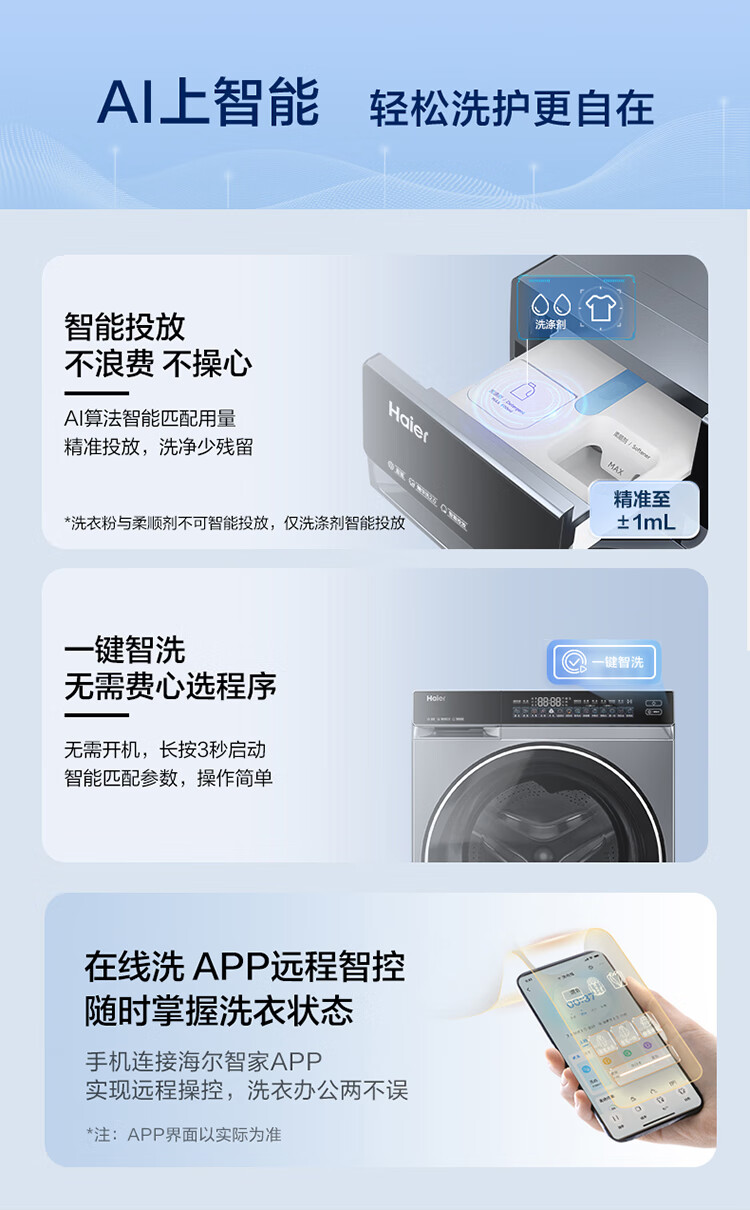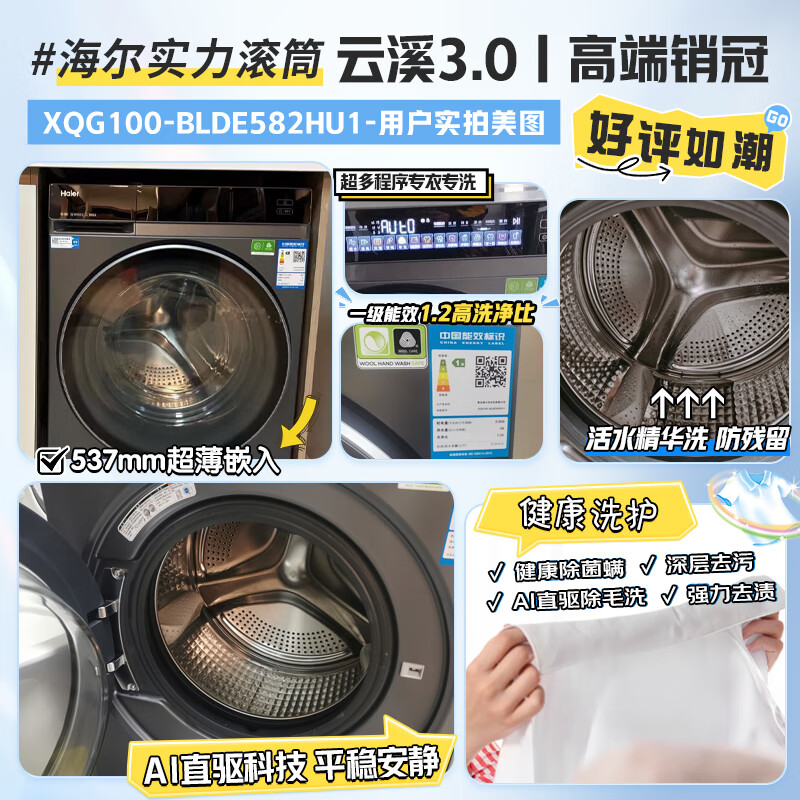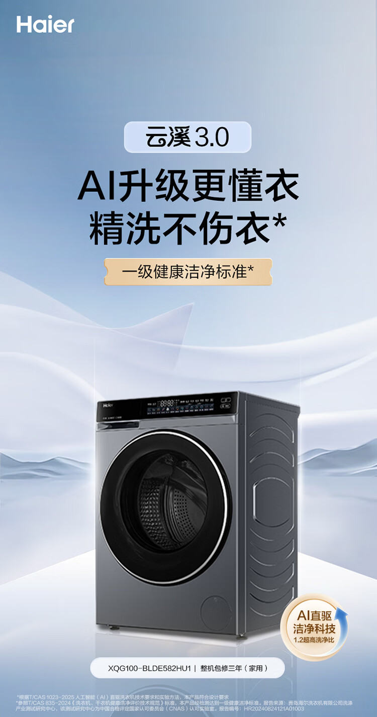 海尔(Haier)云溪3.0滚筒洗衣机全自动10公斤 懒人家用AI升级583直驱变频智投大容量 BLDE582HU1国家补贴20% 【云溪3.0】高端单洗丨以旧换新丨全新升级