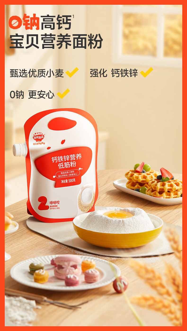 秋田满满低筋面粉钙铁锌营养带吸嘴锁鲜小麦儿童蛋糕粉享宝宝食谱500g