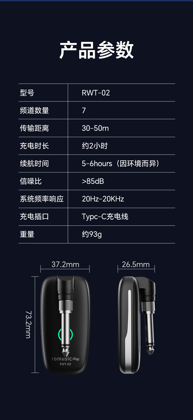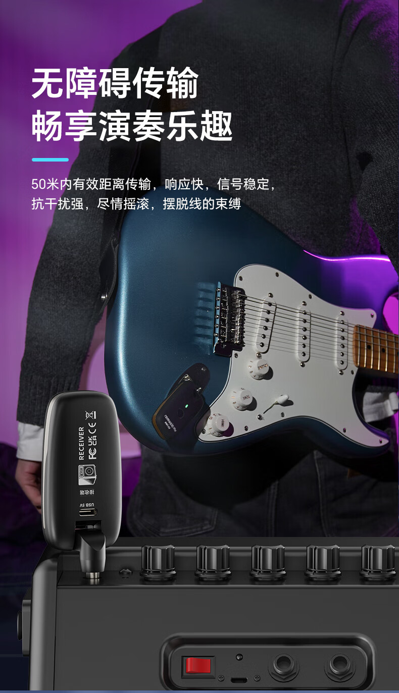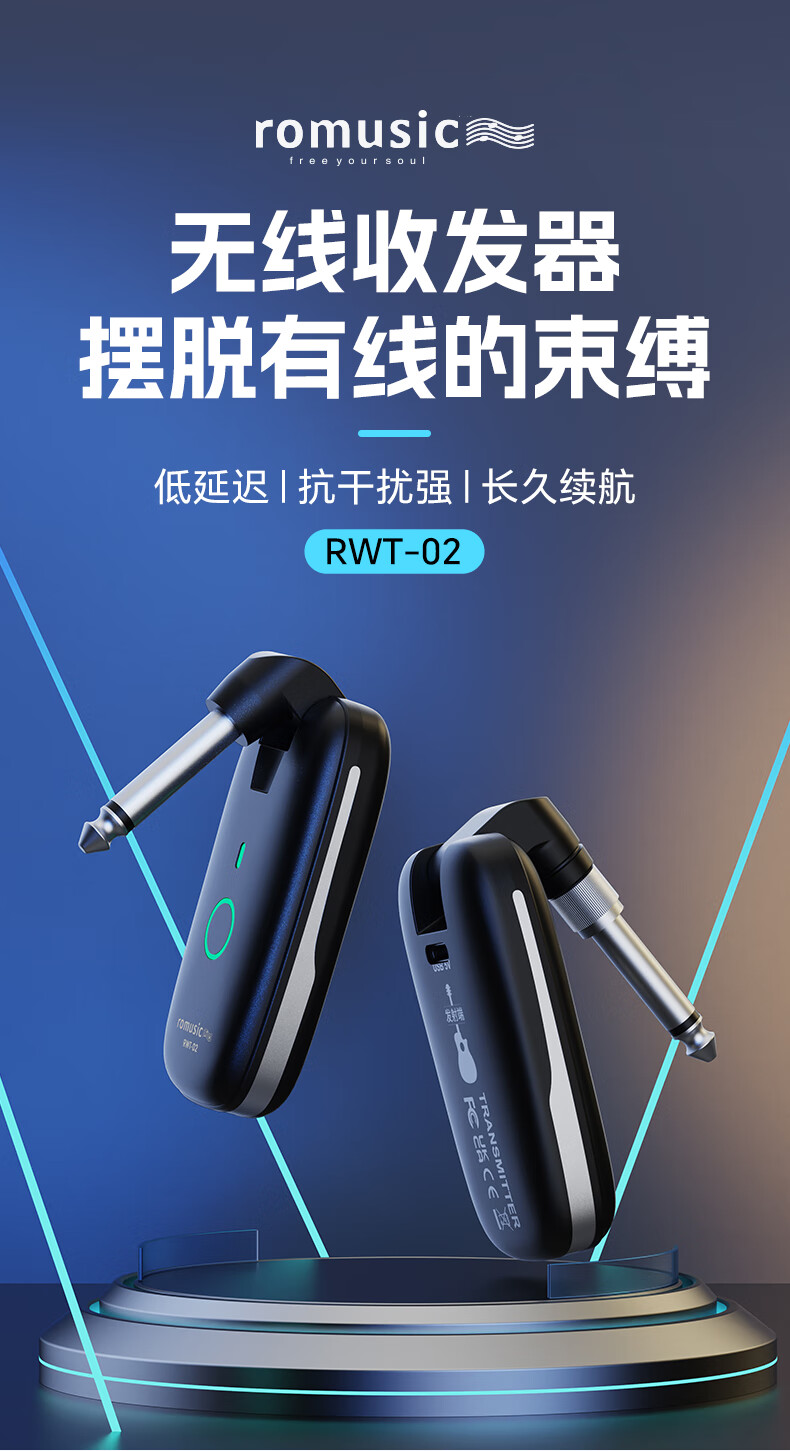 romusic无线收发器电吹管电木吉他电子琴乐器通用可充电无线接收器RWT-02