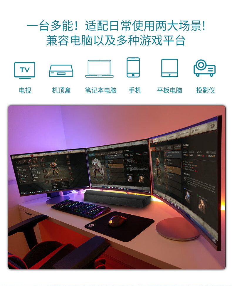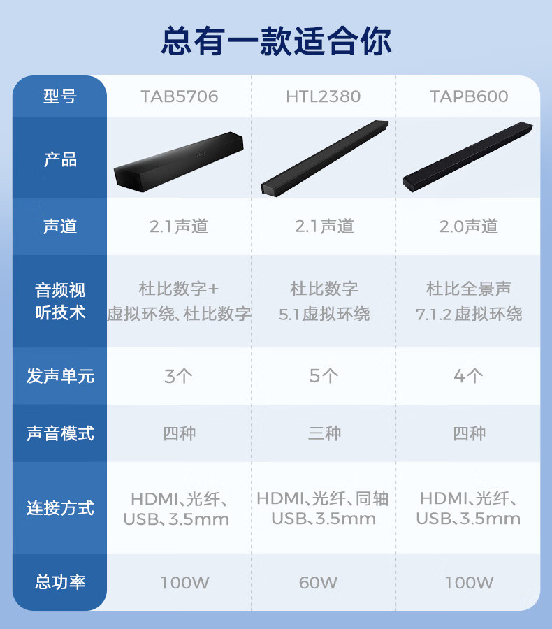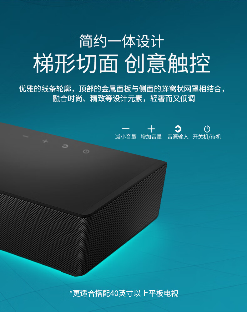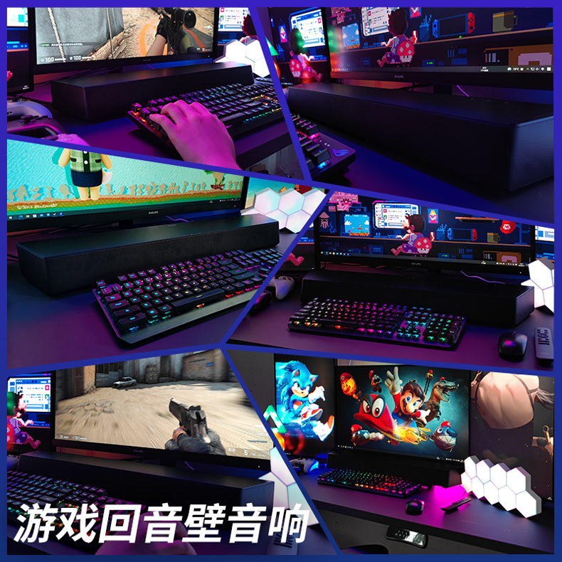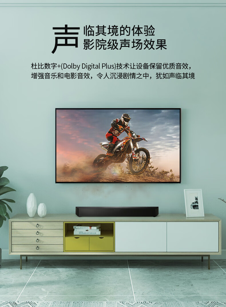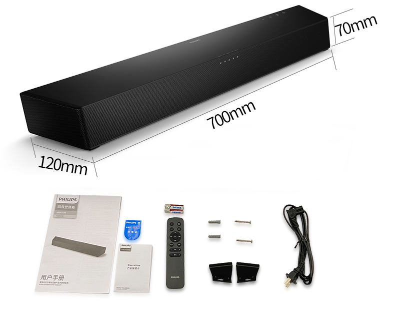飞利浦(PHILIPS)TAB5706 回音壁 电视音响 内置低音炮 2.1声道 200W峰值功率 游戏电脑电视回音壁 杜比音效