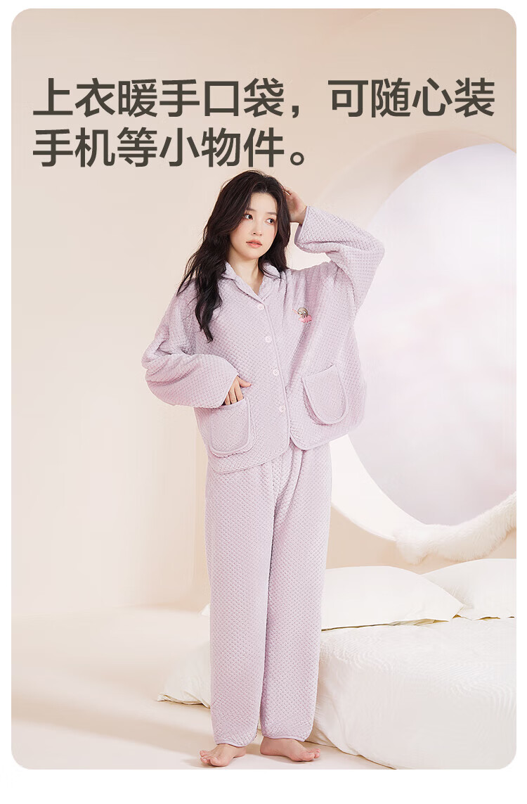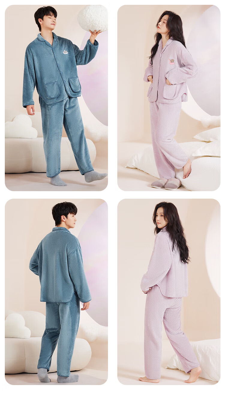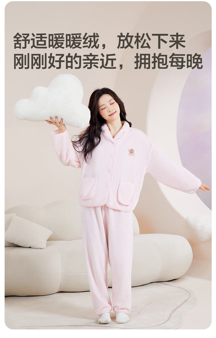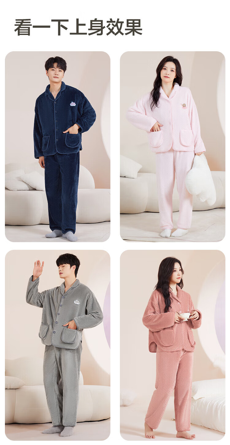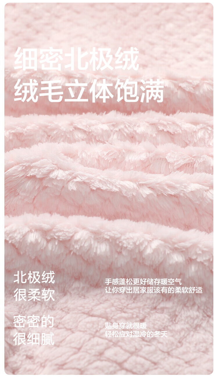 红豆居家(Hodohome)【加绒加厚】秋冬保暖柔软情侣男女宽松版长袖开衫睡衣套装可外穿 山茶红 L 170