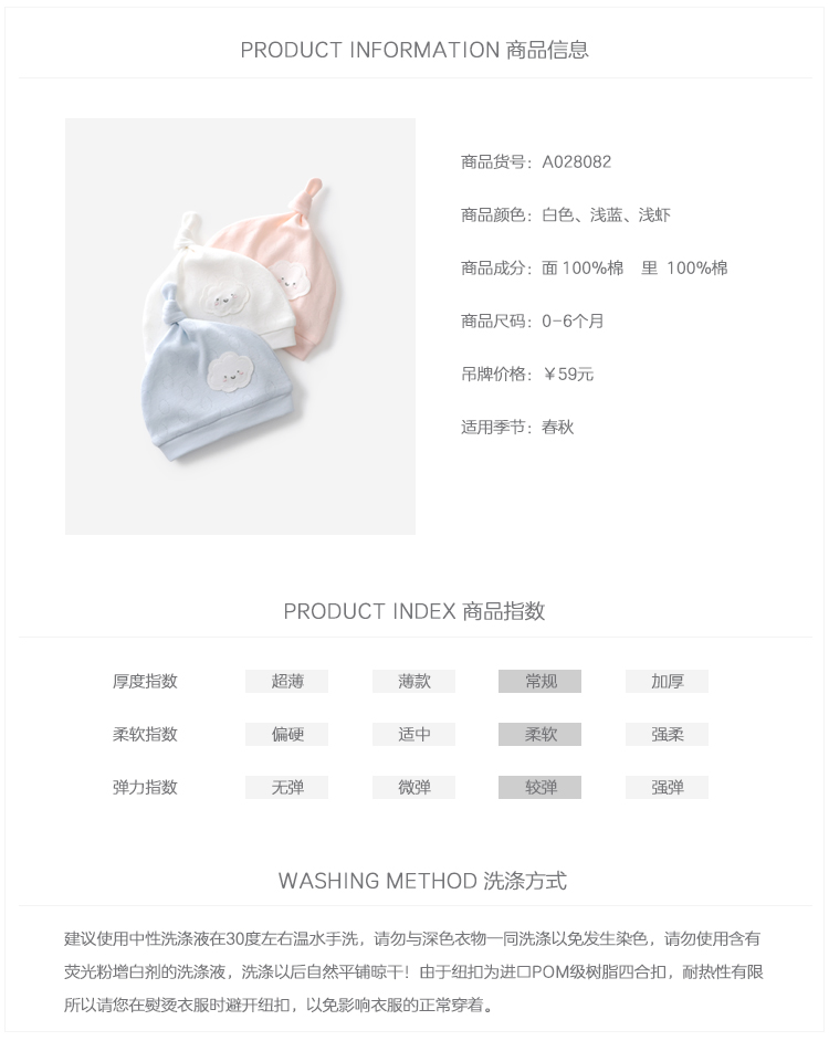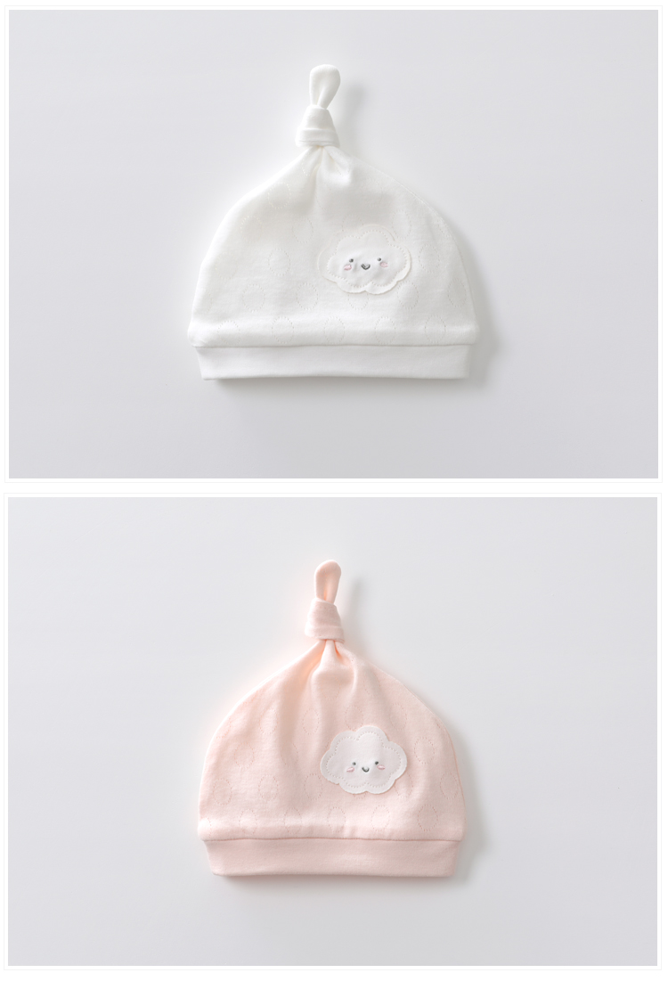 aqpa新生儿秋季帽子婴儿纯棉柔软防风帽男女宝宝春秋辫子帽 白色 0-3个月(适用头围34-37cm)