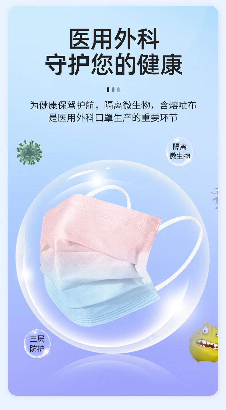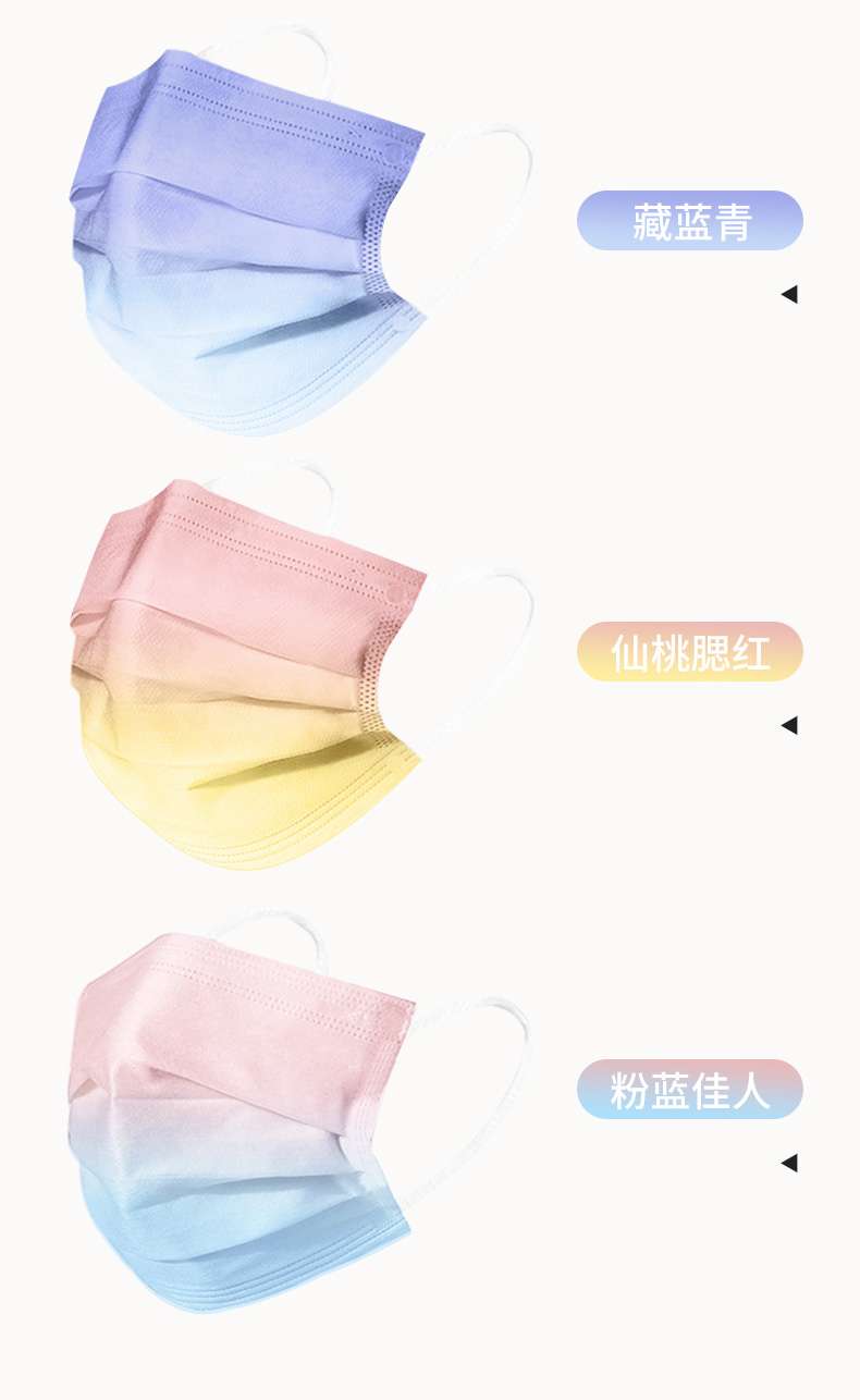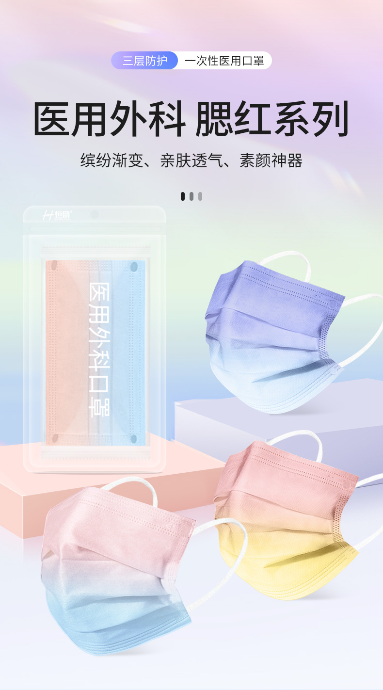 恒助莫兰迪医用外科口罩渐变高颜值一次性医疗防护口罩彩色独立包装 【独立包装】颜色随机50片