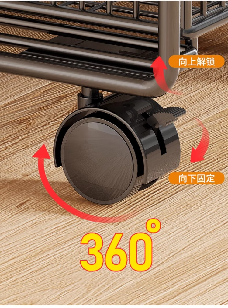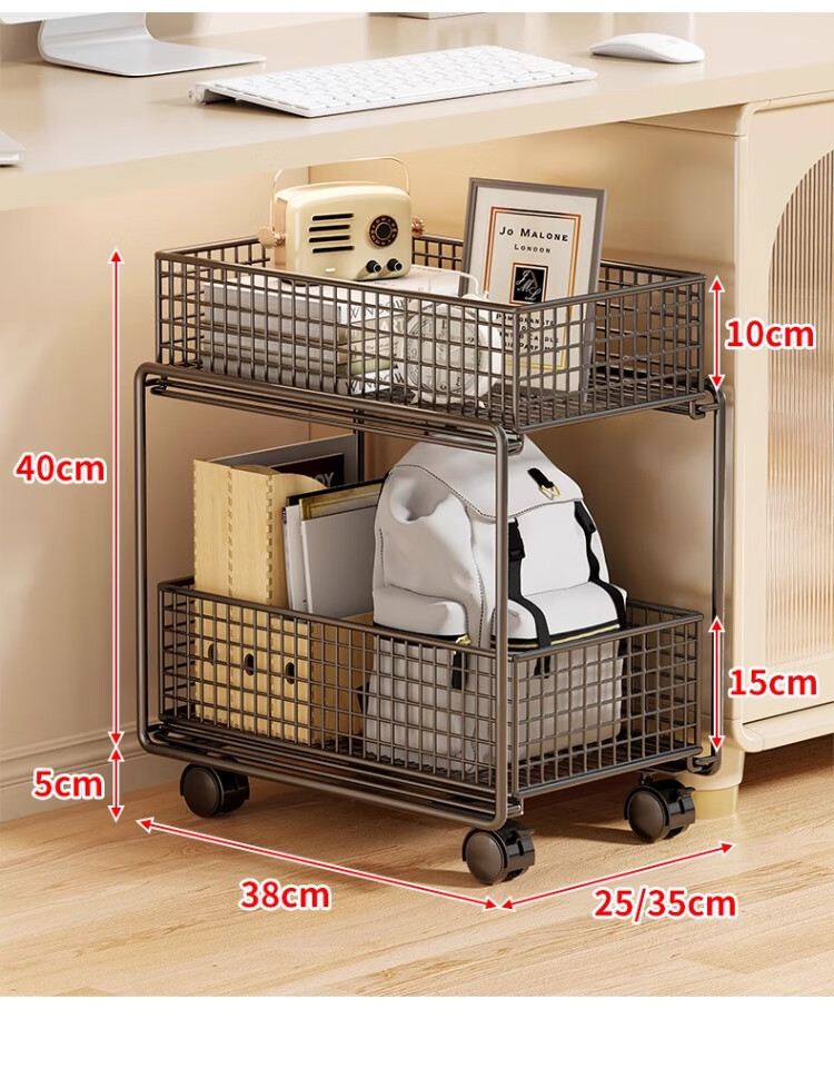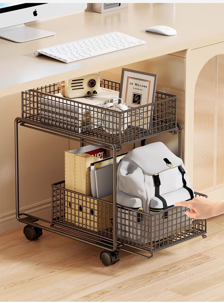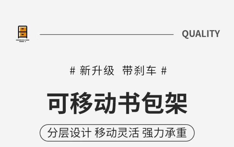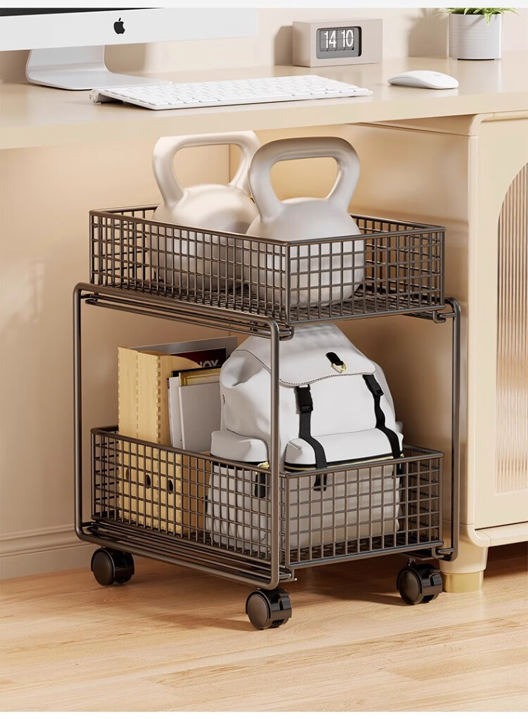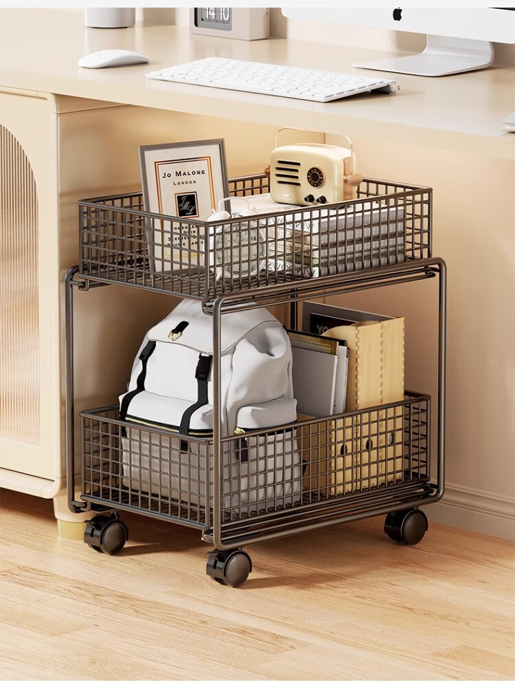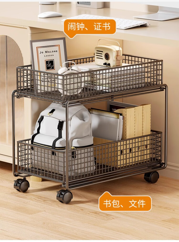 尔思家书架立式落地桌下可移动置物架现代简约书包收纳办公室柜子储物柜 黑色大号-带轮