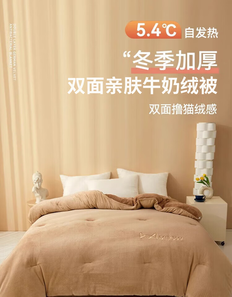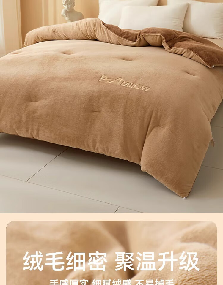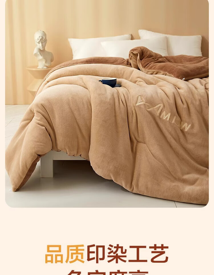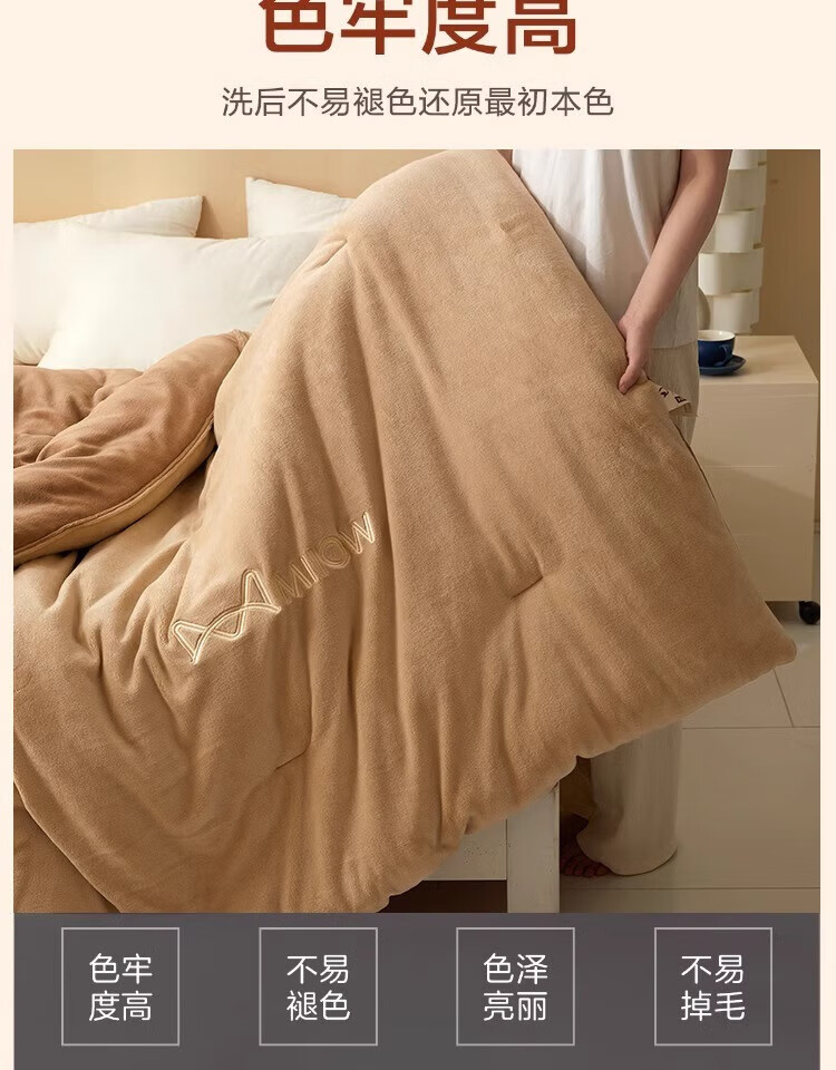 猫人(MiiOW)加厚牛奶绒被子秋冬被 冬季加厚被芯单双人被褥 深灰 150*200cm秋冬被约5斤
