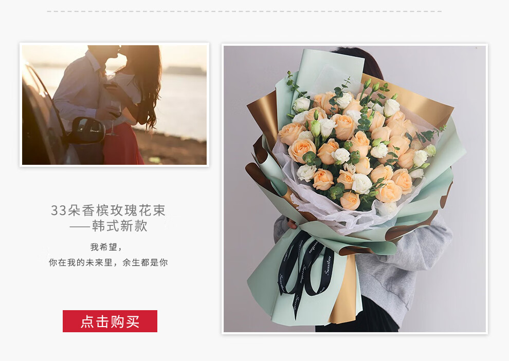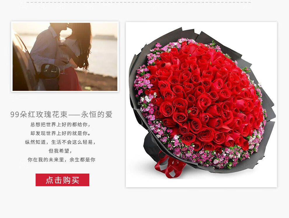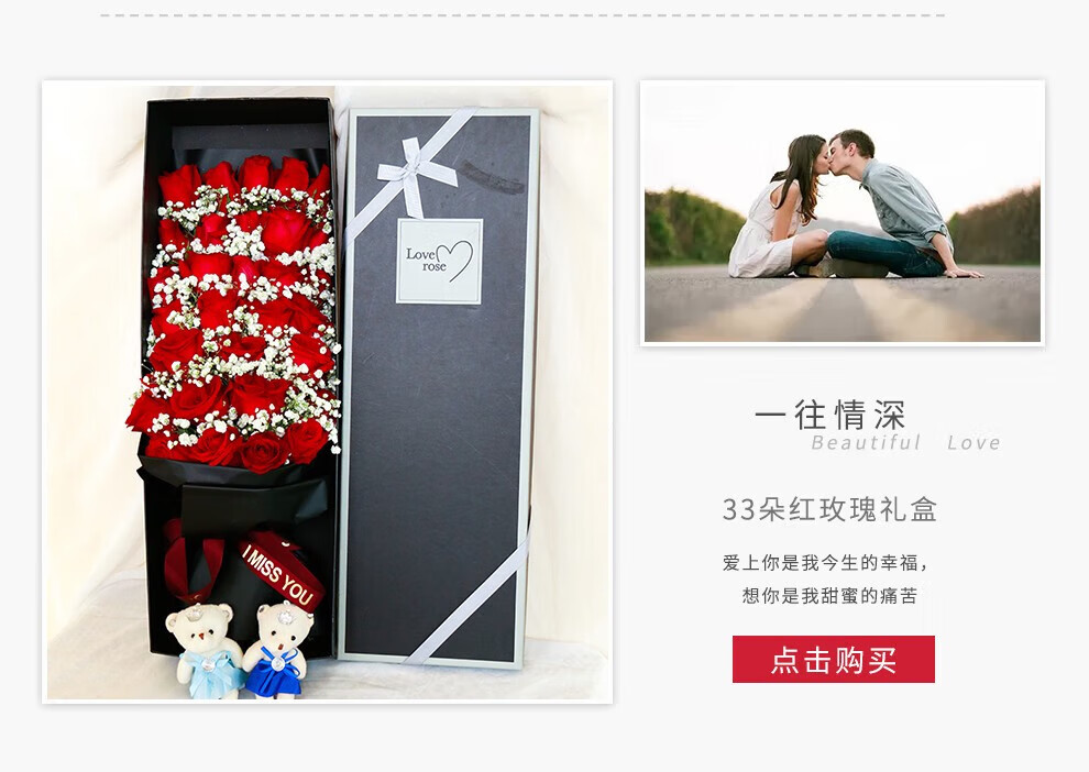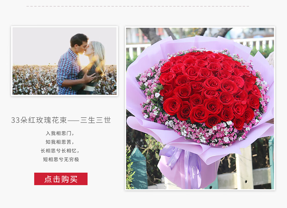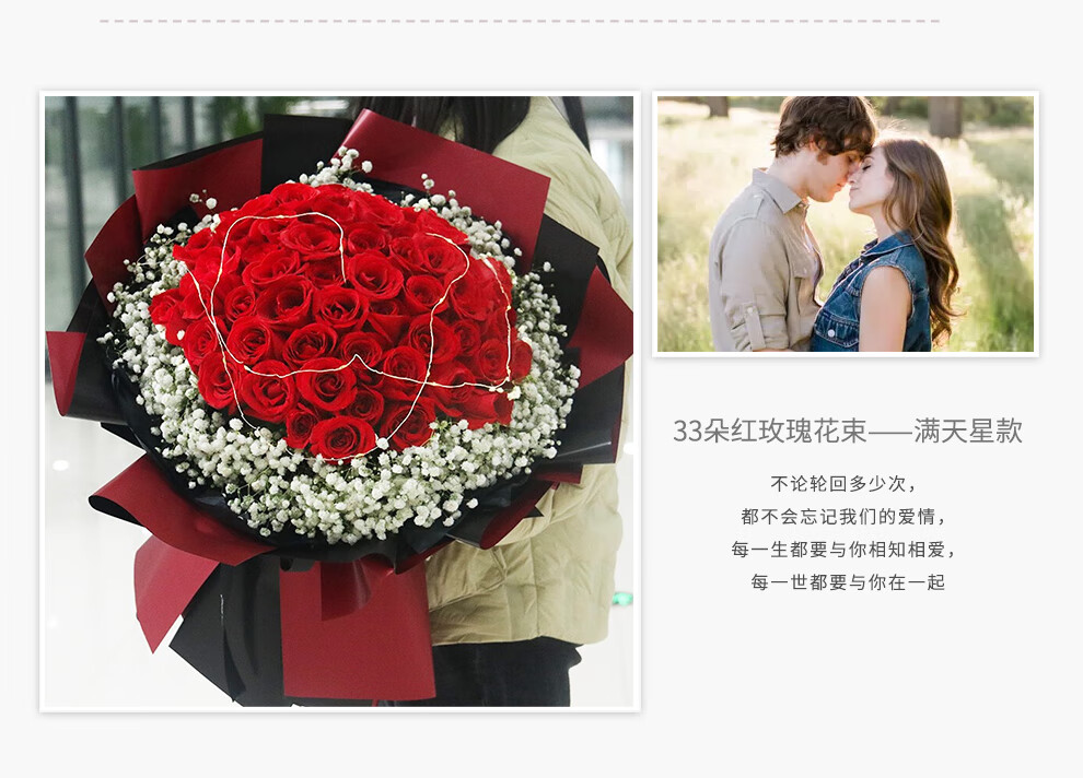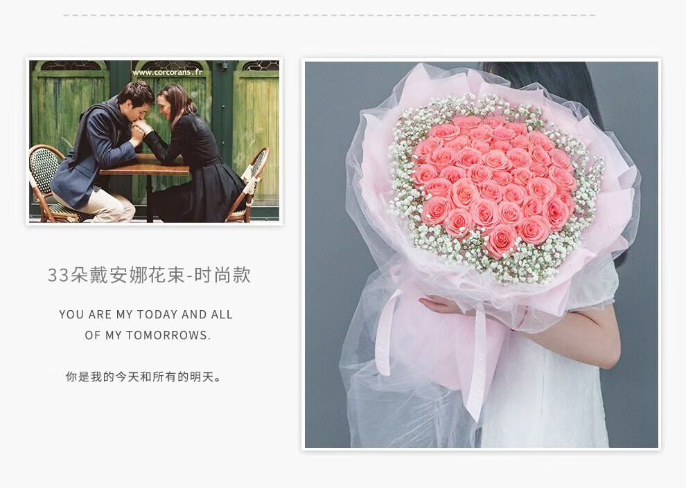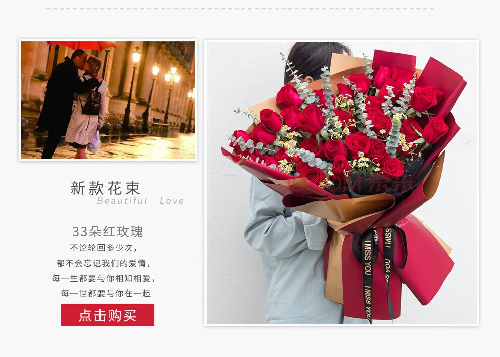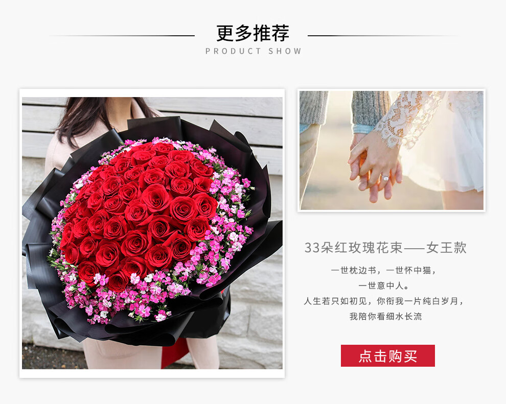 幽客玉品鲜花速递红玫瑰花束表白送女友老婆生日礼物全国同城配送 33朵红玫瑰花束—女王款
