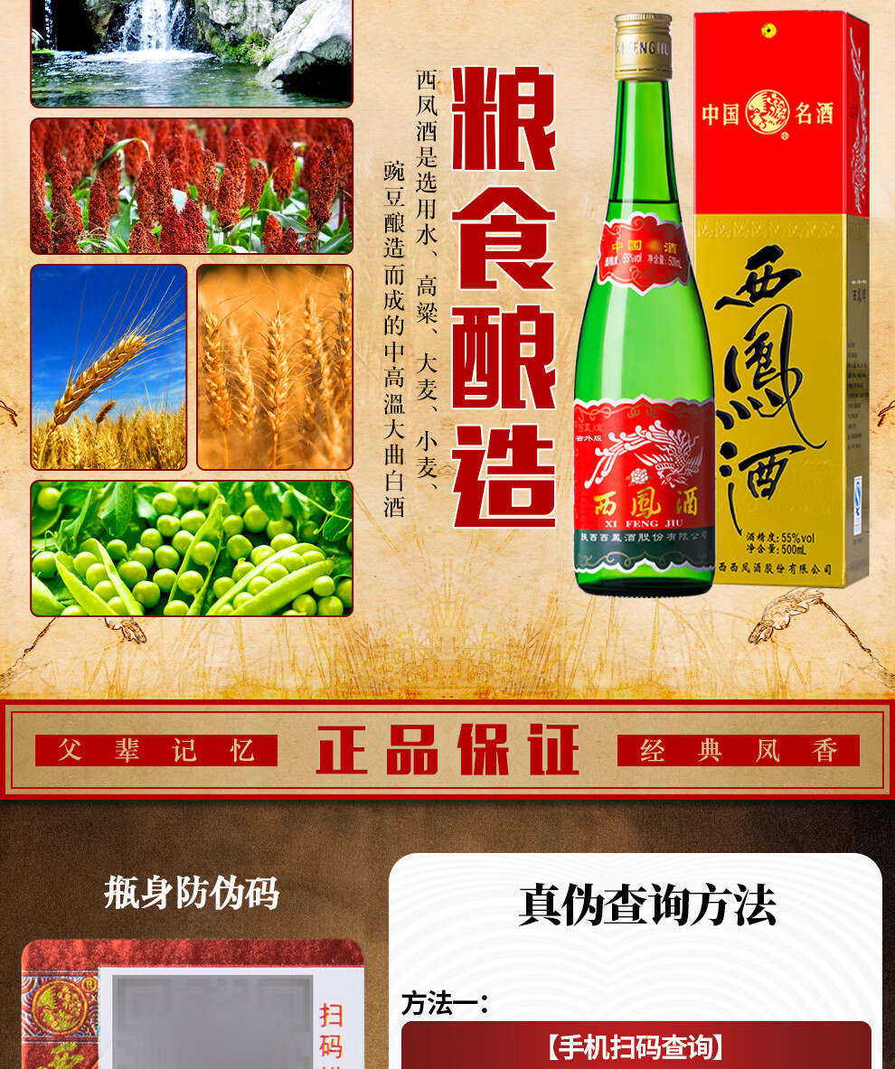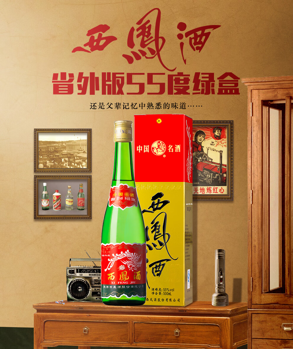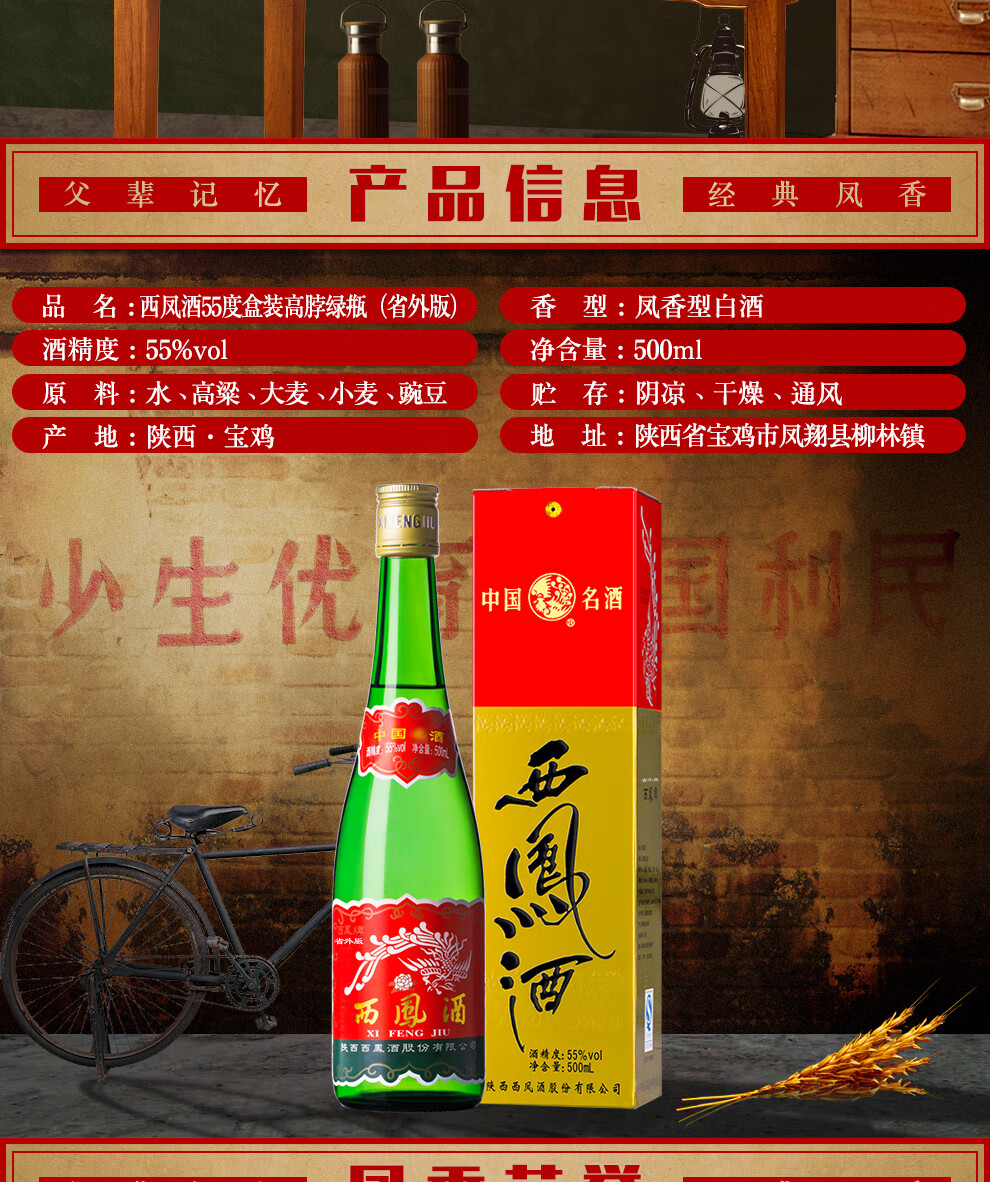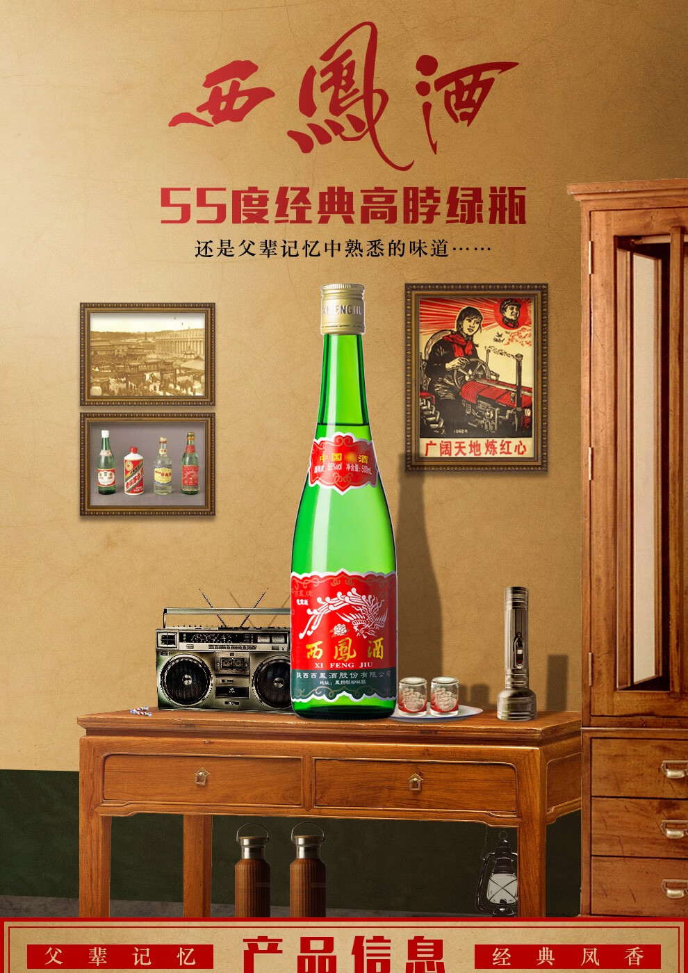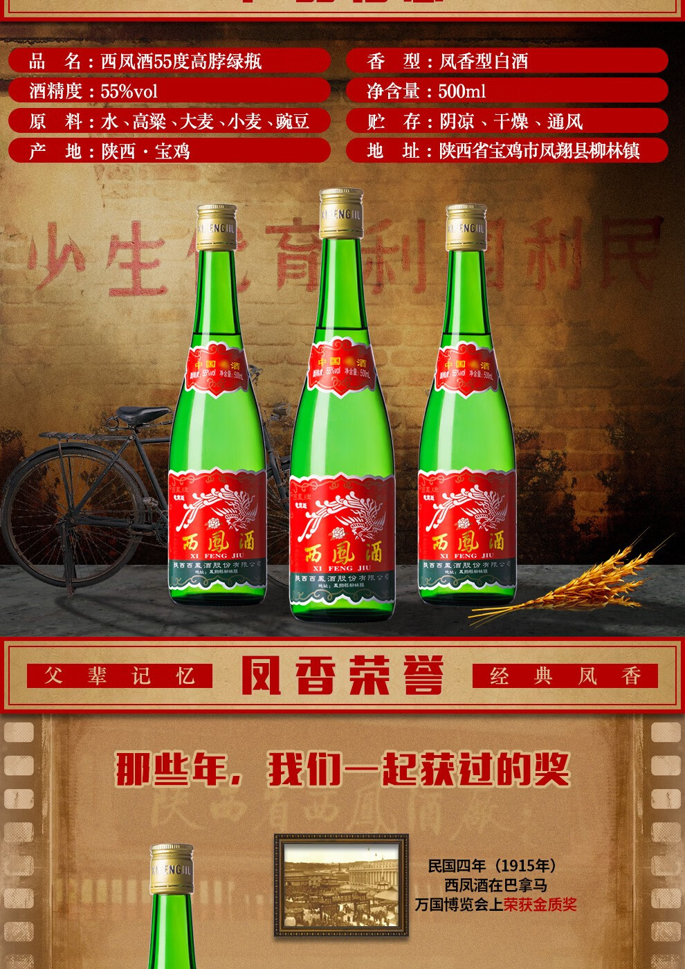 西凤【官方授权】陕西凤酒高脖绿瓶凤香型粮食酿造西风高度白酒 55度 500mL 6盒 21年产绿瓶盒装
