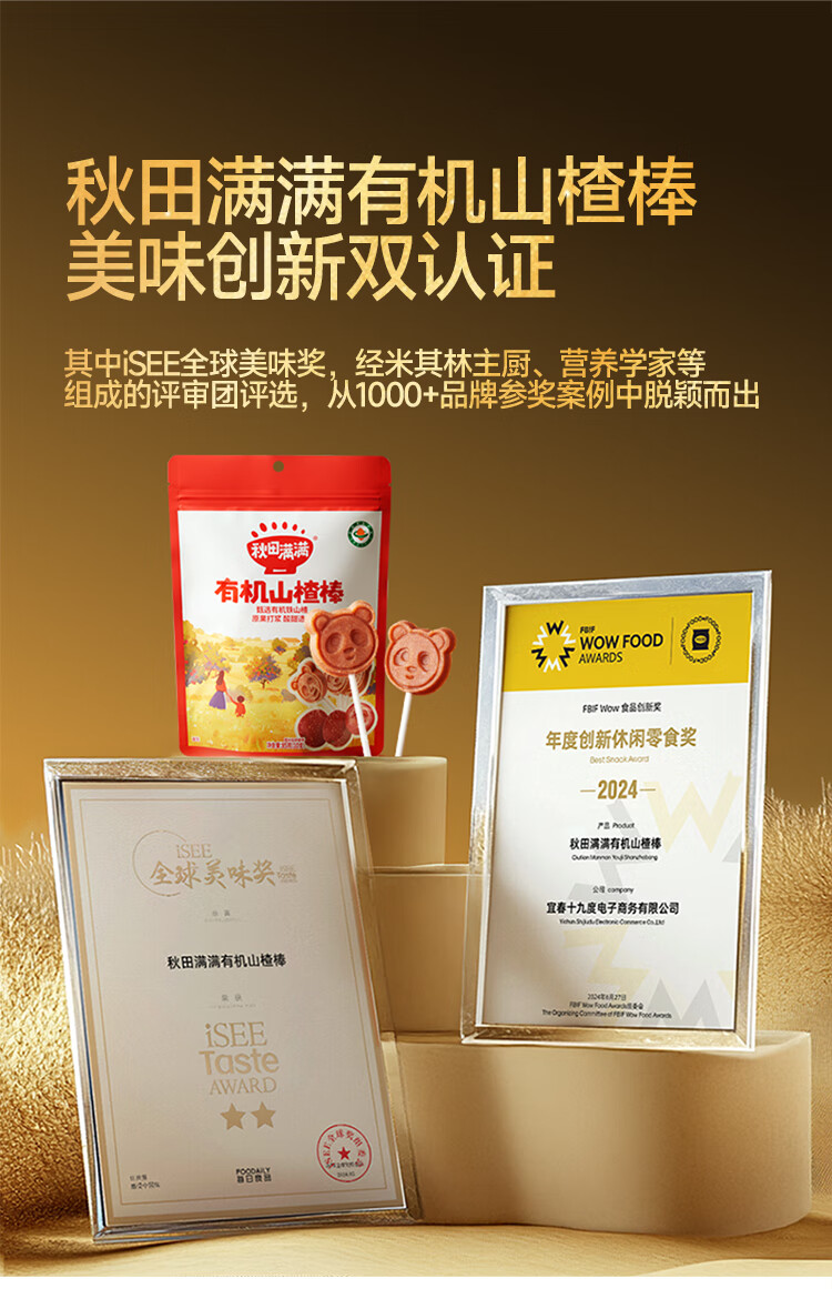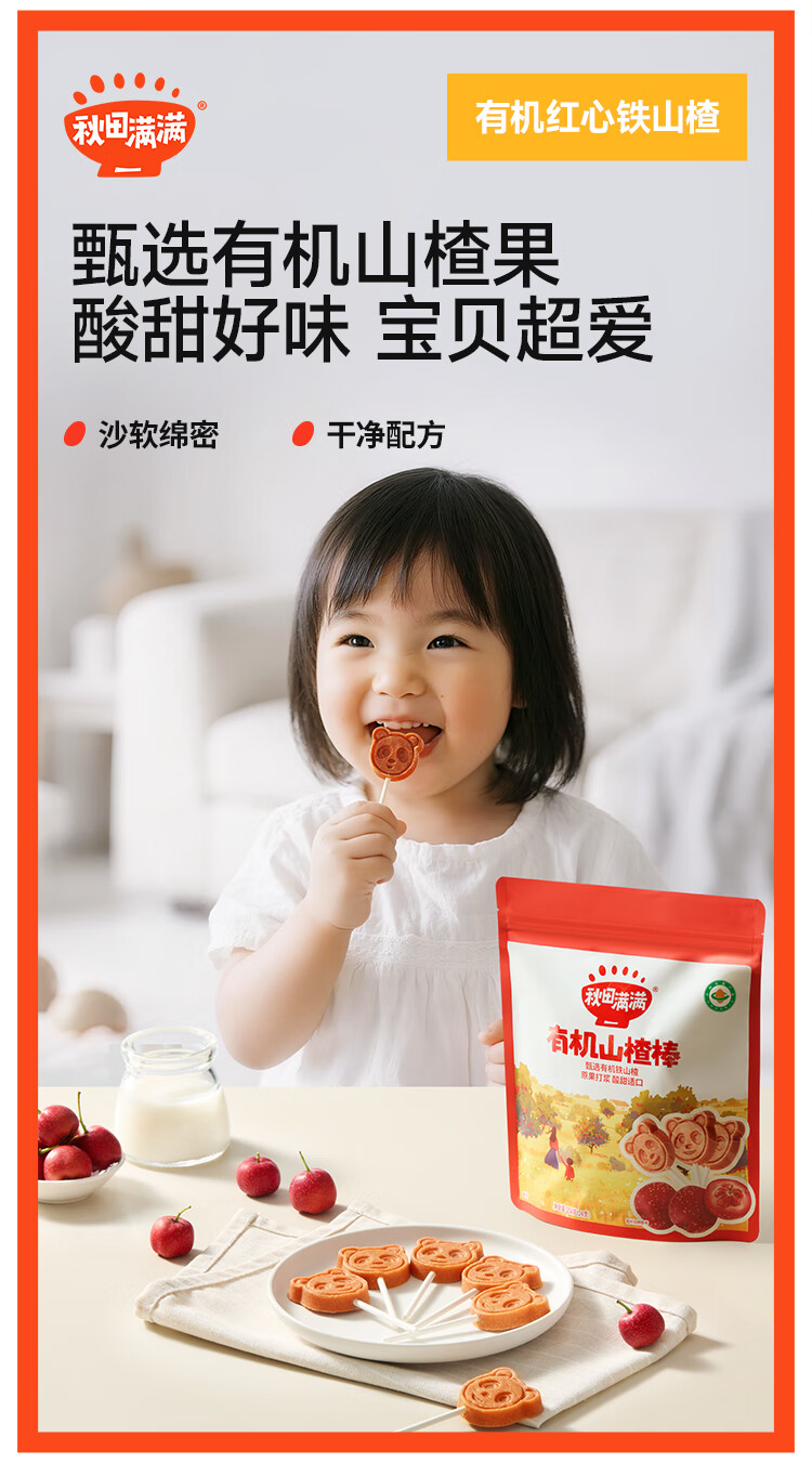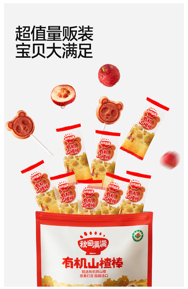 秋田满满 儿童零食有机山楂棒棒糖 享宝宝婴幼儿零食谱24支无添加色素204g