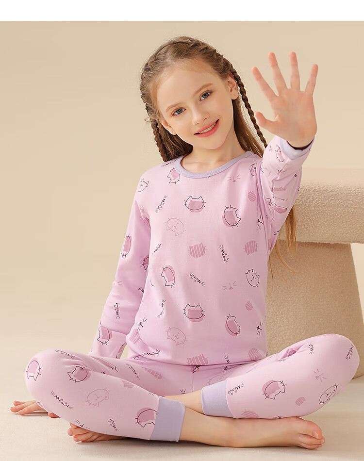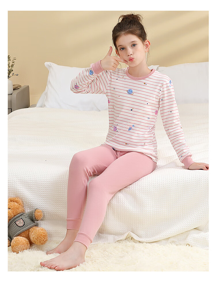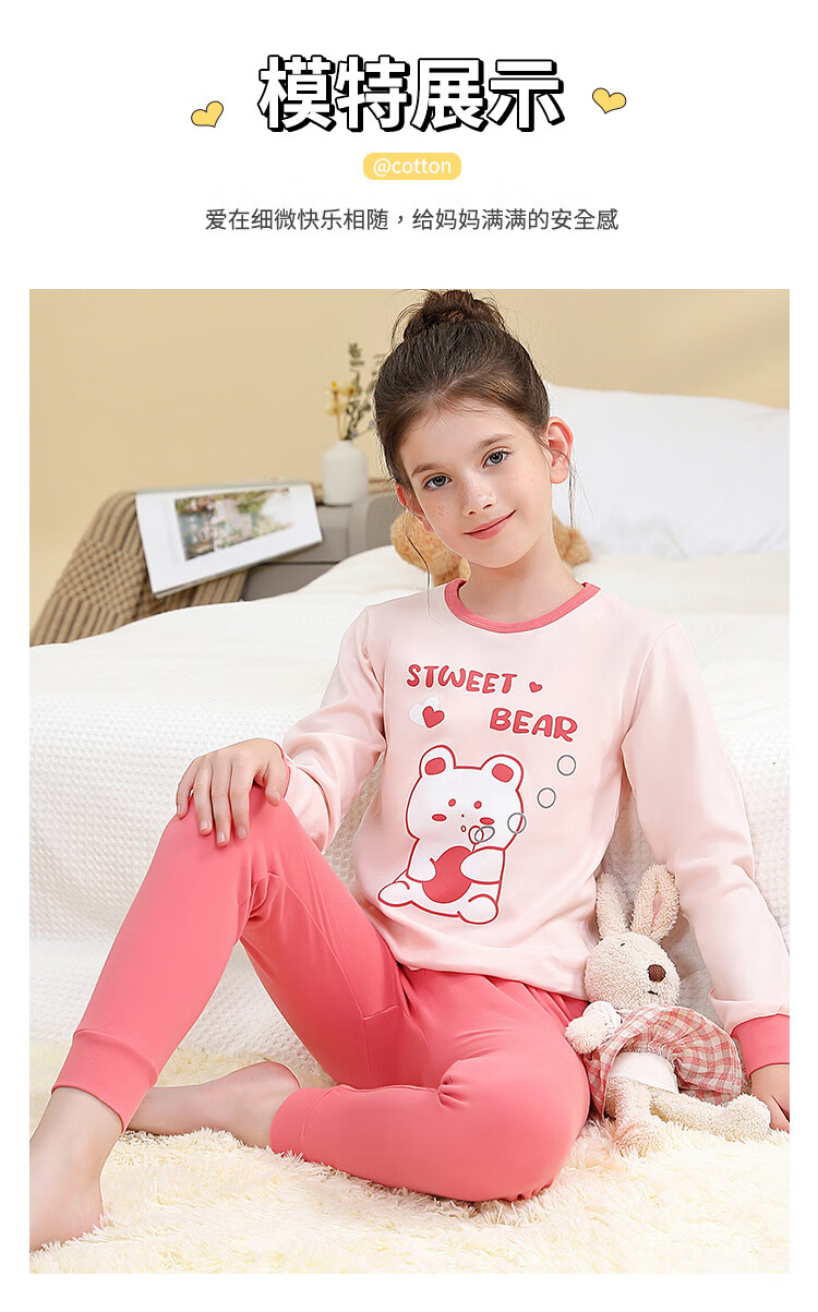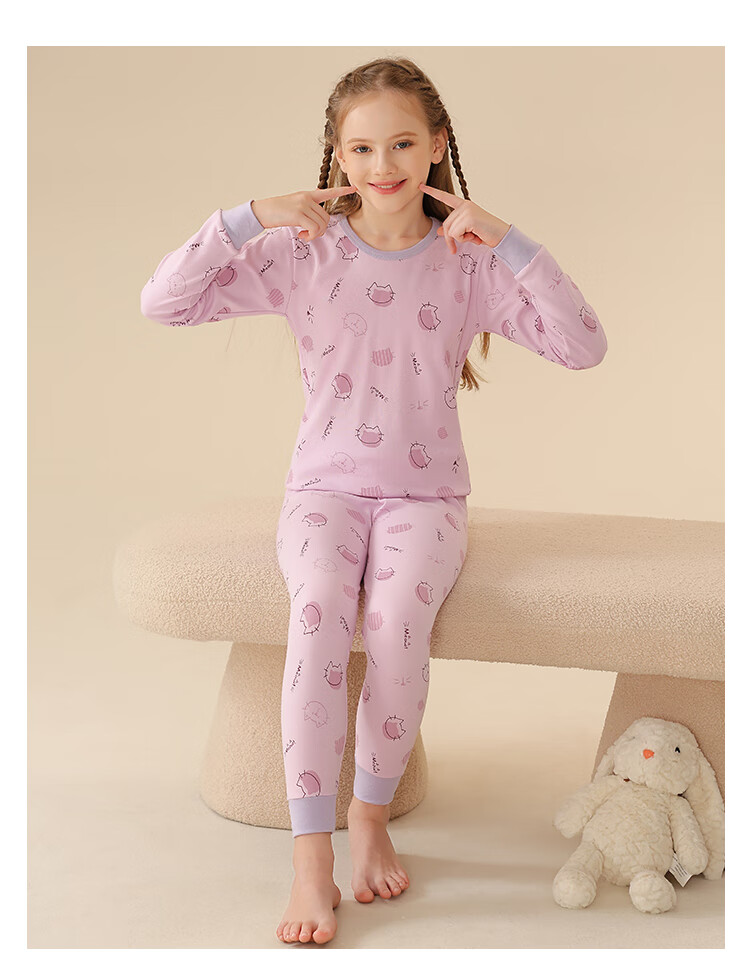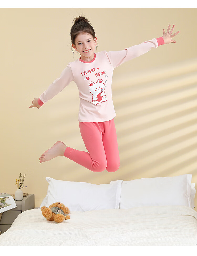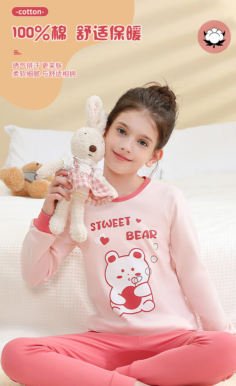 浪莎儿童内衣女童秋衣秋裤纯棉抑菌青少年学生宝宝秋冬保暖睡衣套装