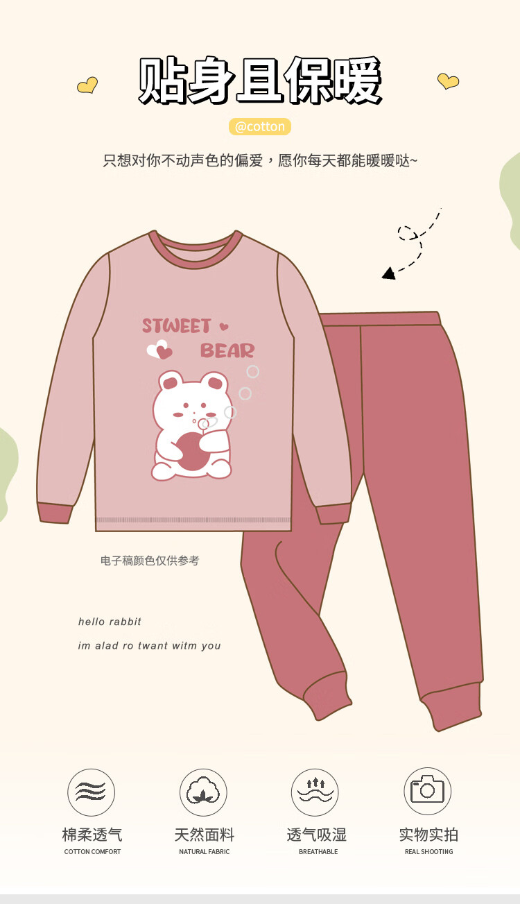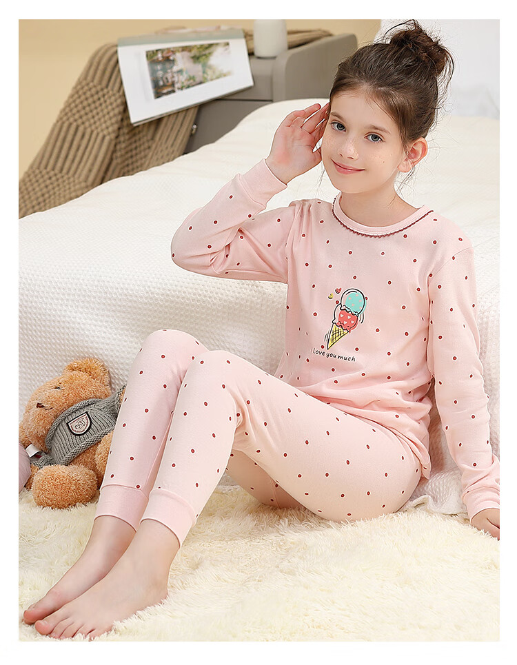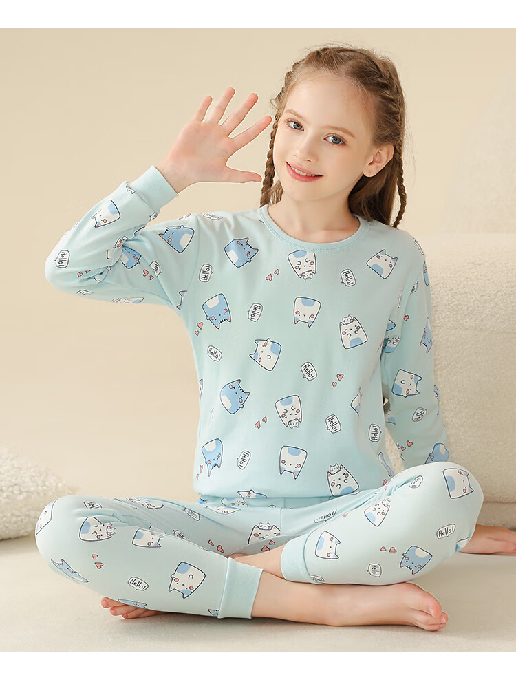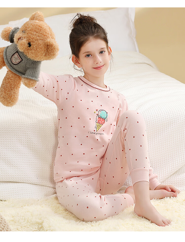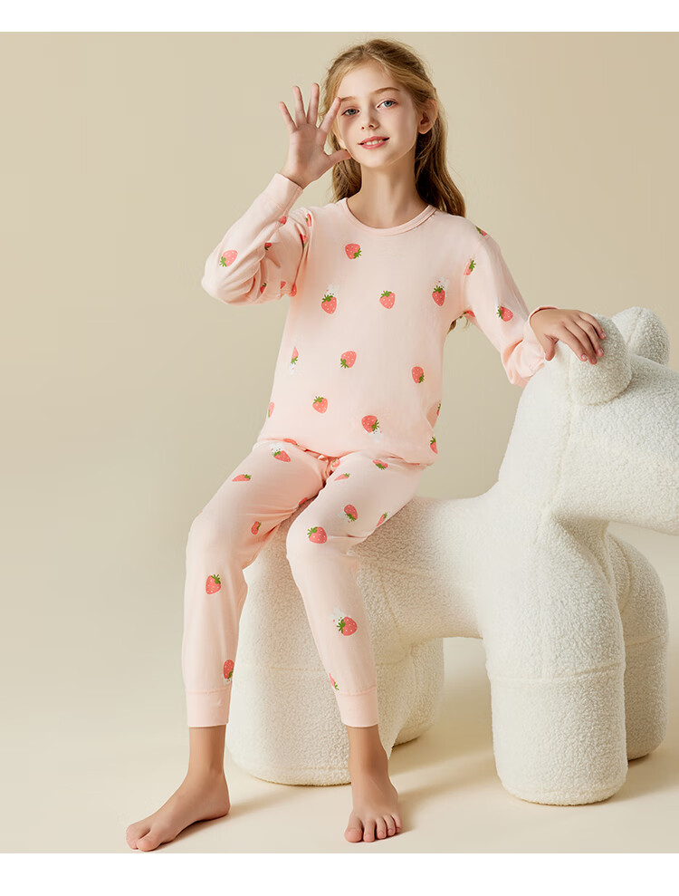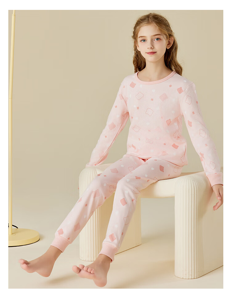 浪莎儿童内衣女童秋衣秋裤纯棉抑菌青少年学生宝宝秋冬保暖睡衣套装