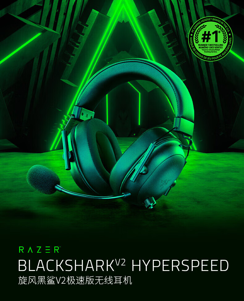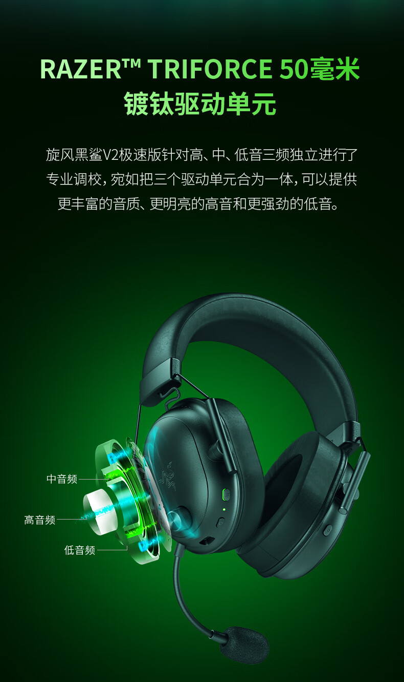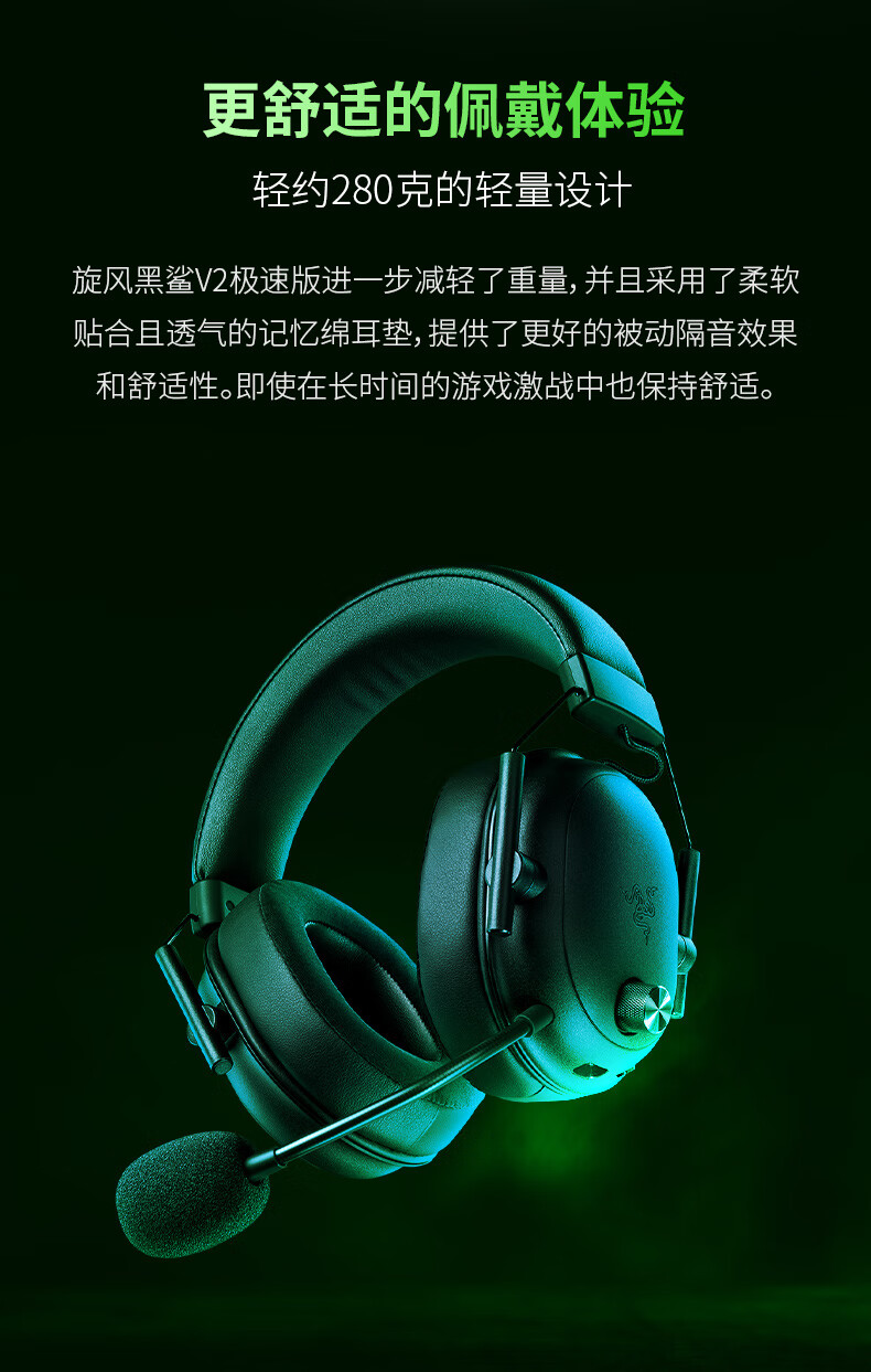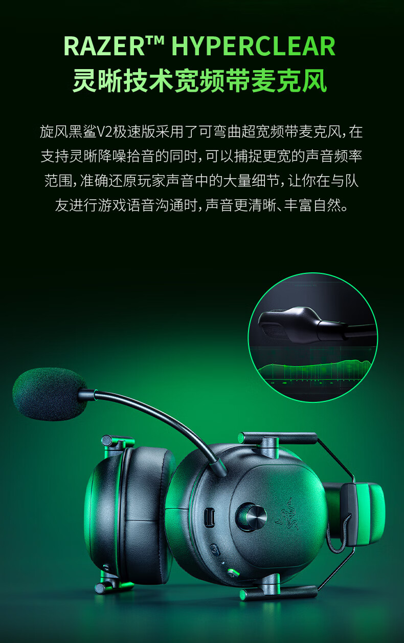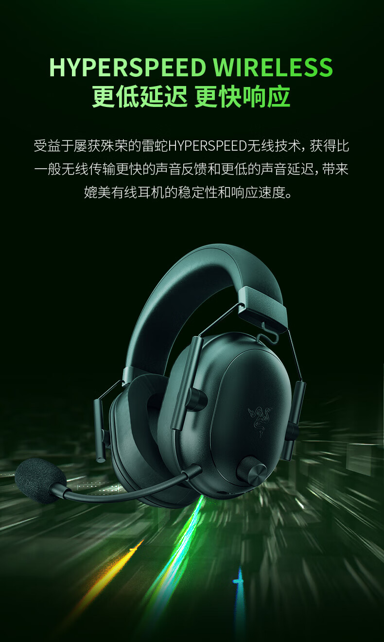 雷蛇(Razer)旋风黑鲨V2极速版 无线蓝牙头戴式电竞游戏耳机耳麦三模连接 被动降噪 三角洲EQ调节 CSGO 吃鸡
