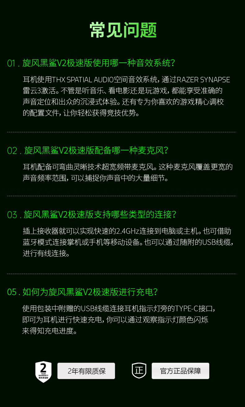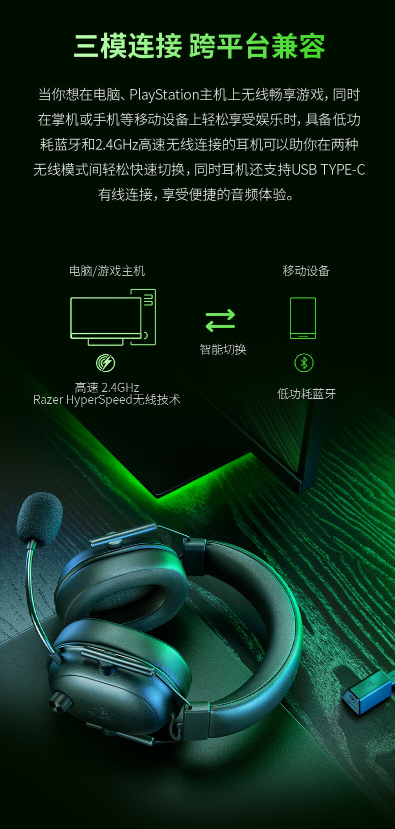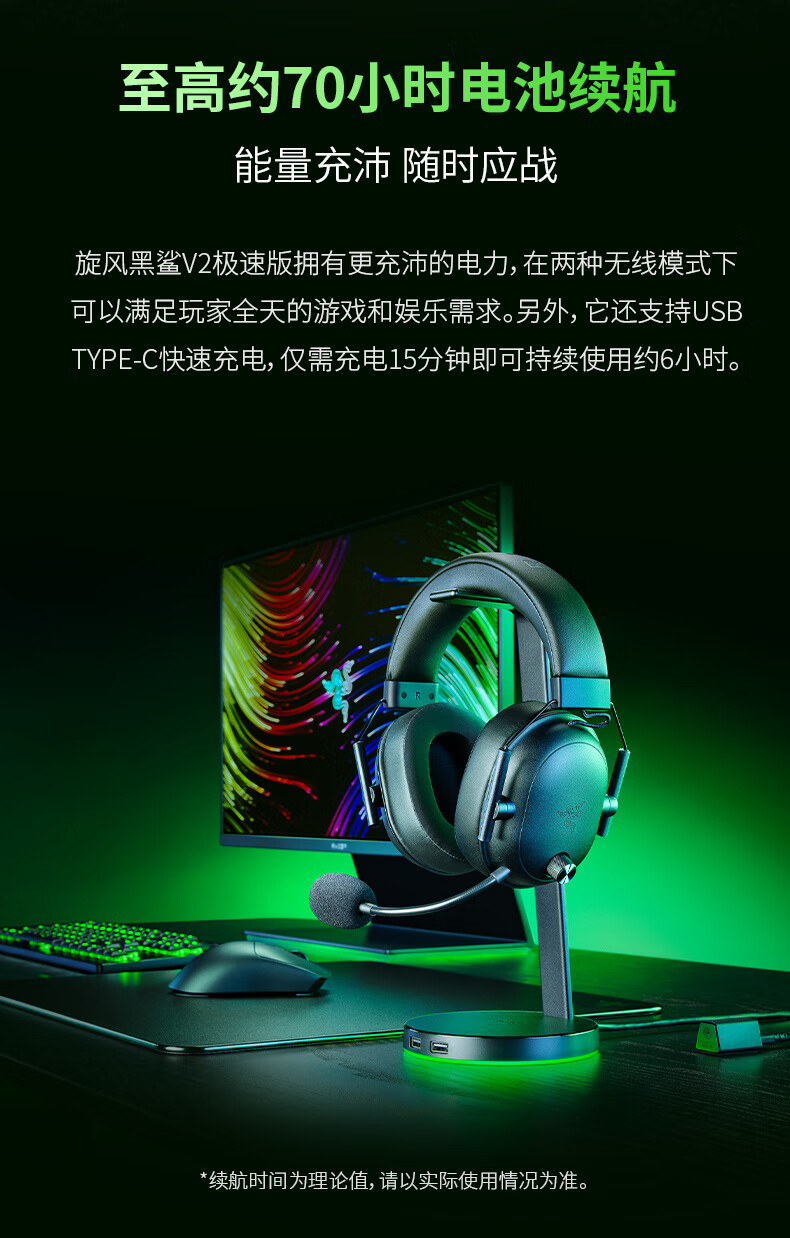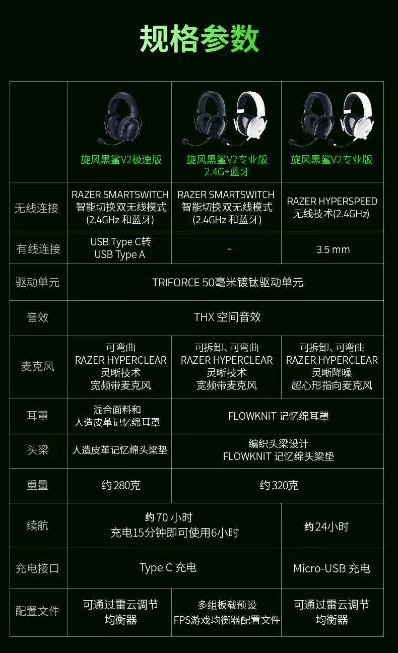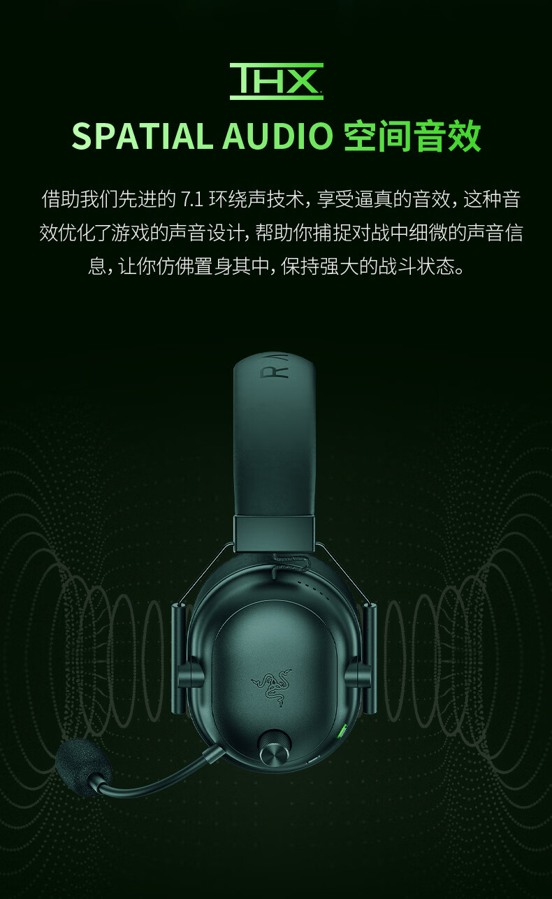 雷蛇(Razer)旋风黑鲨V2极速版 无线蓝牙头戴式电竞游戏耳机耳麦三模连接 被动降噪 三角洲EQ调节 CSGO 吃鸡