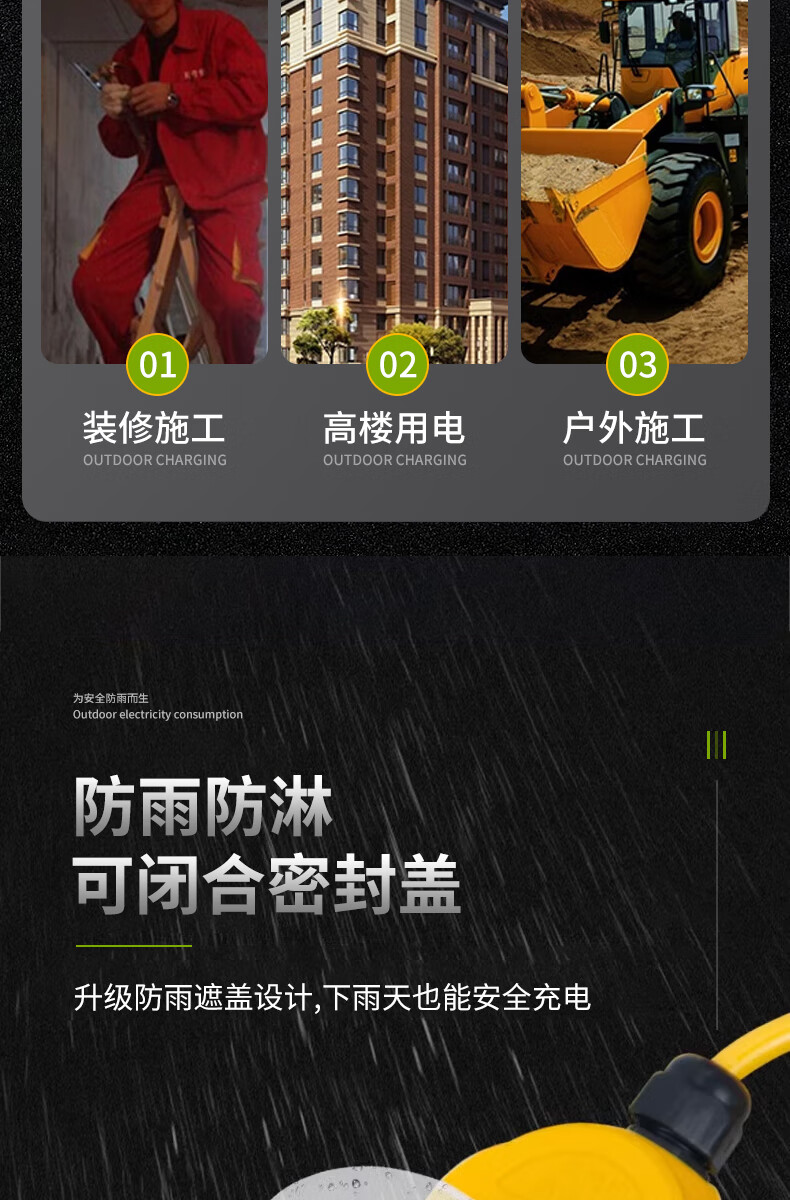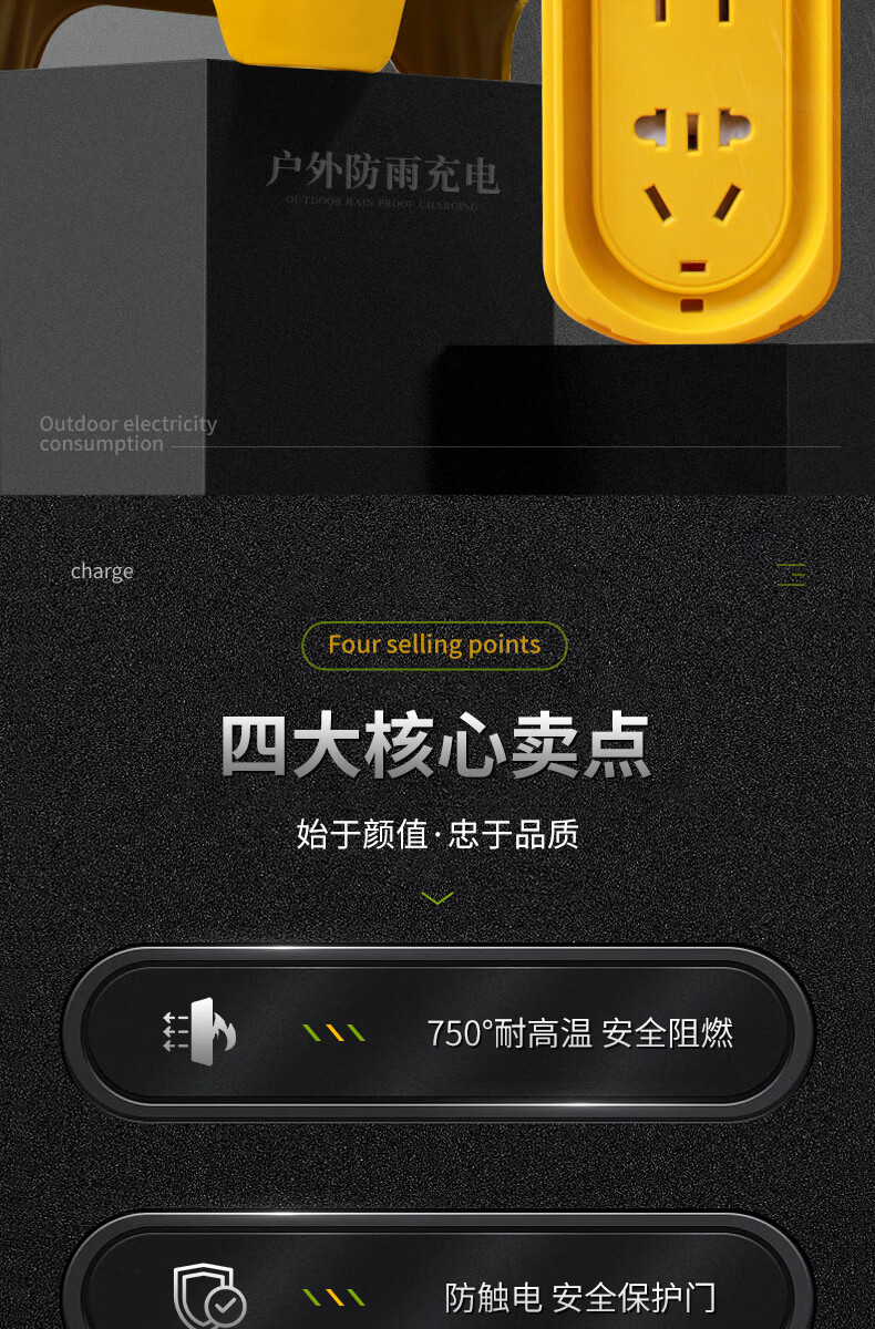 阿乐乐可【国标20米防水款】延长线户外多功能插座防水插排/排插/电源线/延长线/2500W防雨防尘/防晒阻燃