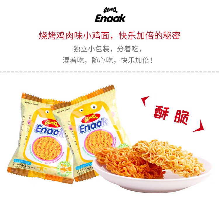 GEMEZ印尼进口小鸡干脆面 方便面 干吃面休闲零食 烧烤鸡肉味 4包入