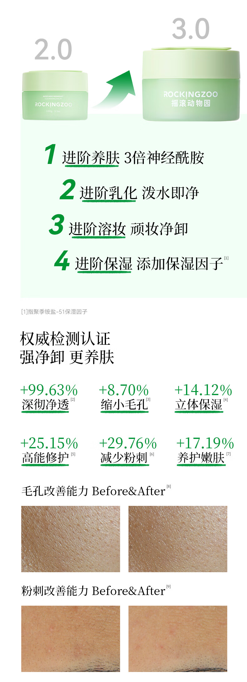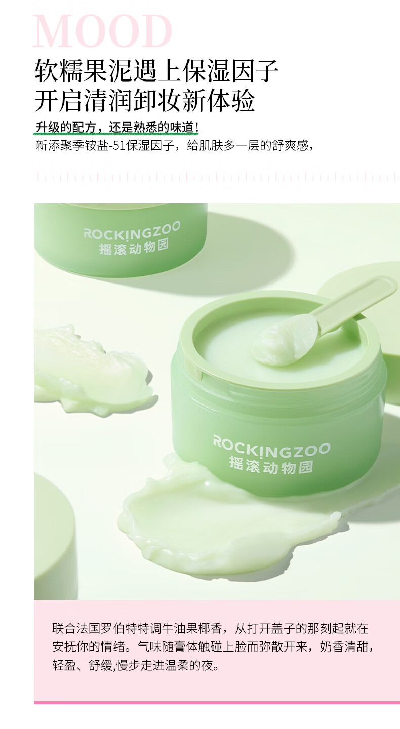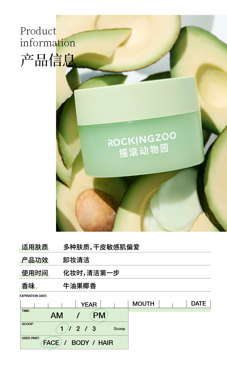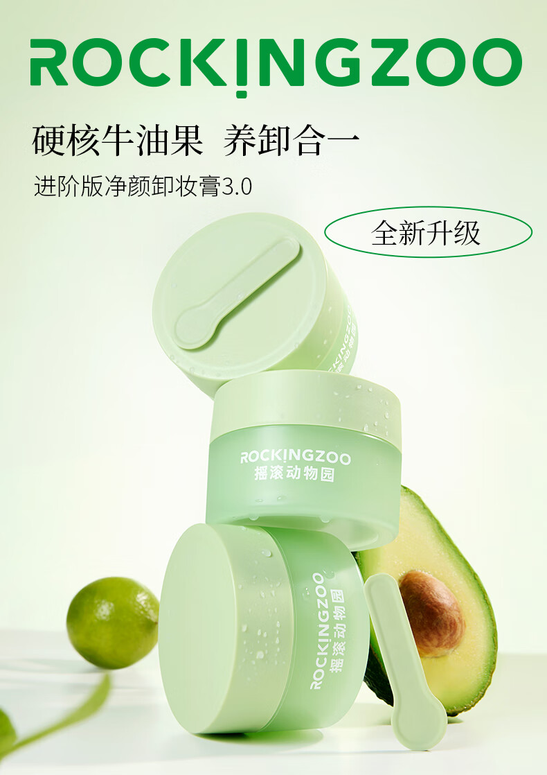 摇滚动物园牛油果卸妆膏乳化快清洁温和眼唇水润不紧绷易洗油皮节日送礼女 净澈清颜卸妆膏 100ml *2