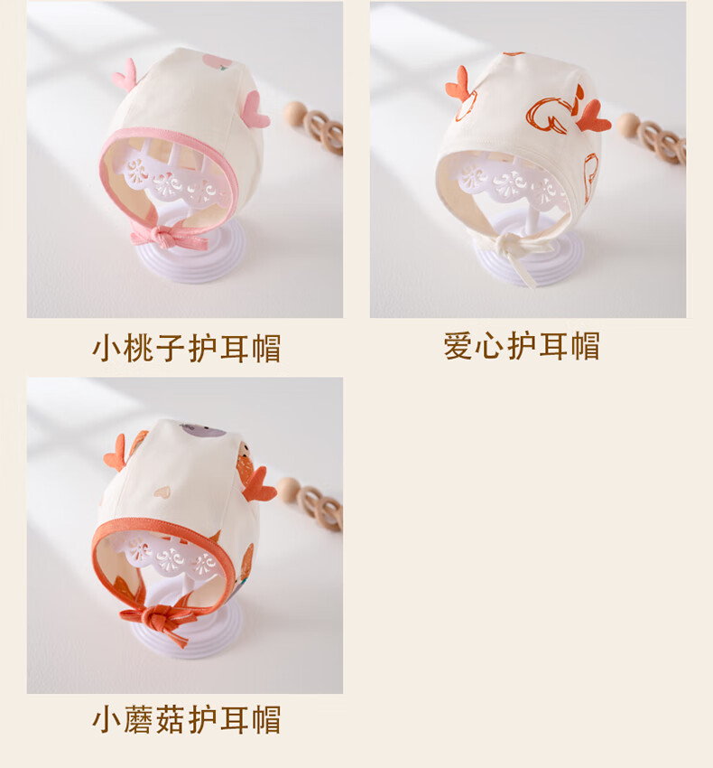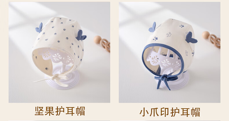 贝肽斯婴儿帽子护耳帽春秋季男女宝宝可爱新生婴幼儿胎帽防风帽 坚果护耳 0-10个月(帽围36-45cm)建议根据宝宝头围来选择