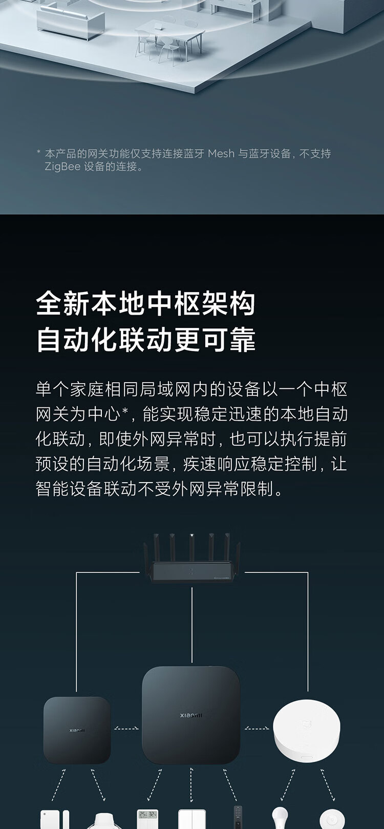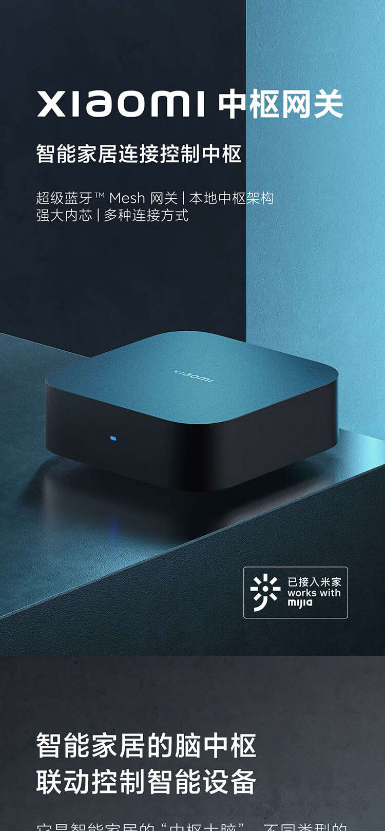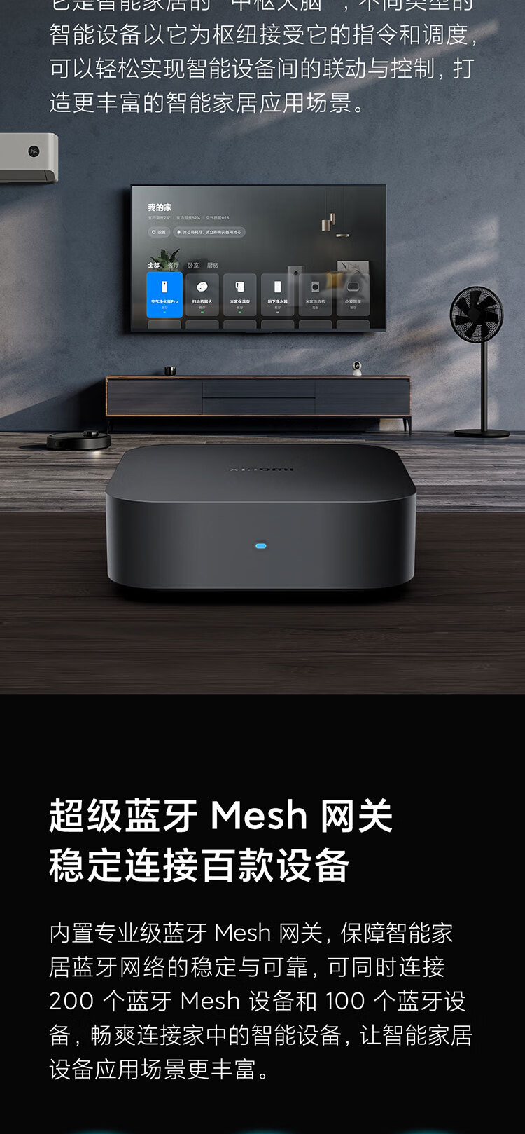 小米米家智能中枢网关 智能联动 无线控制 蓝牙Mesh网关 毫秒级响应