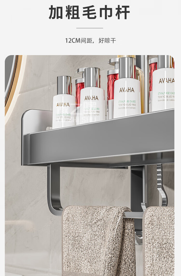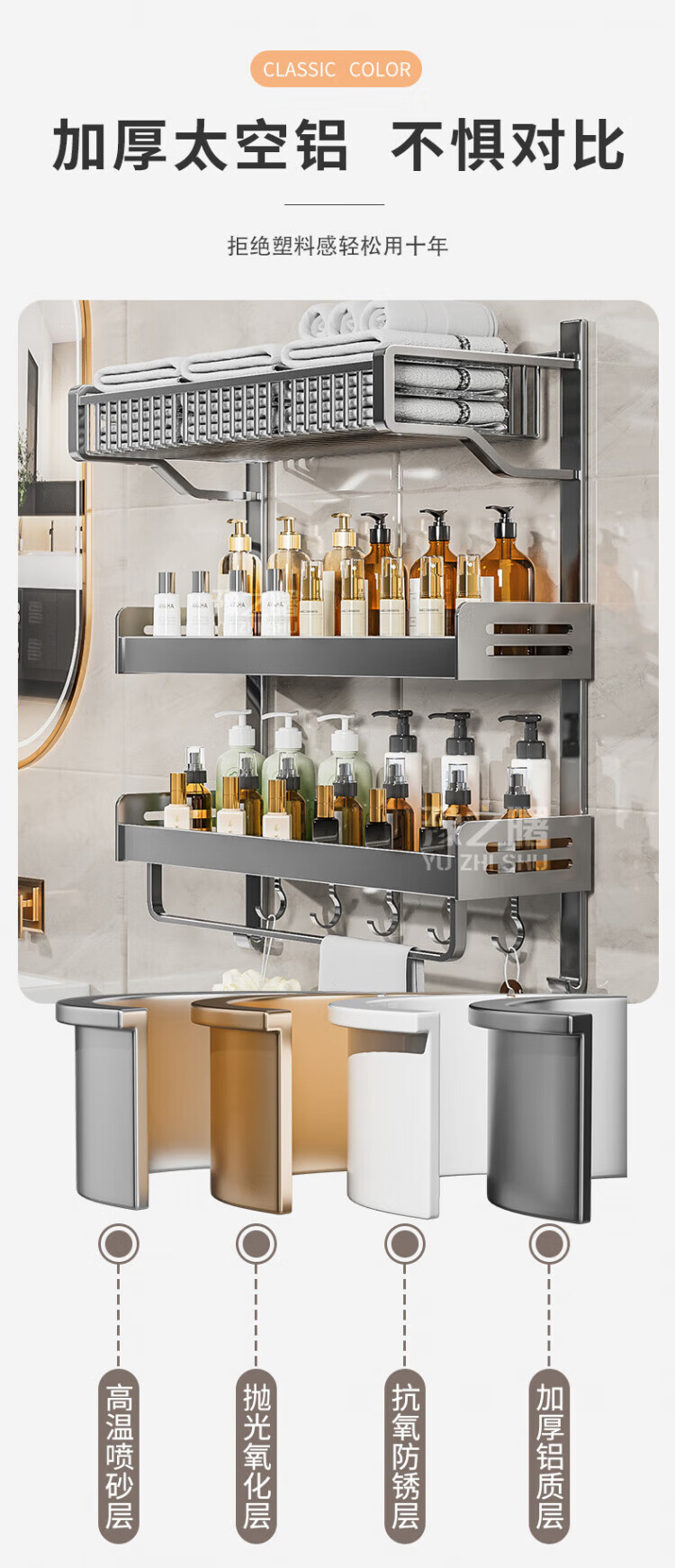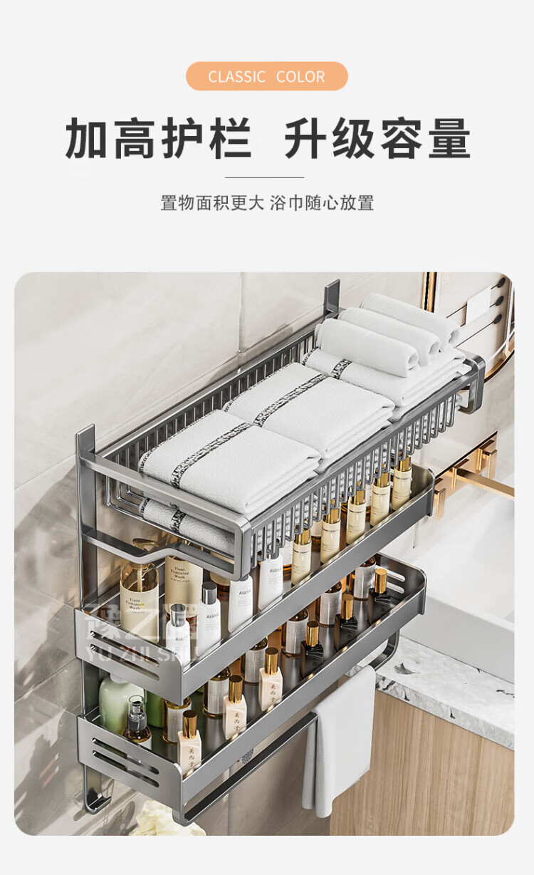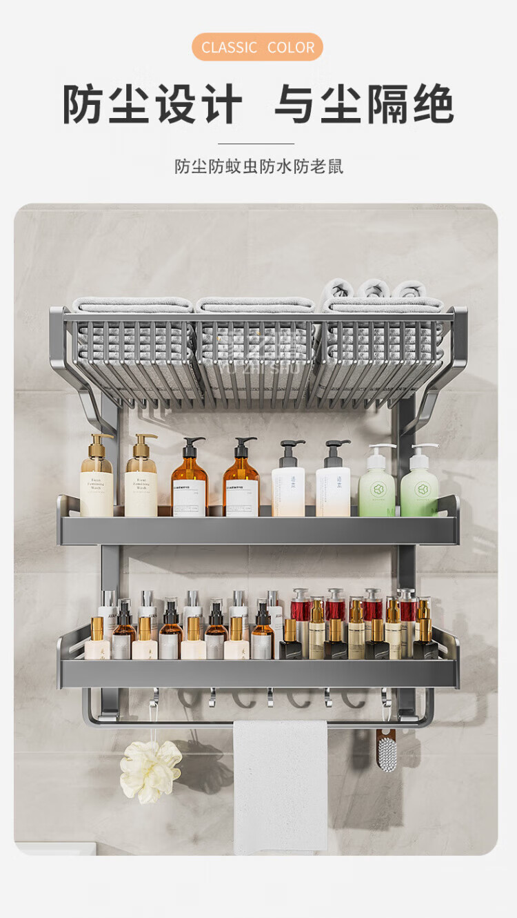 WCZ德国卫生间毛巾架置物架一体浴室免打孔厕所枪灰浴巾架太空铝卫浴 枪灰U型(网篮浴巾架)40CM