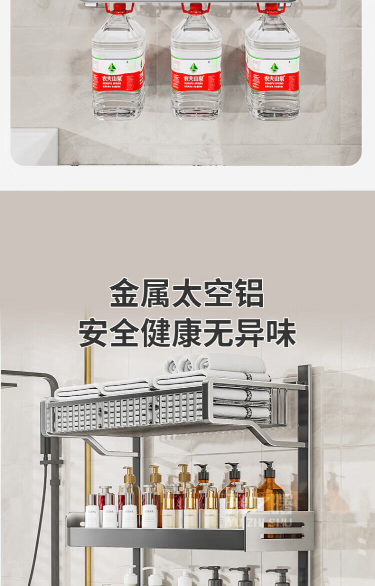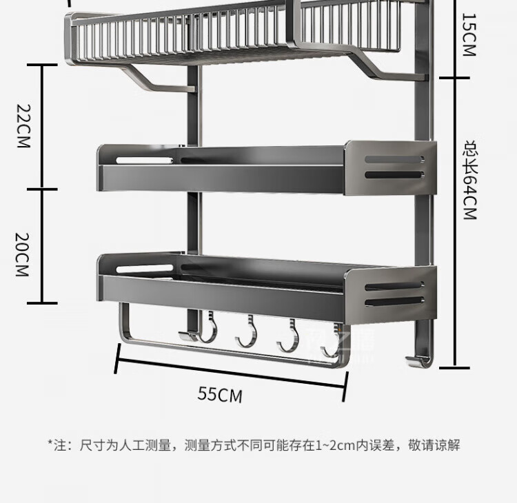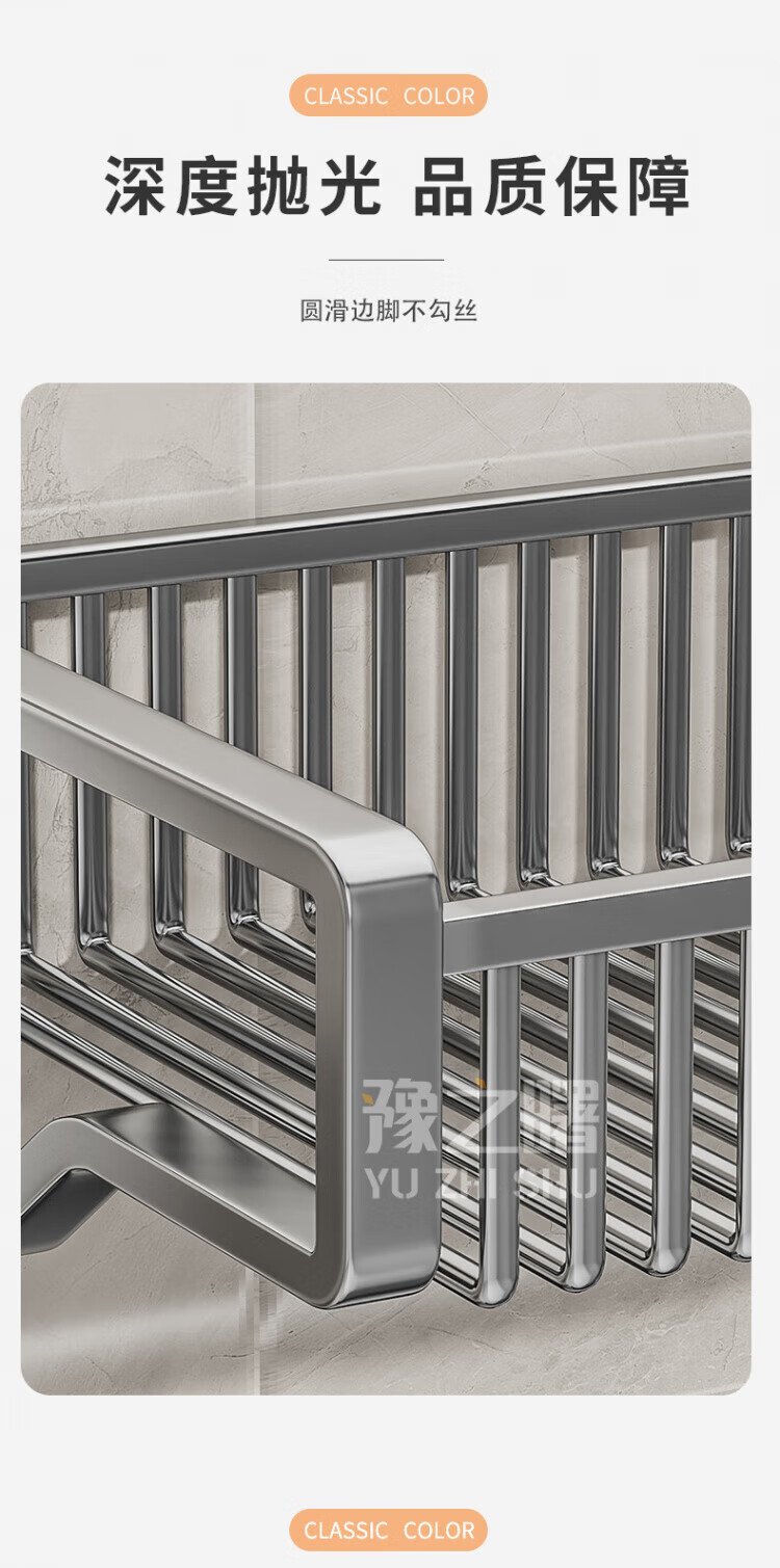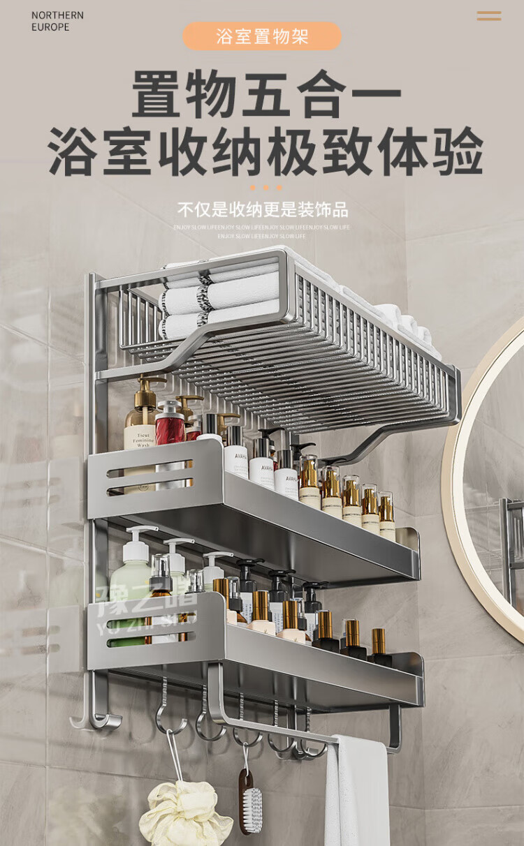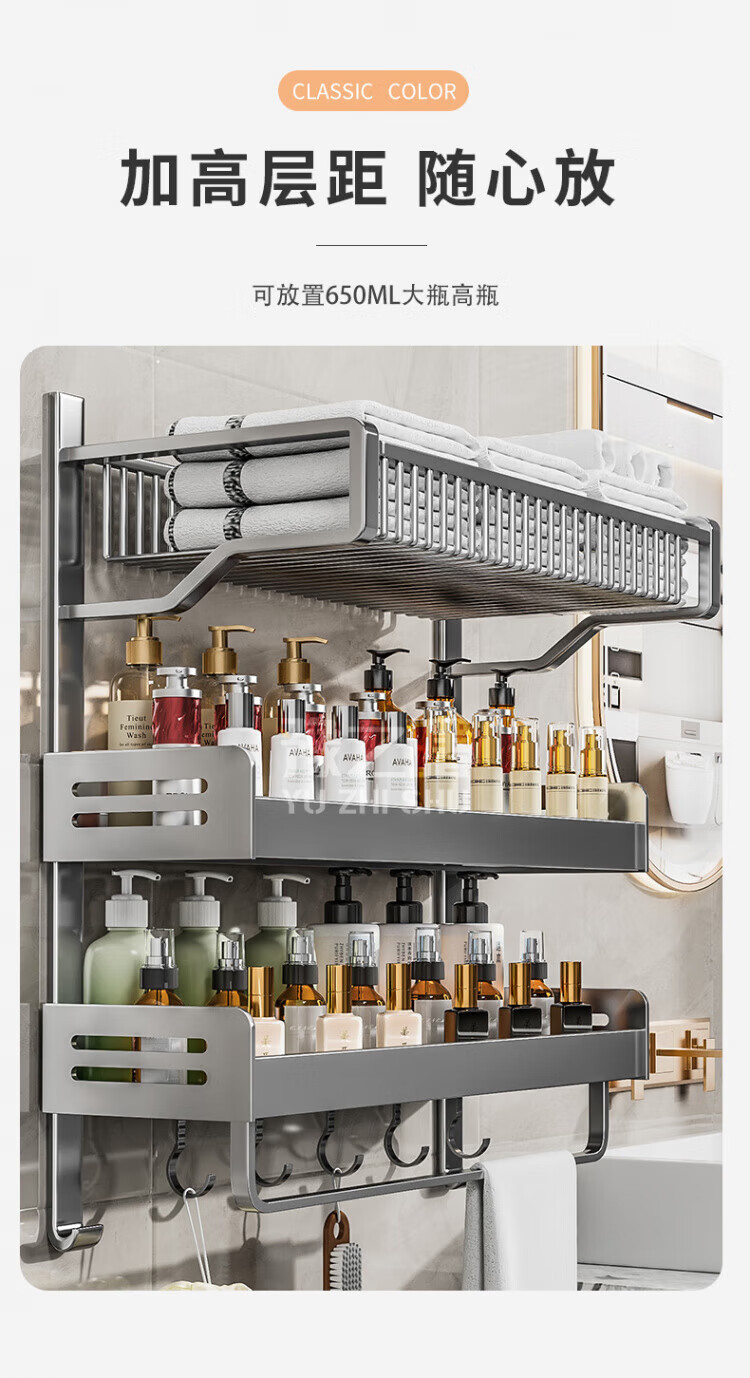 WCZ德国卫生间毛巾架置物架一体浴室免打孔厕所枪灰浴巾架太空铝卫浴 枪灰U型(网篮浴巾架)40CM