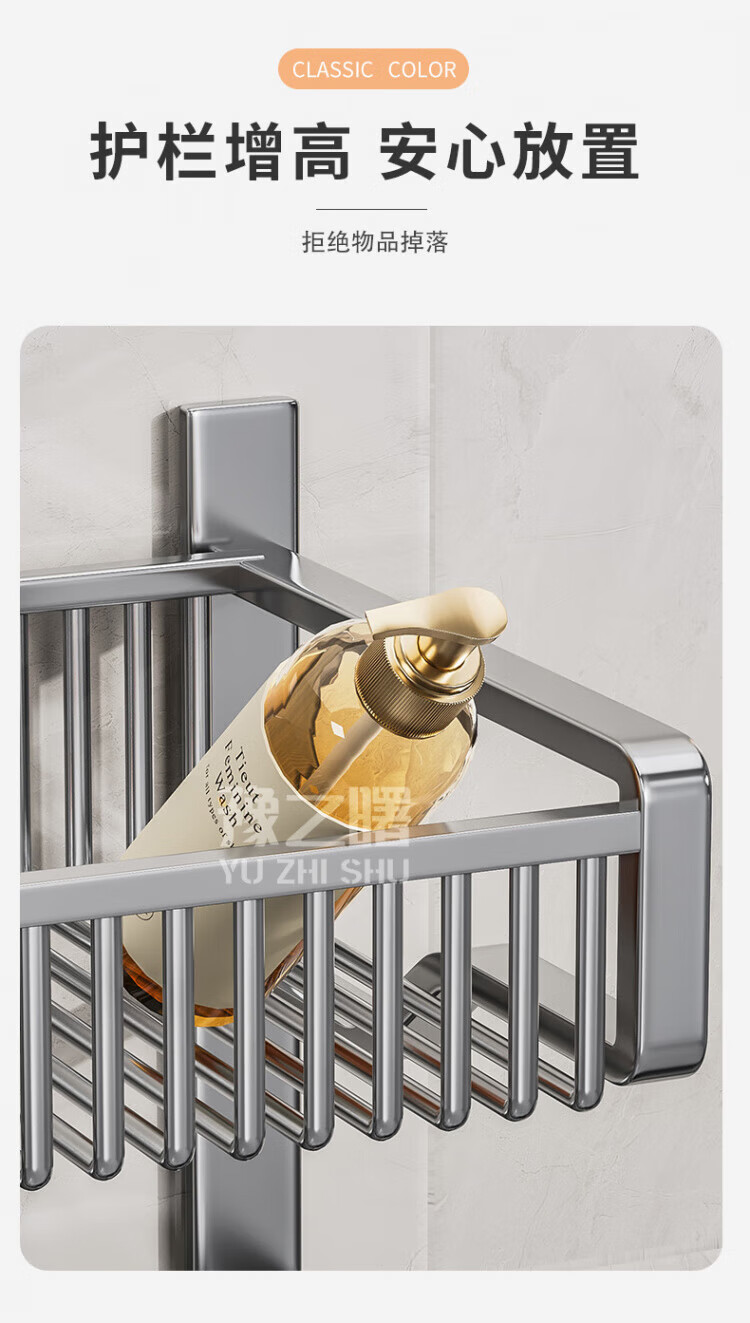 四季沐歌(MICOE)浴室卫生间置物架厕所墙角架太空铝三角篮厨房壁挂收纳篮免打孔