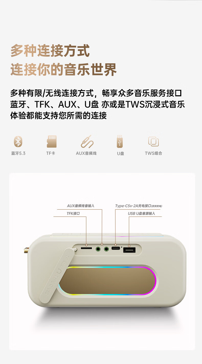 萨勒芬妮【K歌神器丨迷你ktv】麦克风音响一体式无线话筒唱歌蓝牙音箱家庭套装小音响自带声卡便携户外智能 米白色【HIFI-9D环绕】双麦 【小体积/大爆发/灯光秀】