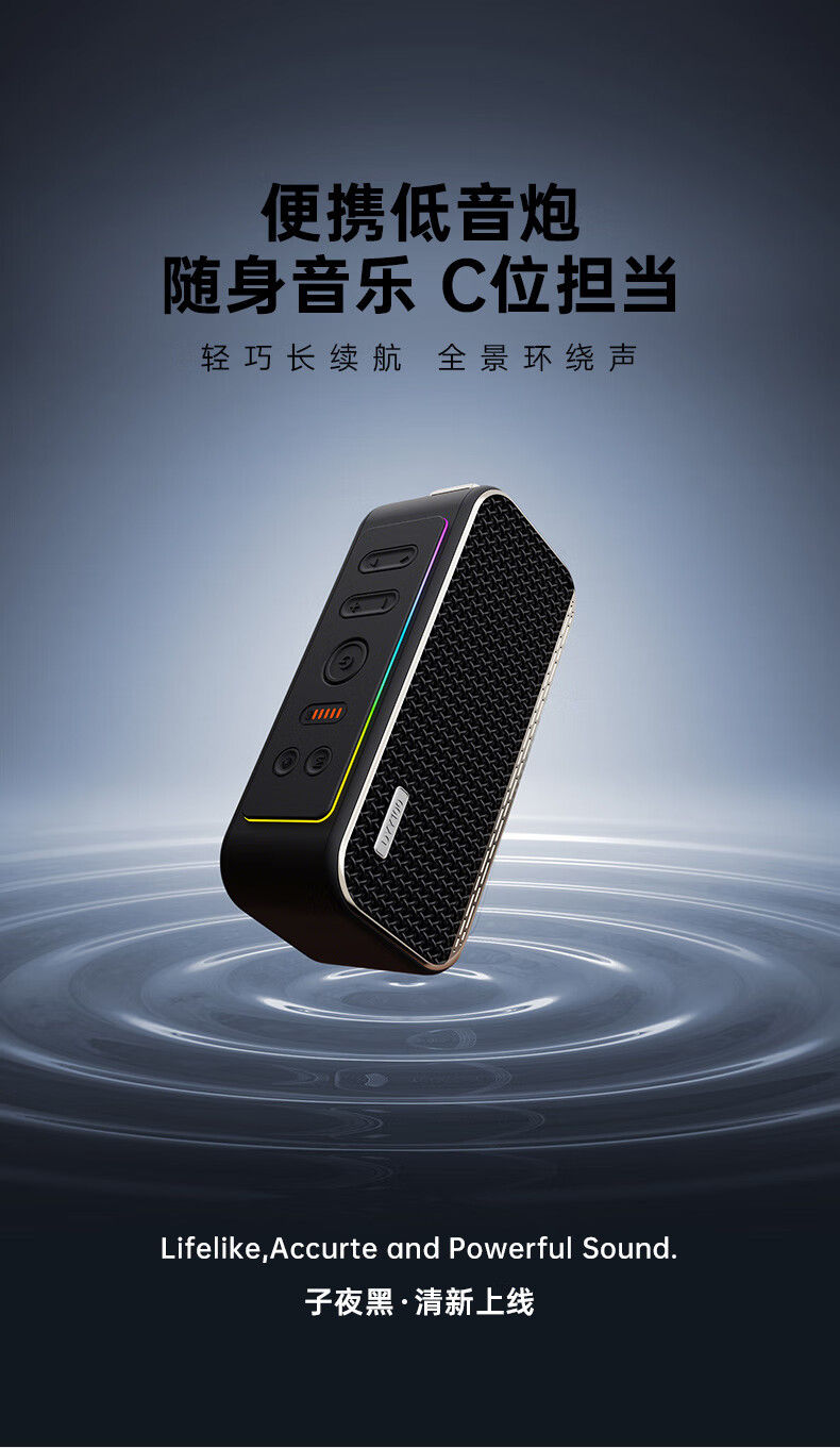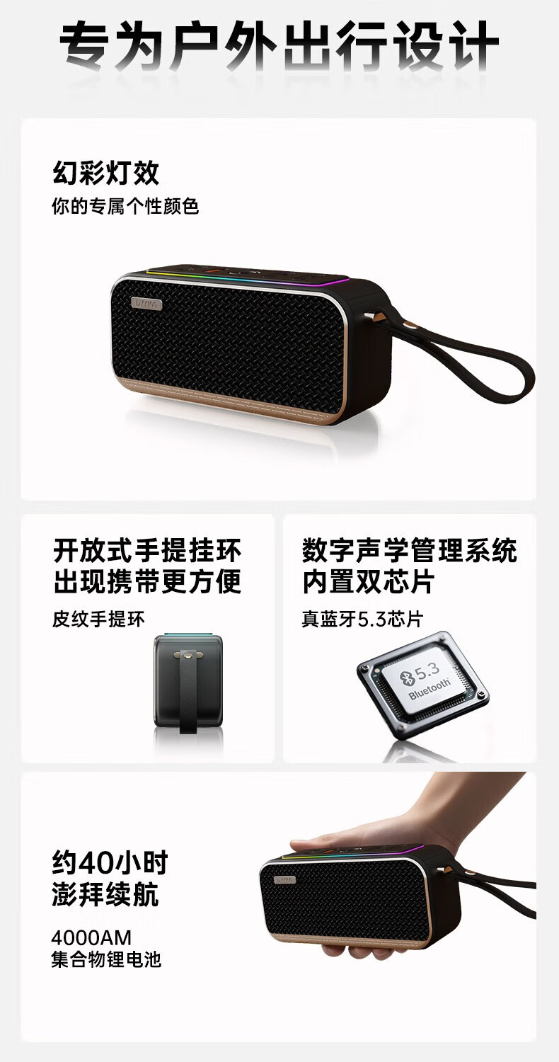 第一眼柏林之声重低音蓝牙音箱高音质无线音响有线桌面台式电脑家用低音炮笔记本插卡大功率户外男生礼物 深黑色【标准版】4000mAh电池+蓝牙5.3 【3单元重低音+幻彩节奏灯】