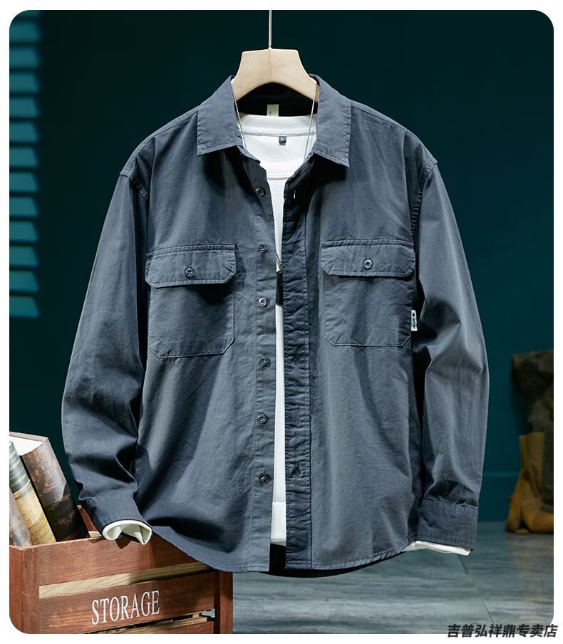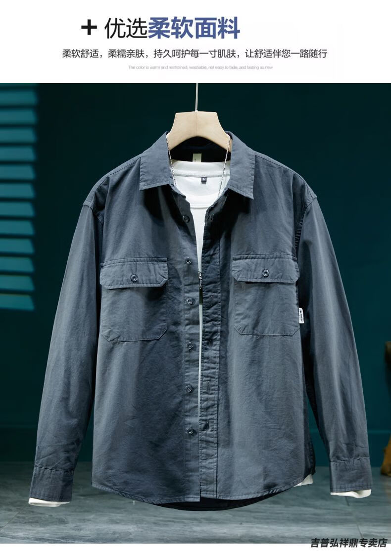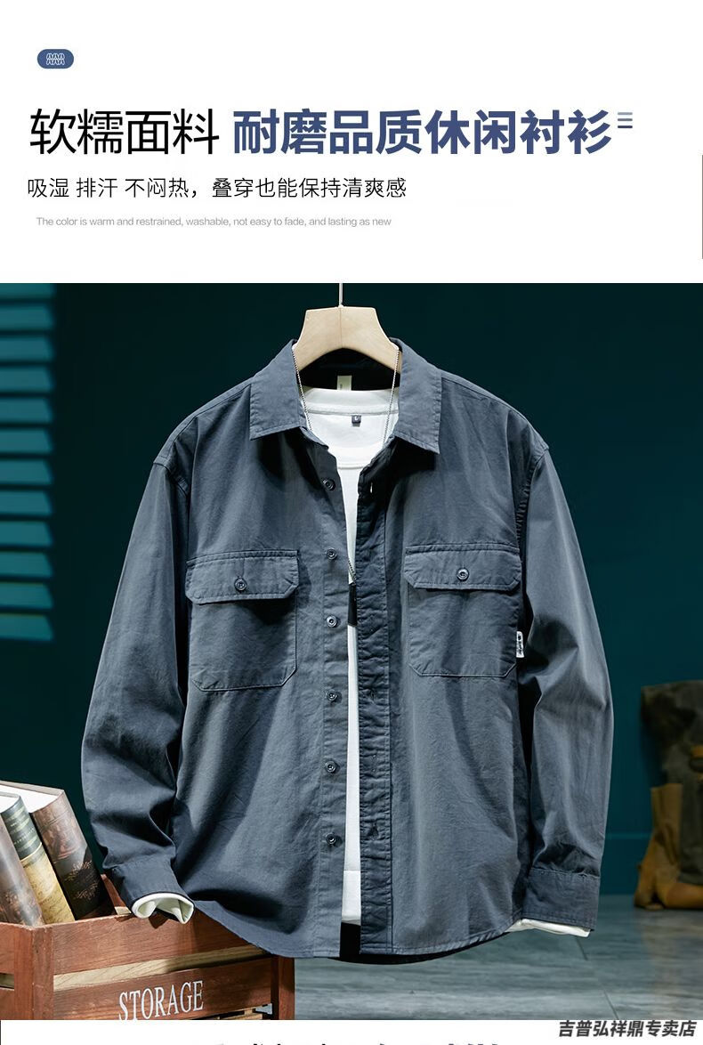JEEP SPIRIT防晒透气棉|纯棉工装衬衫男士2025春秋季新款潮牌宽松外套 白色 XL 140-160斤