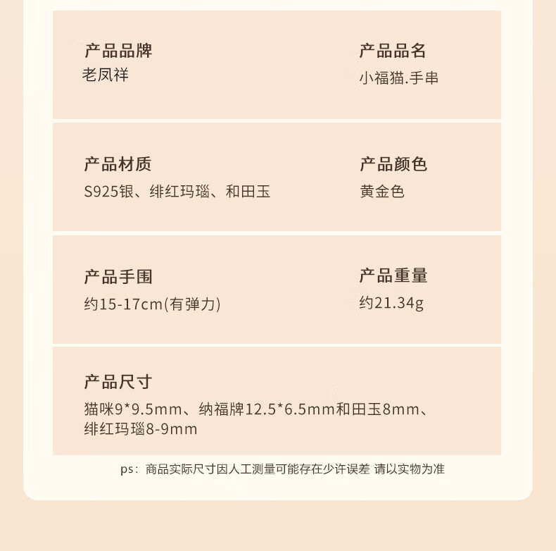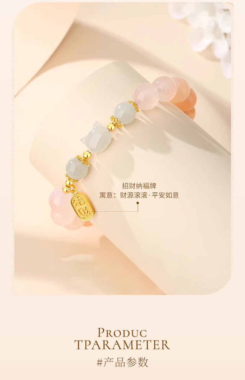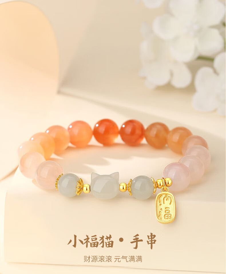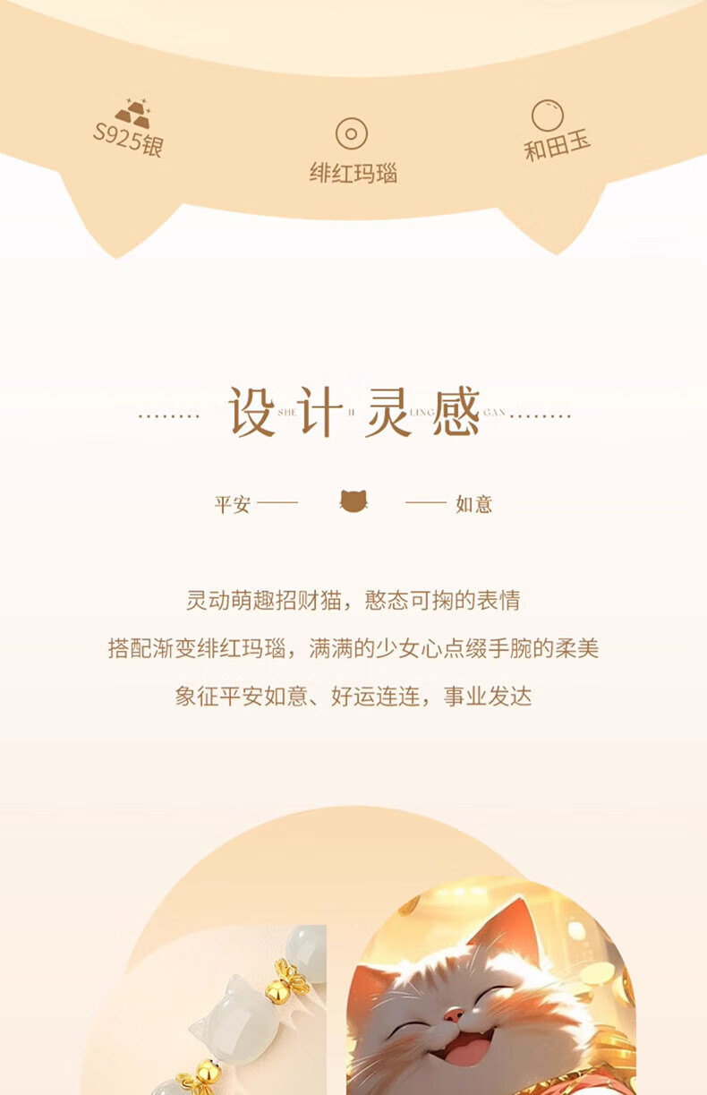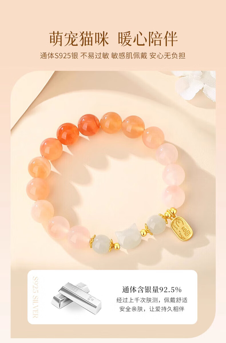 老凤祥S925银手链女猫咪和田玉手串生日礼物女生送女朋友老婆高级实用 L-S90小福猫和田玉玛瑙手串
