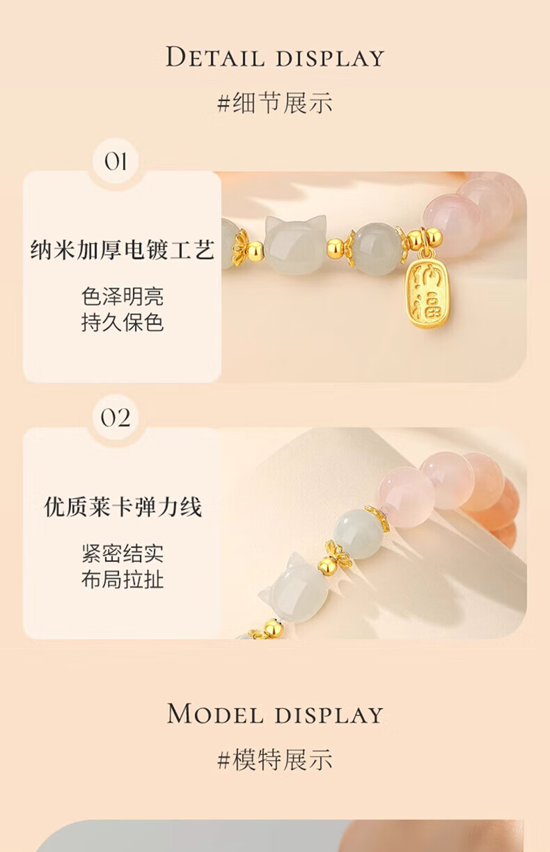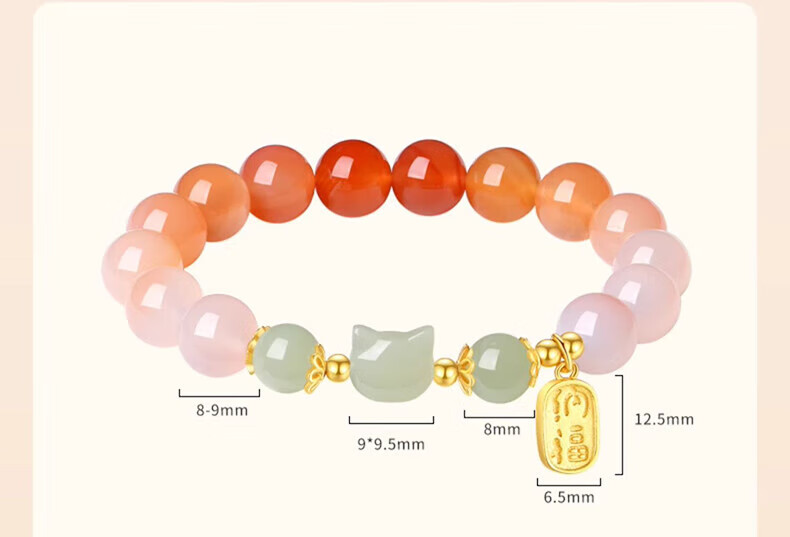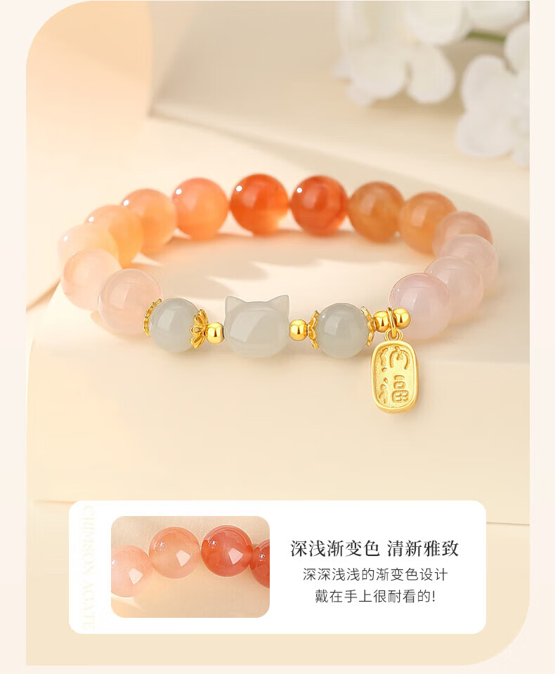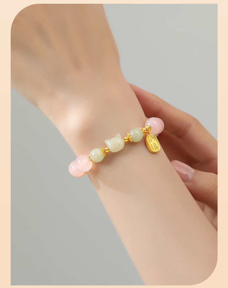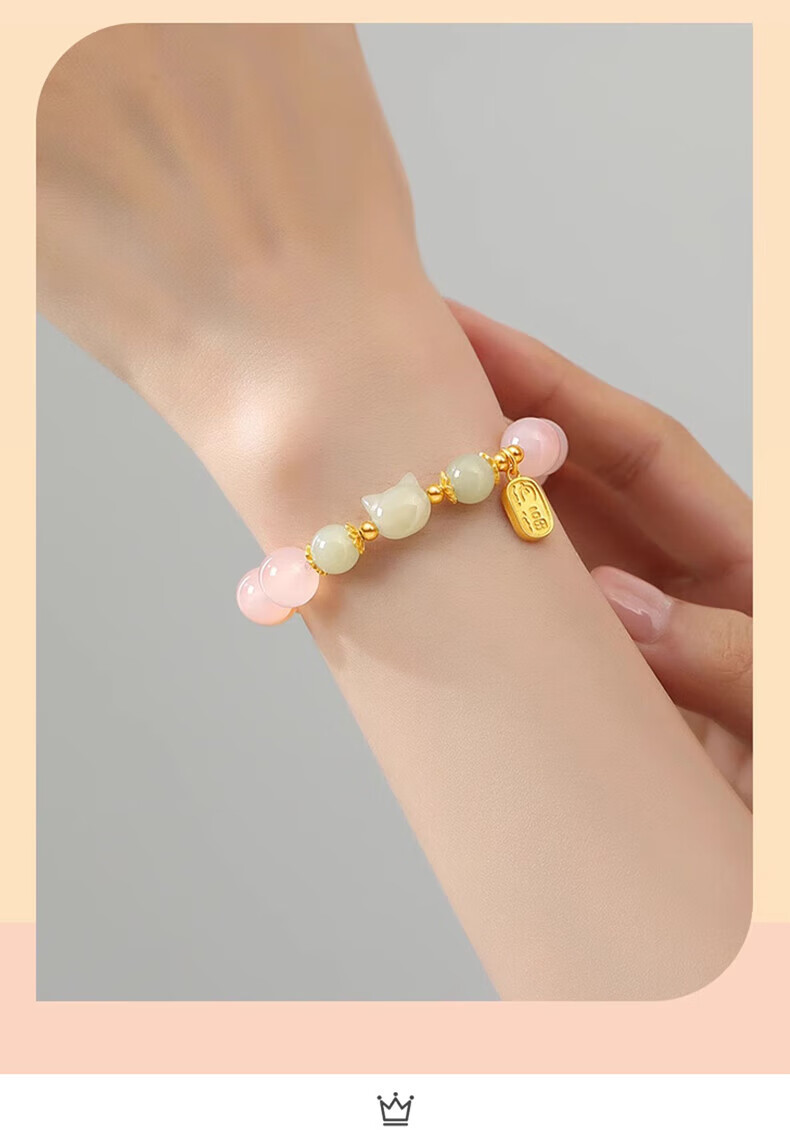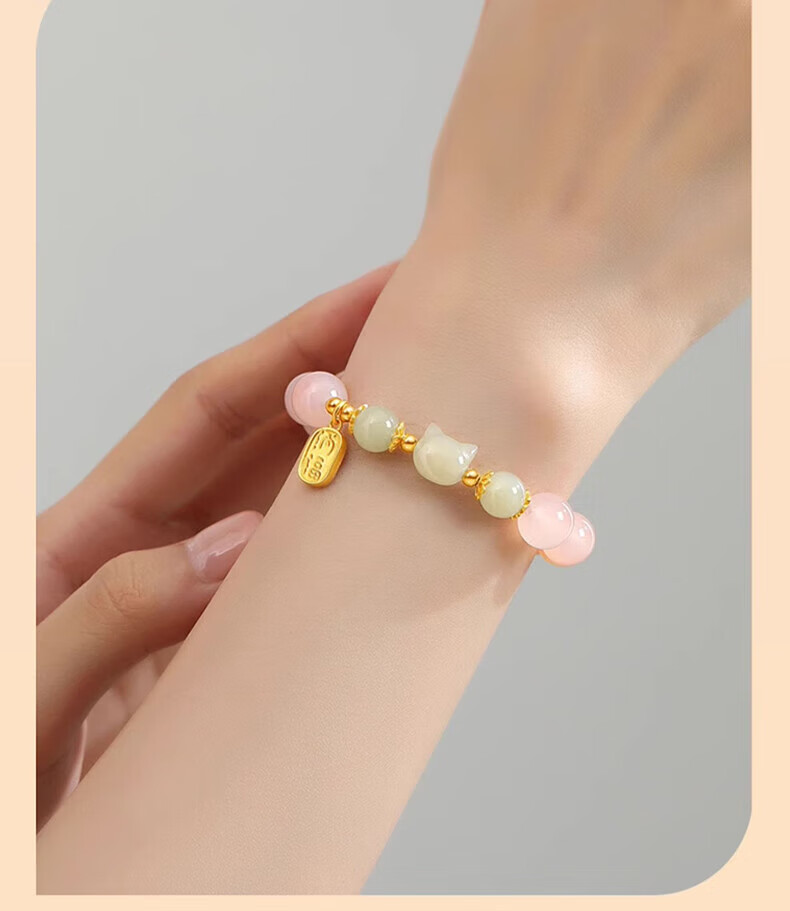 老凤祥S925银手链女猫咪和田玉手串生日礼物女生送女朋友老婆高级实用 L-S90小福猫和田玉玛瑙手串