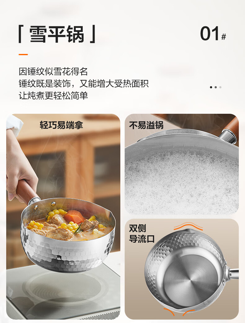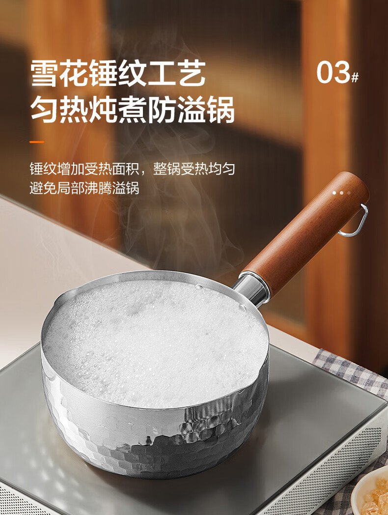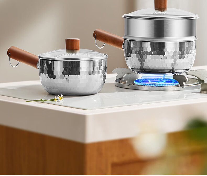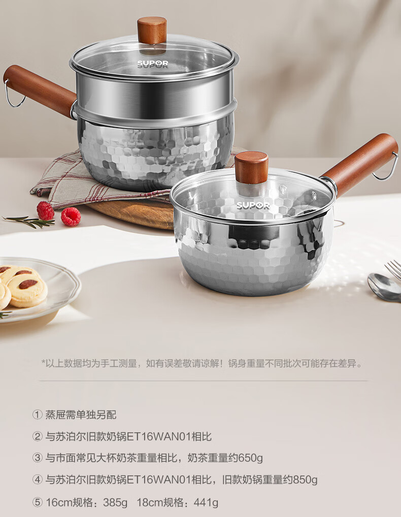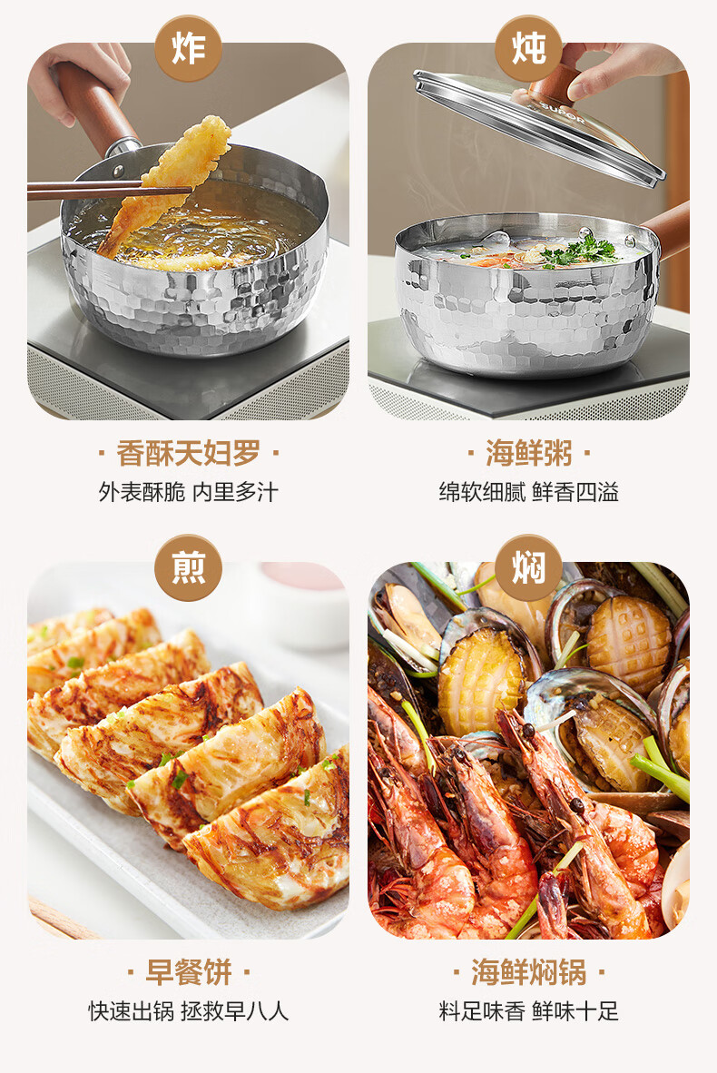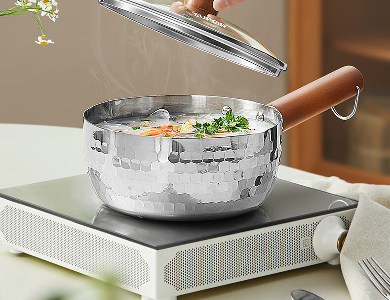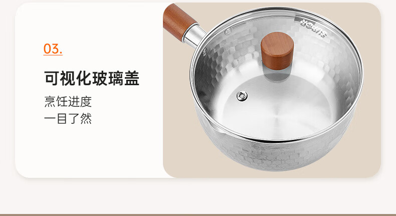 苏泊尔雪平锅锤纹不锈钢小奶锅 煮面汤锅宝宝辅食锅16cm ET16ABCS01