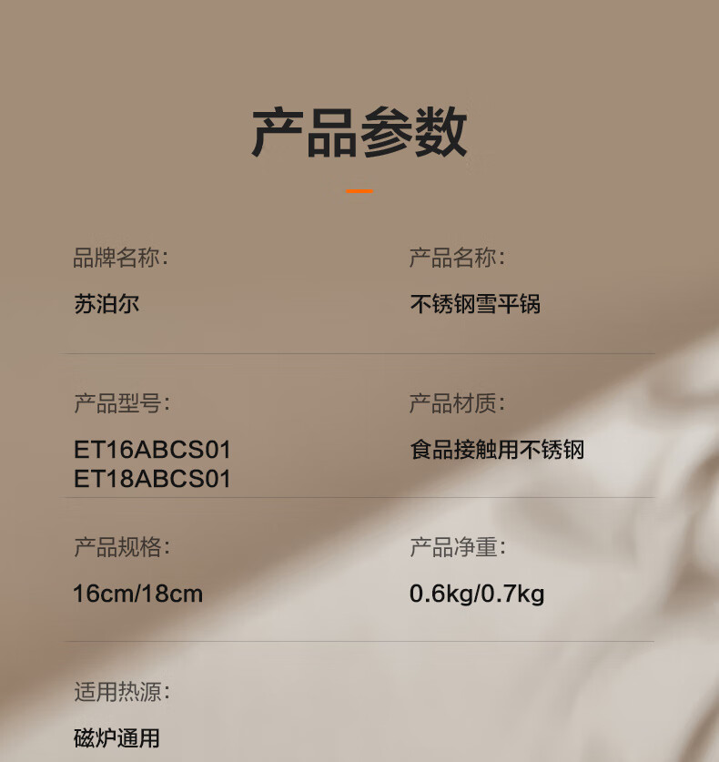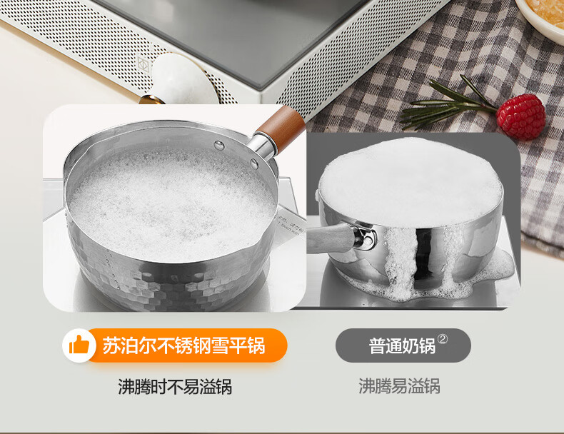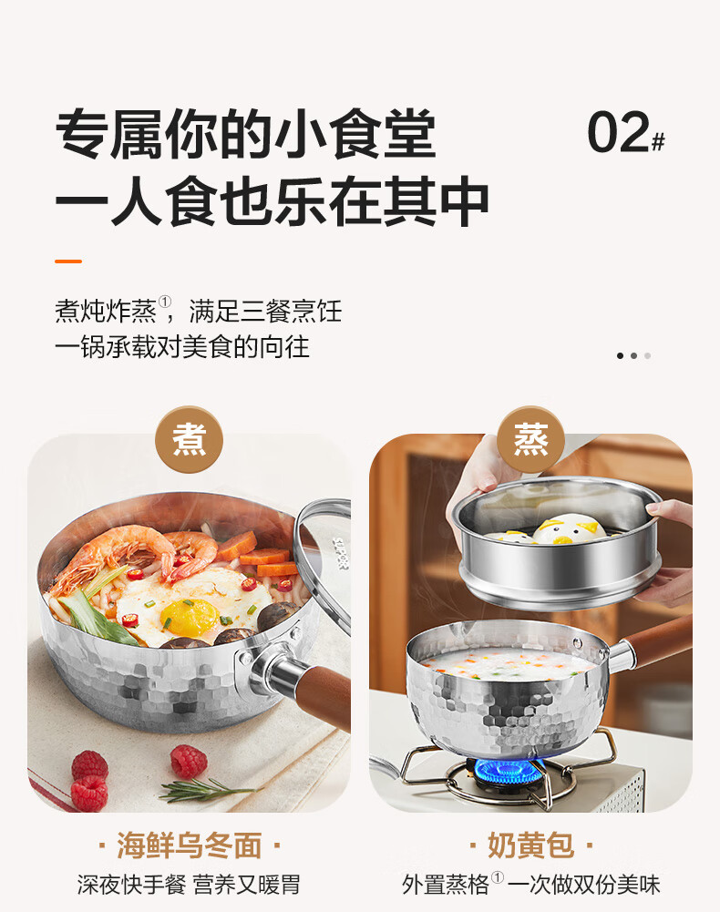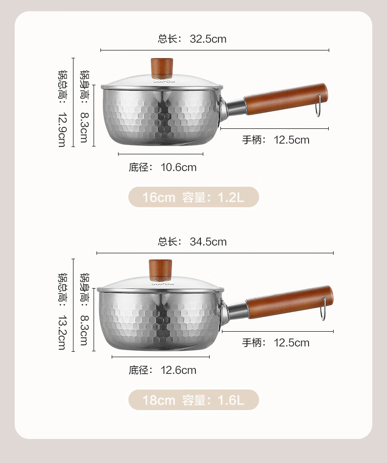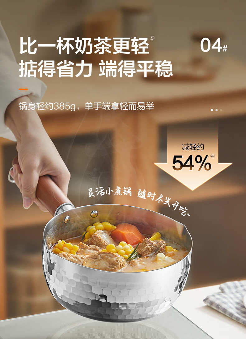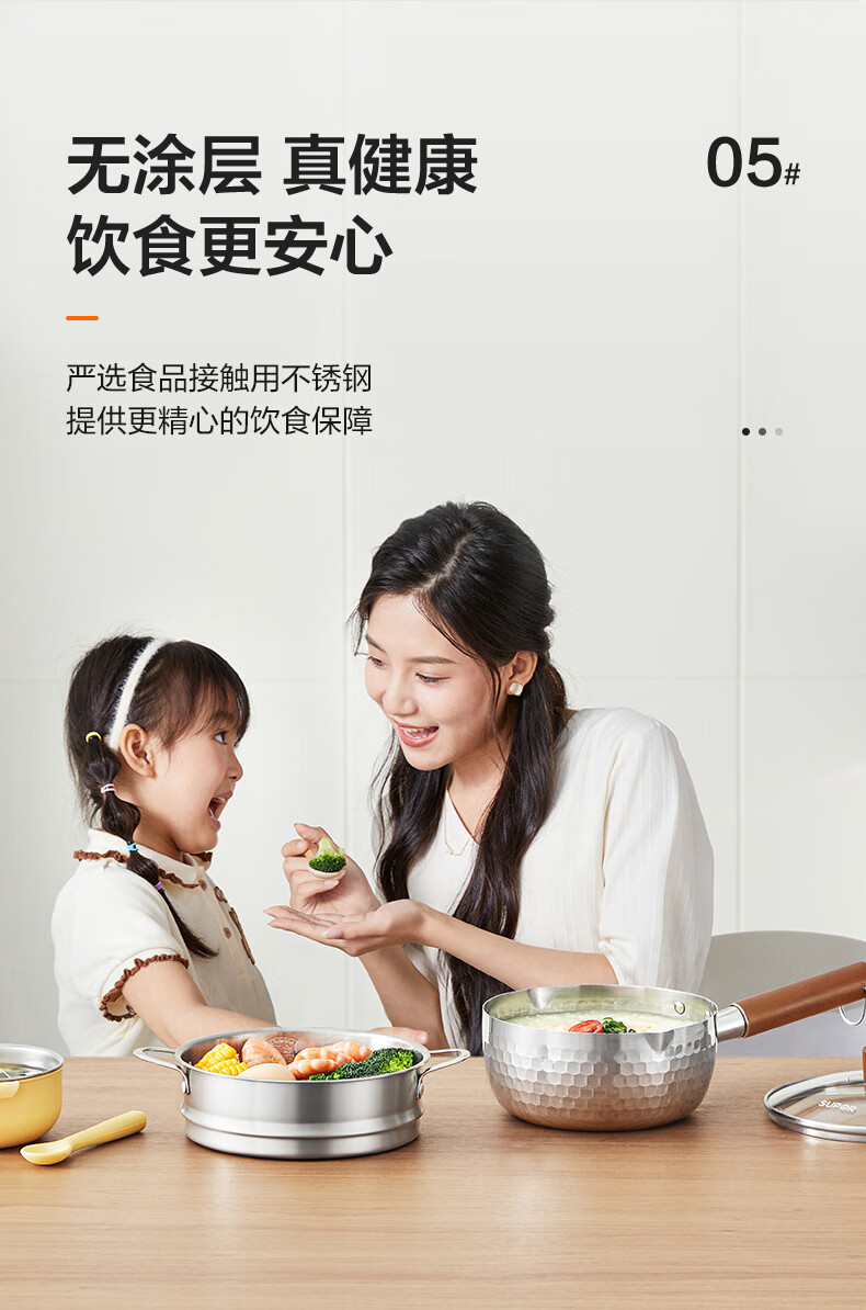苏泊尔雪平锅锤纹不锈钢小奶锅 煮面汤锅宝宝辅食锅16cm ET16ABCS01