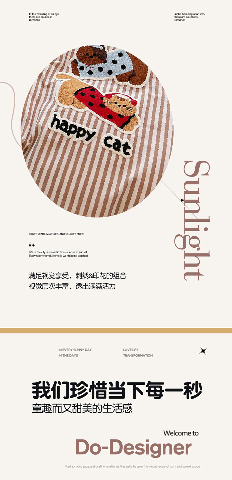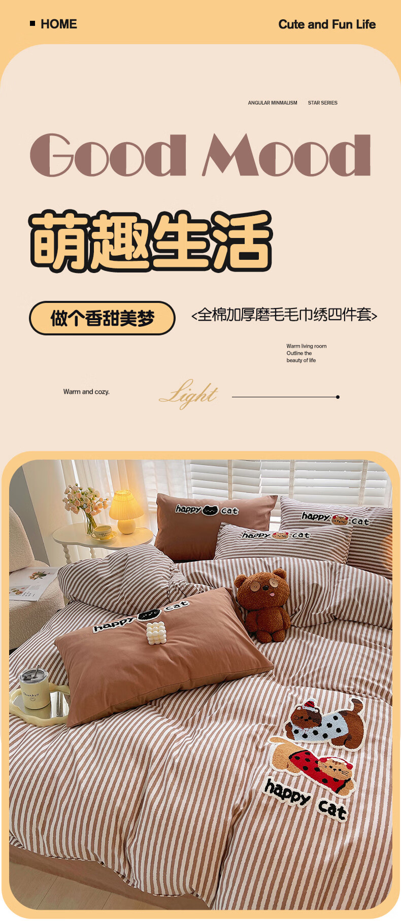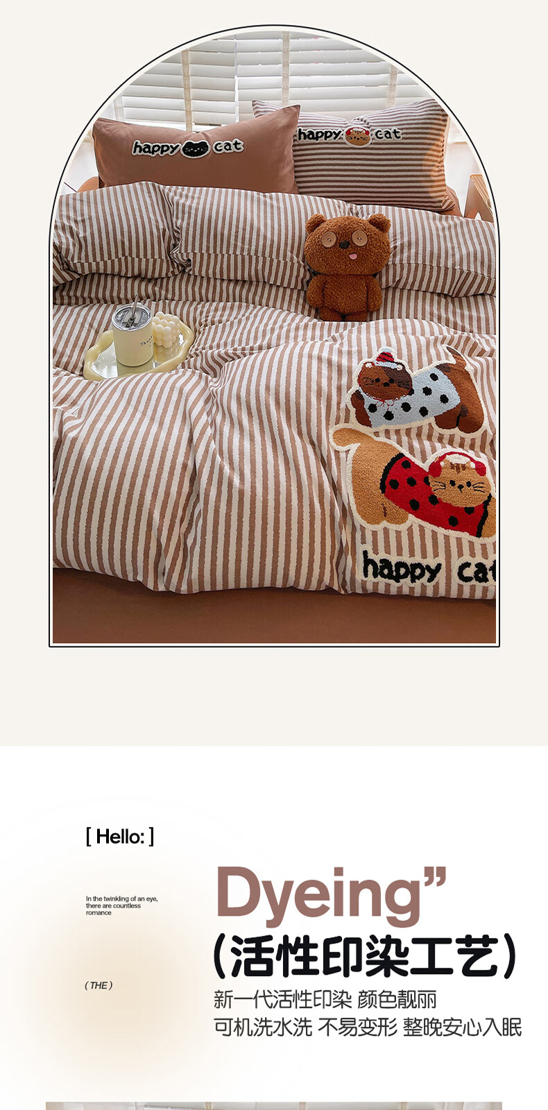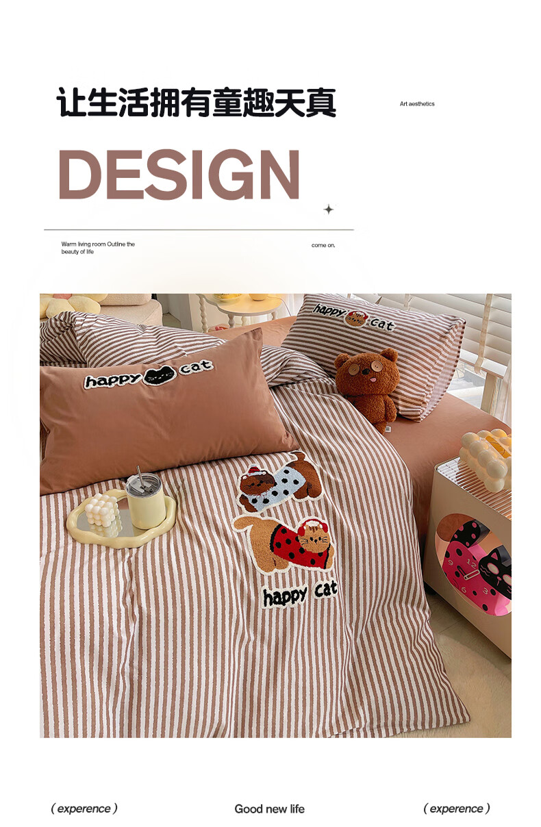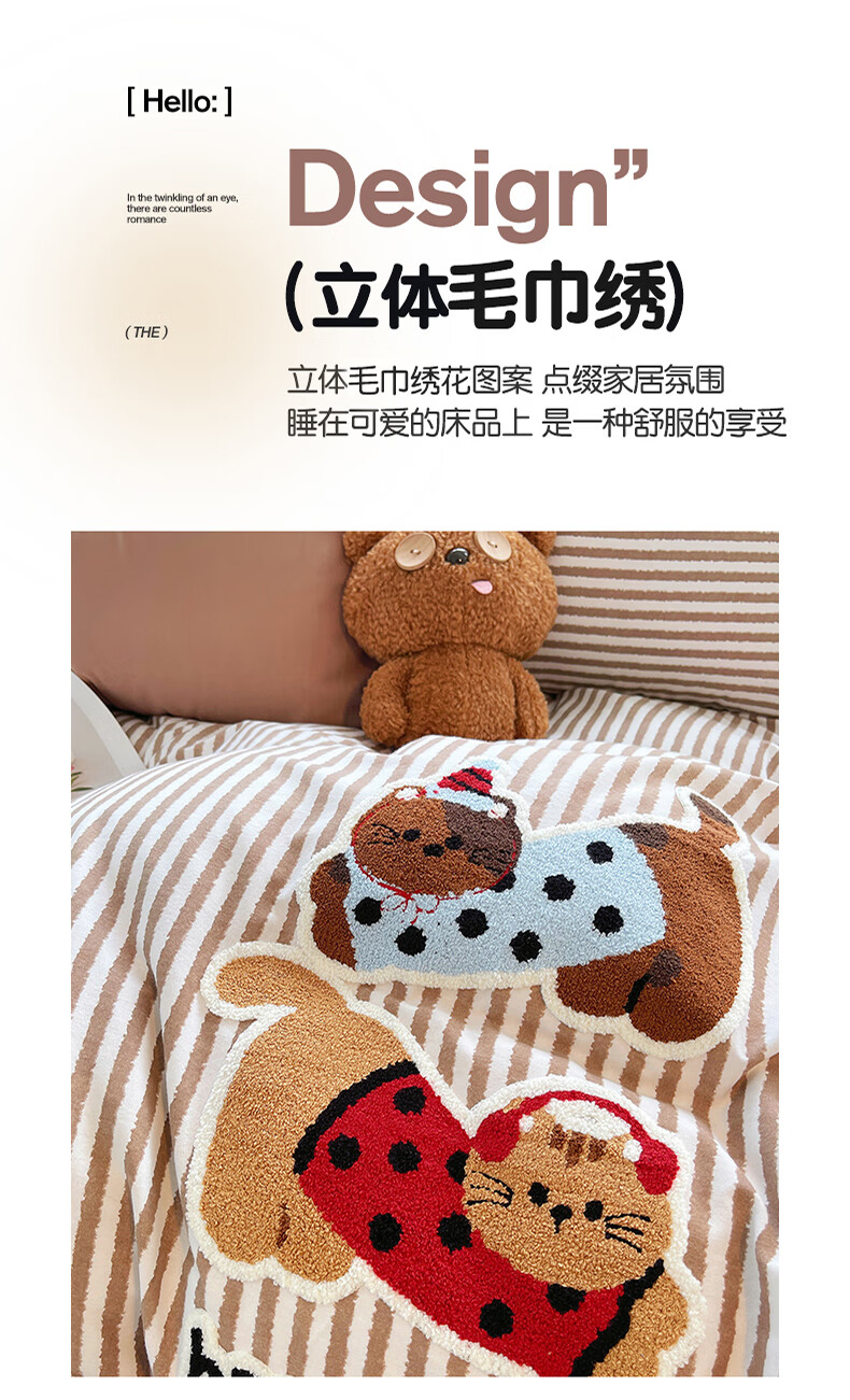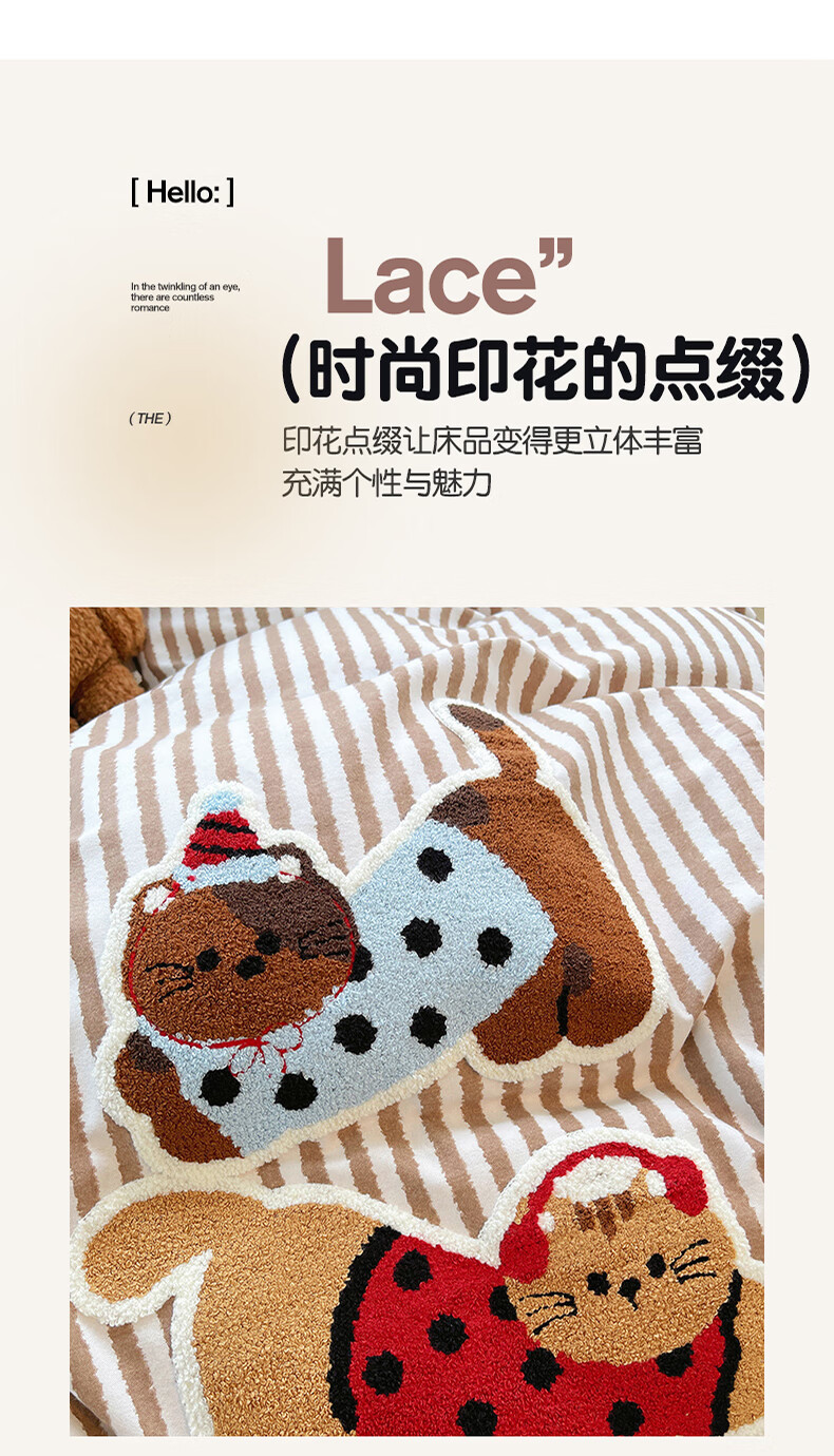 猫人(MiiOW)卡通毛巾绣全棉磨毛四件套床上用品秋冬纯棉床单被套宿舍三件套 曲奇-波点猫 【100%全棉磨毛】 1.8m 床单款 四件套-200*230cm被套